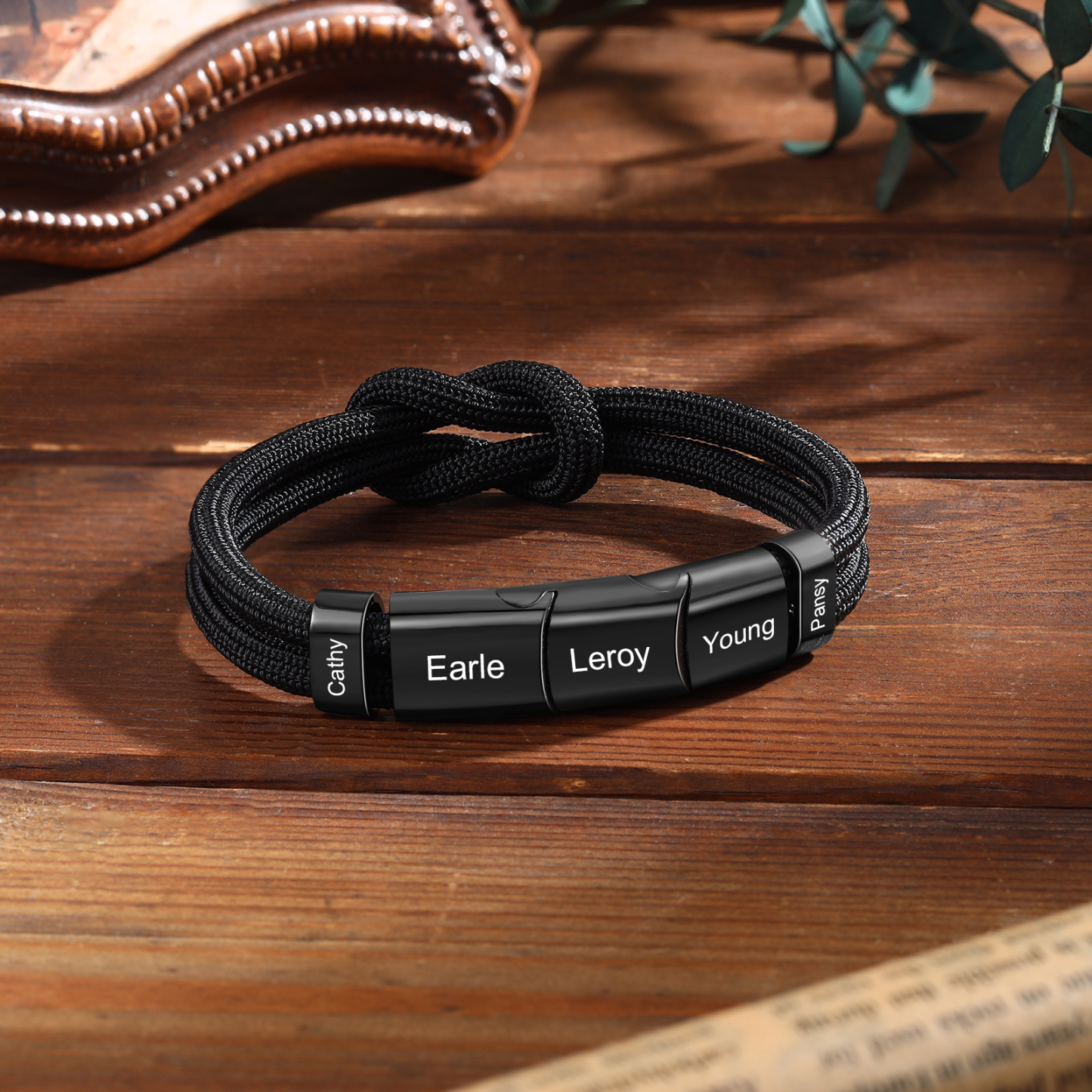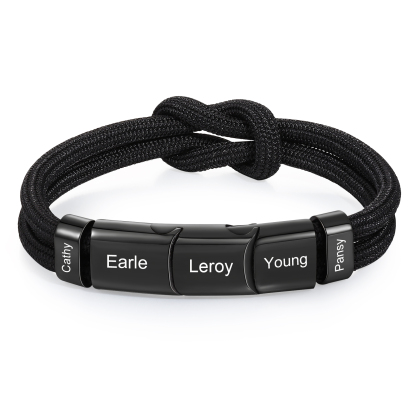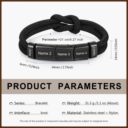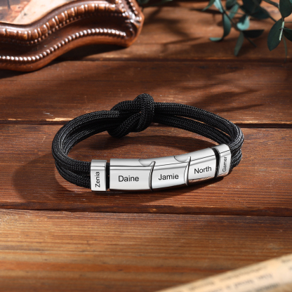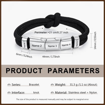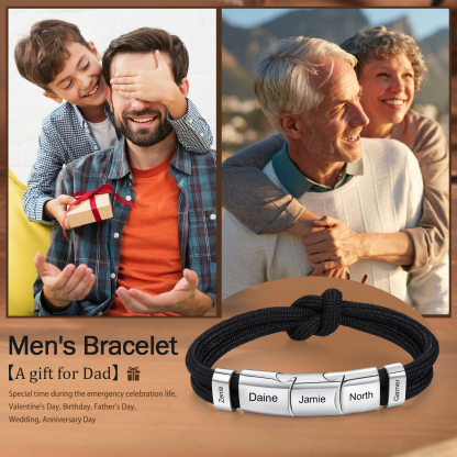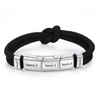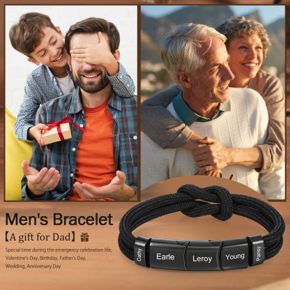 5 Names - Personalized Name Braided Leather Bracelet Engraving Men's Bracelet for Dad