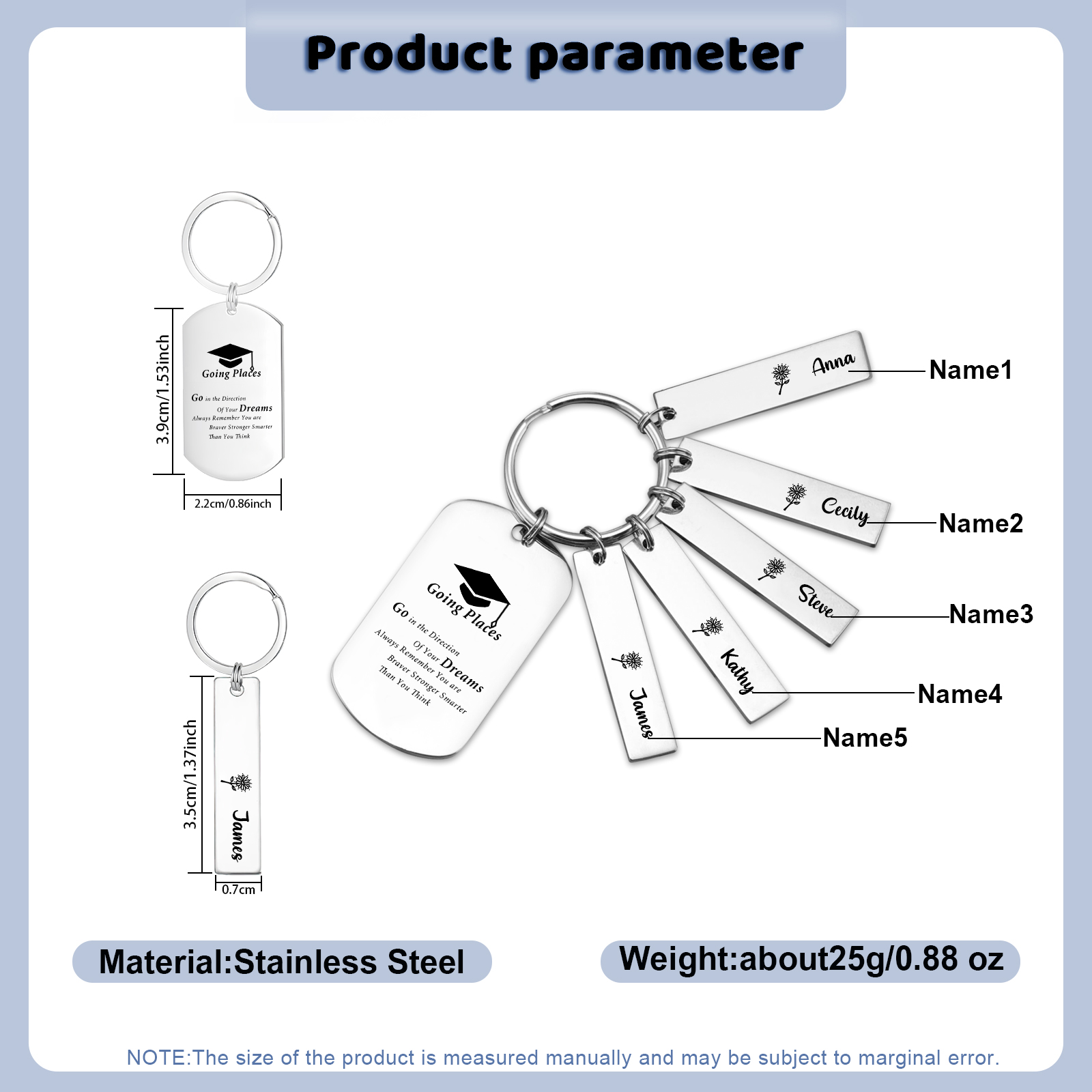 5 Names - Personalized Name Exquisite Graduation Keychain Gift For Her/Him