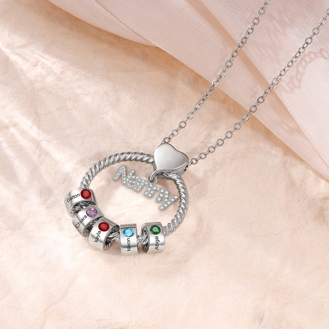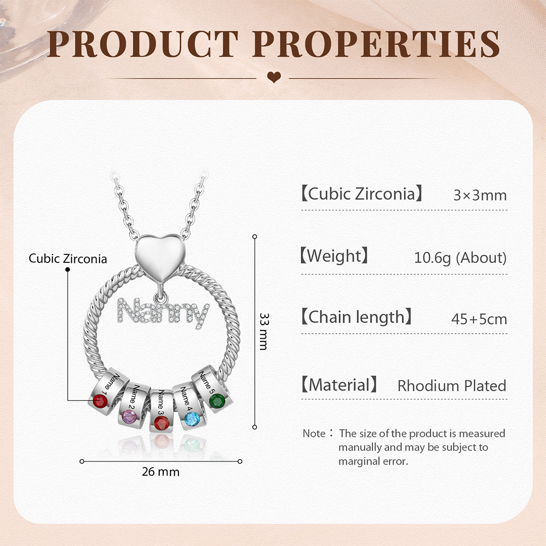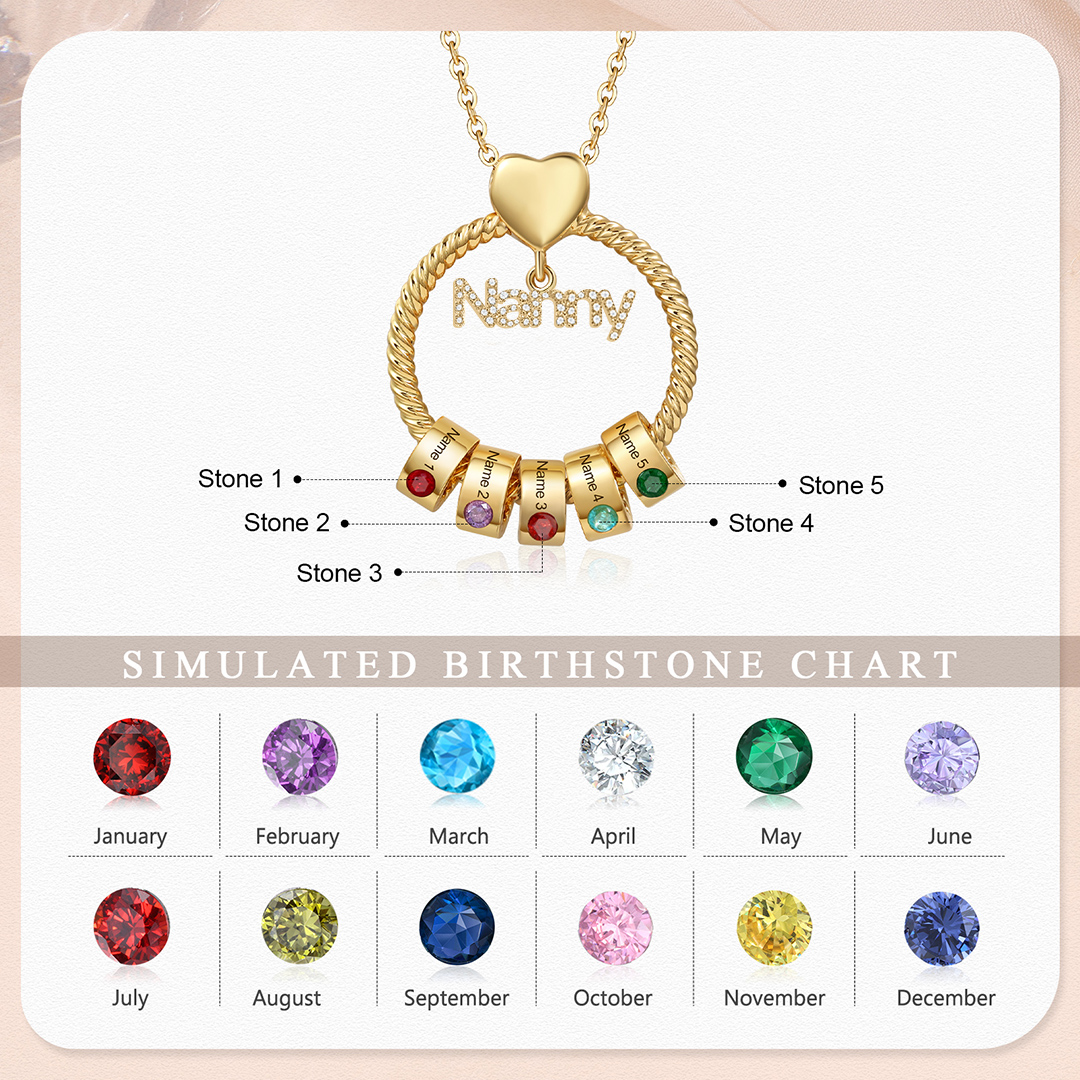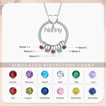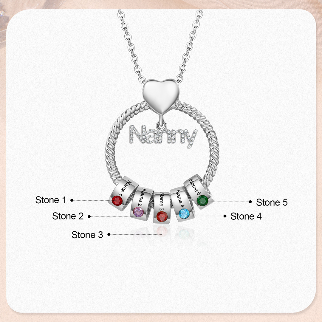 5 Names-Personalized Nanny Circle Necklace With 5 Birthstones Pendant Engraved Names Gift For Nanny
