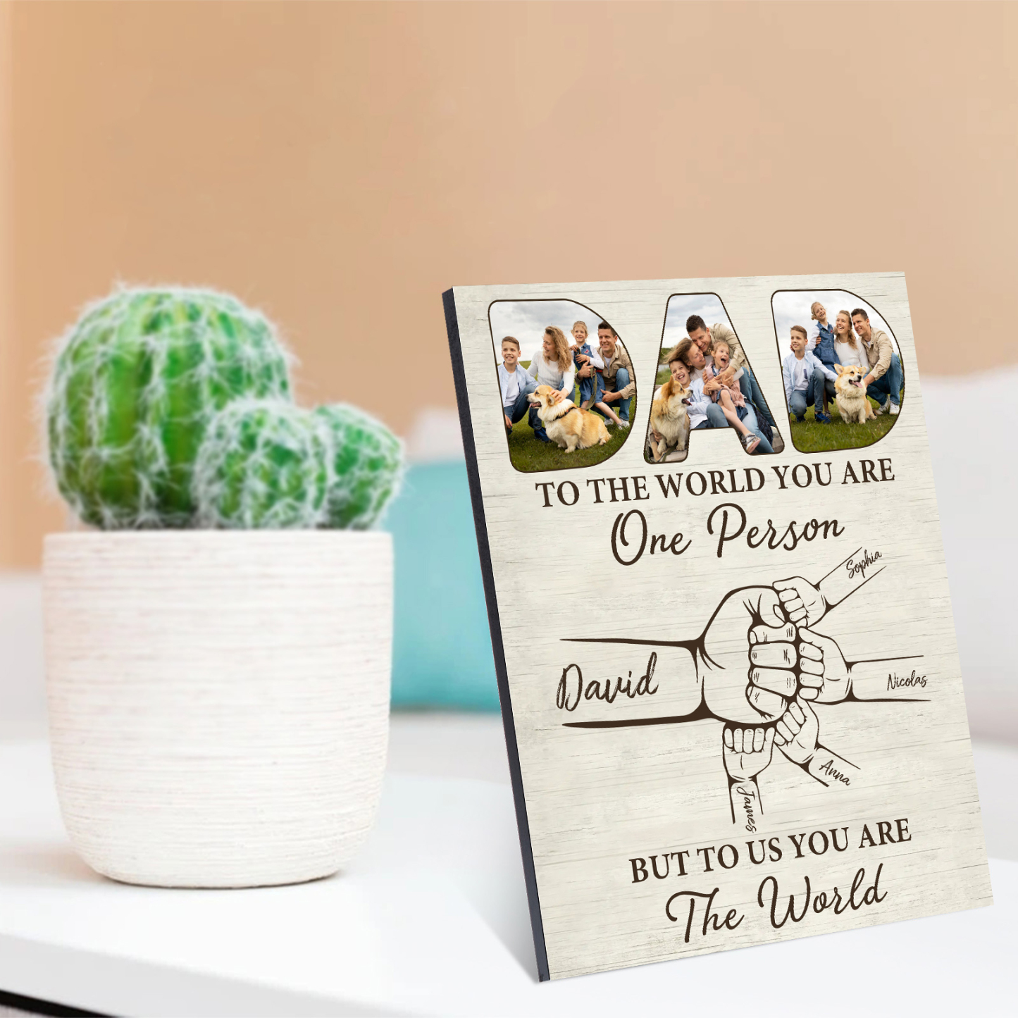 5 Names - Personalized Photos Fist Bump Home Wood Panel Painting Decorations Father's Day Gift for Dad