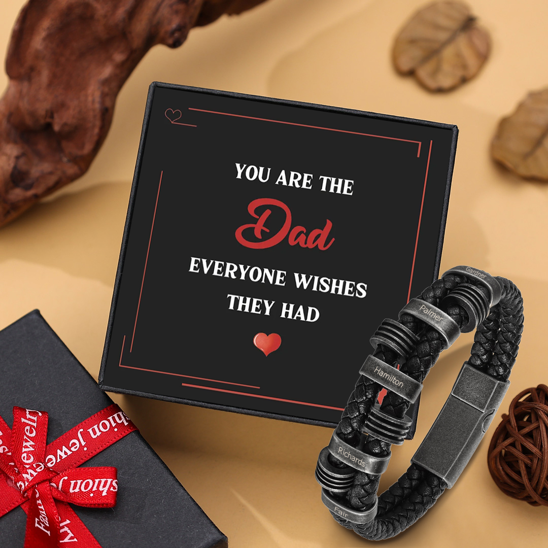 5 Names - Personalized PU Leather Men's Bracelet, Customized Name Bracelet with Gift Box Vintage Gift for Him