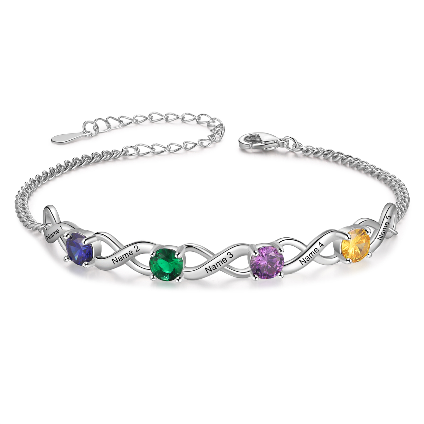 5 Names-Personalized Woman Bracelet With Round Birthstone Custom Names Bracelet Gift For Her