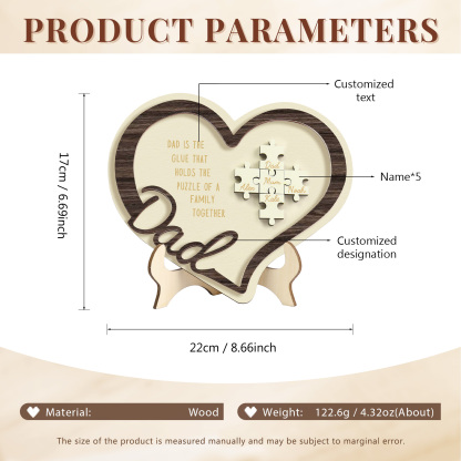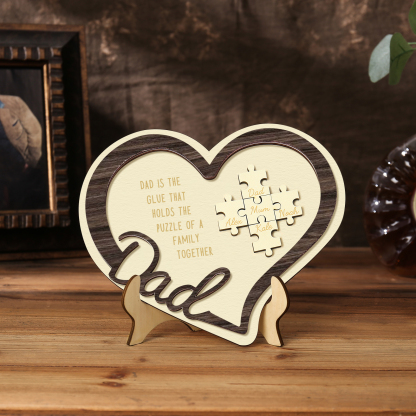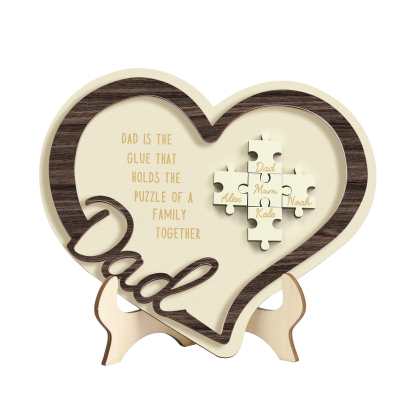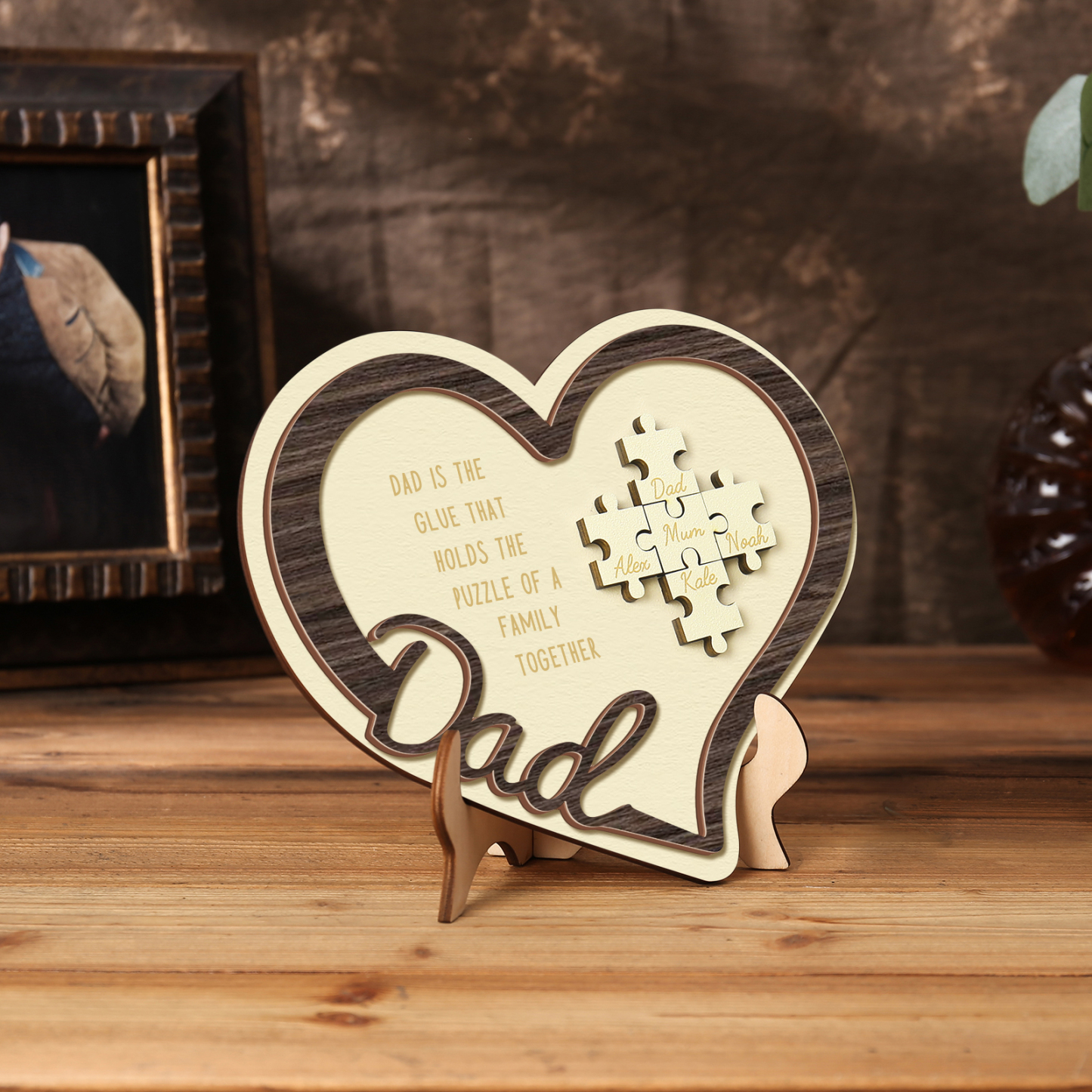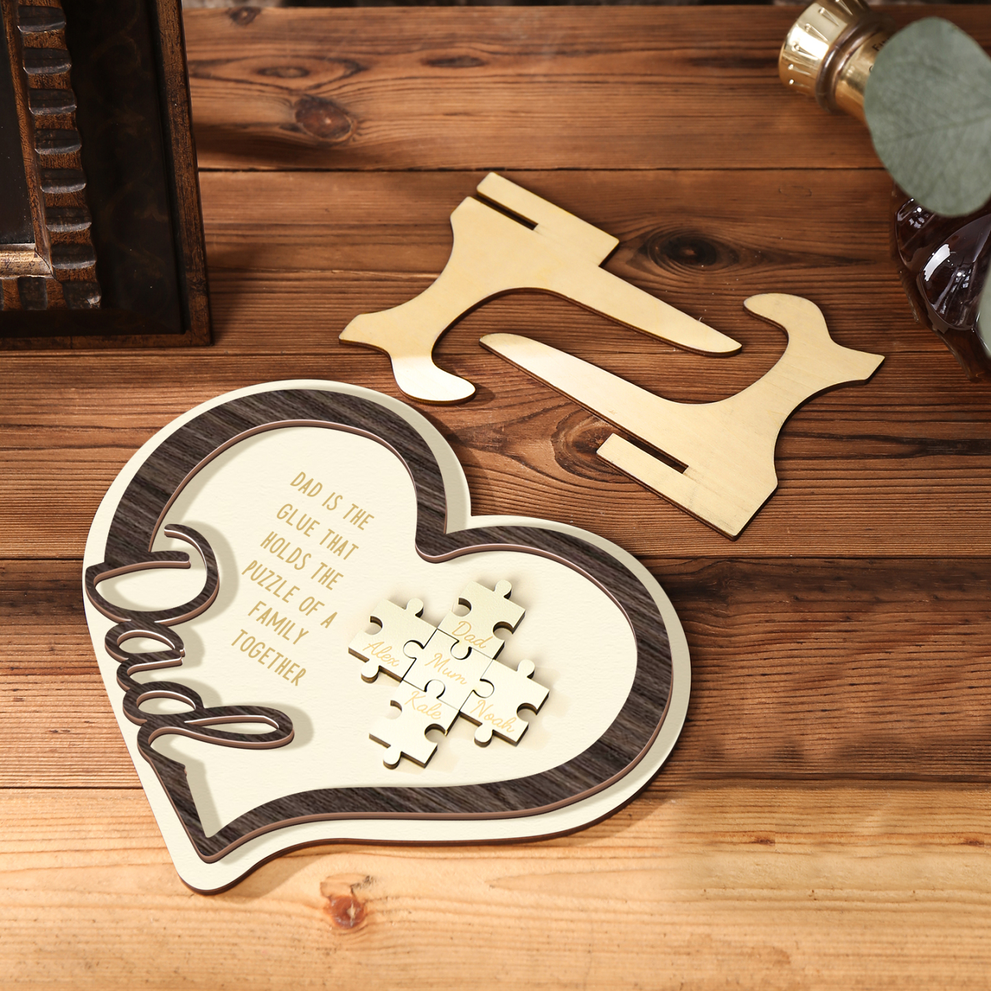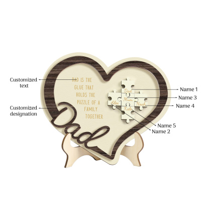 5 Names - Personalized Wooden Ornaments Heart and Puzzle Elements Engraved Text Style Ornaments Home Decor for Dad