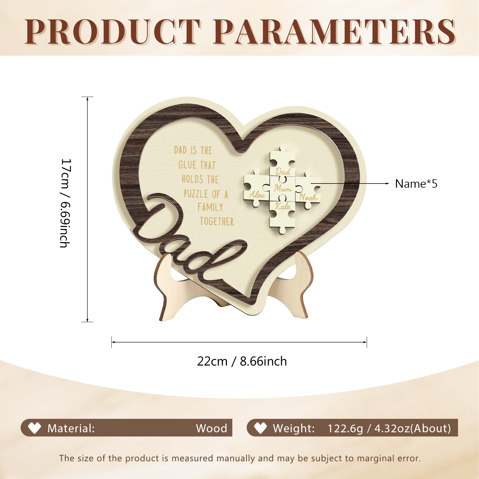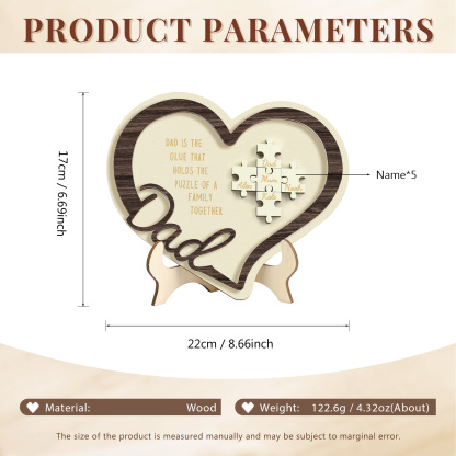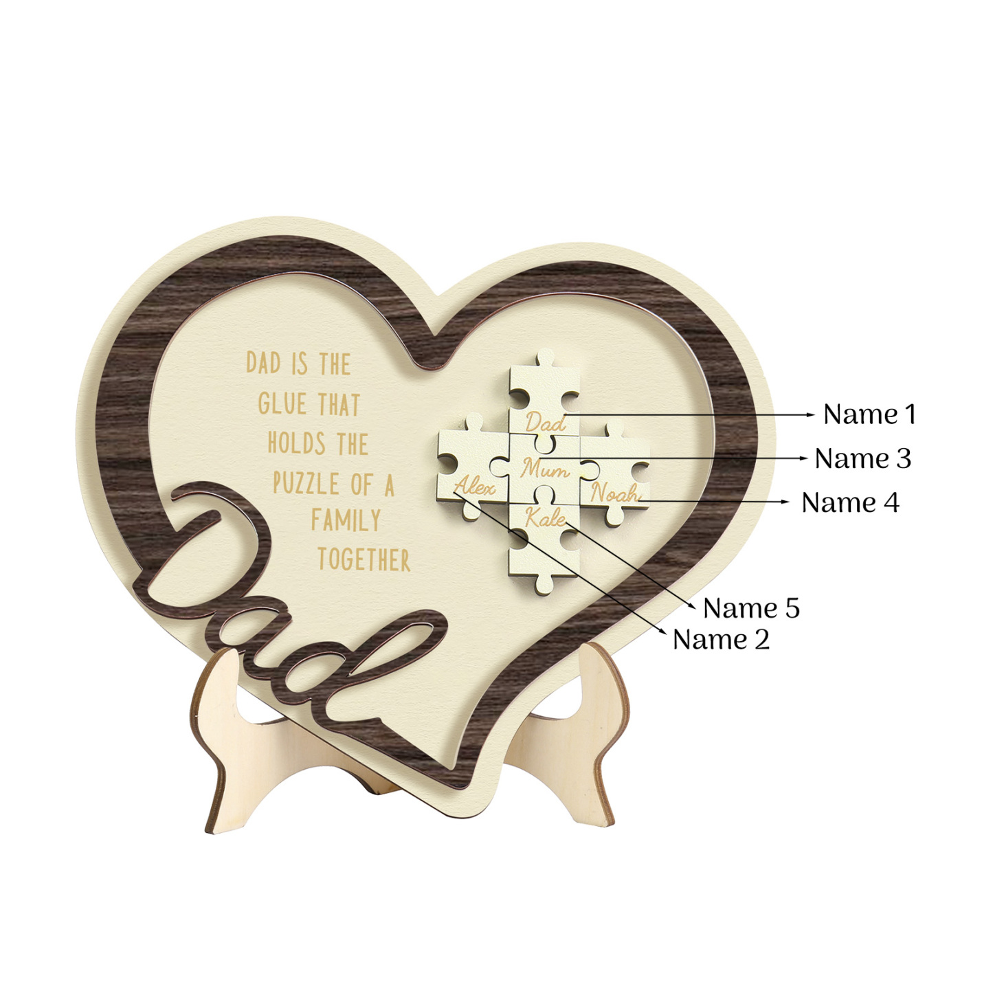 5 Names - Personalized Wooden Ornaments Heart and Puzzle Elements Style Ornaments Home Decor for Dad
