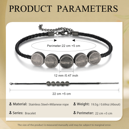 5 Names - Vintage Men's Leather Bracelet Custom Names Beads Bracelet Stainless Steel Personalized Gift for Him