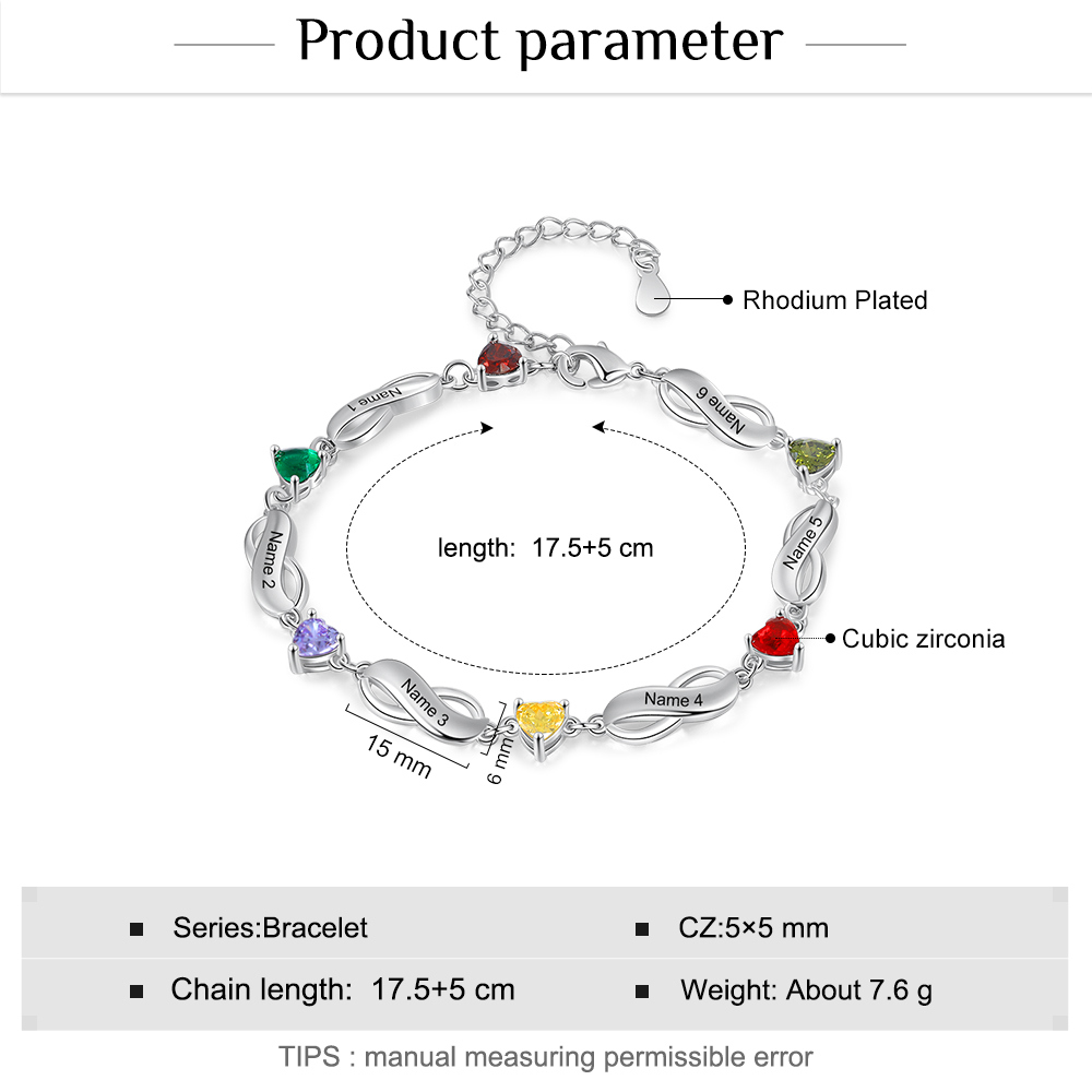 Personalized Infinity Bracelet With 6 Birthstones Engraved Names Bracelet Gift For Women