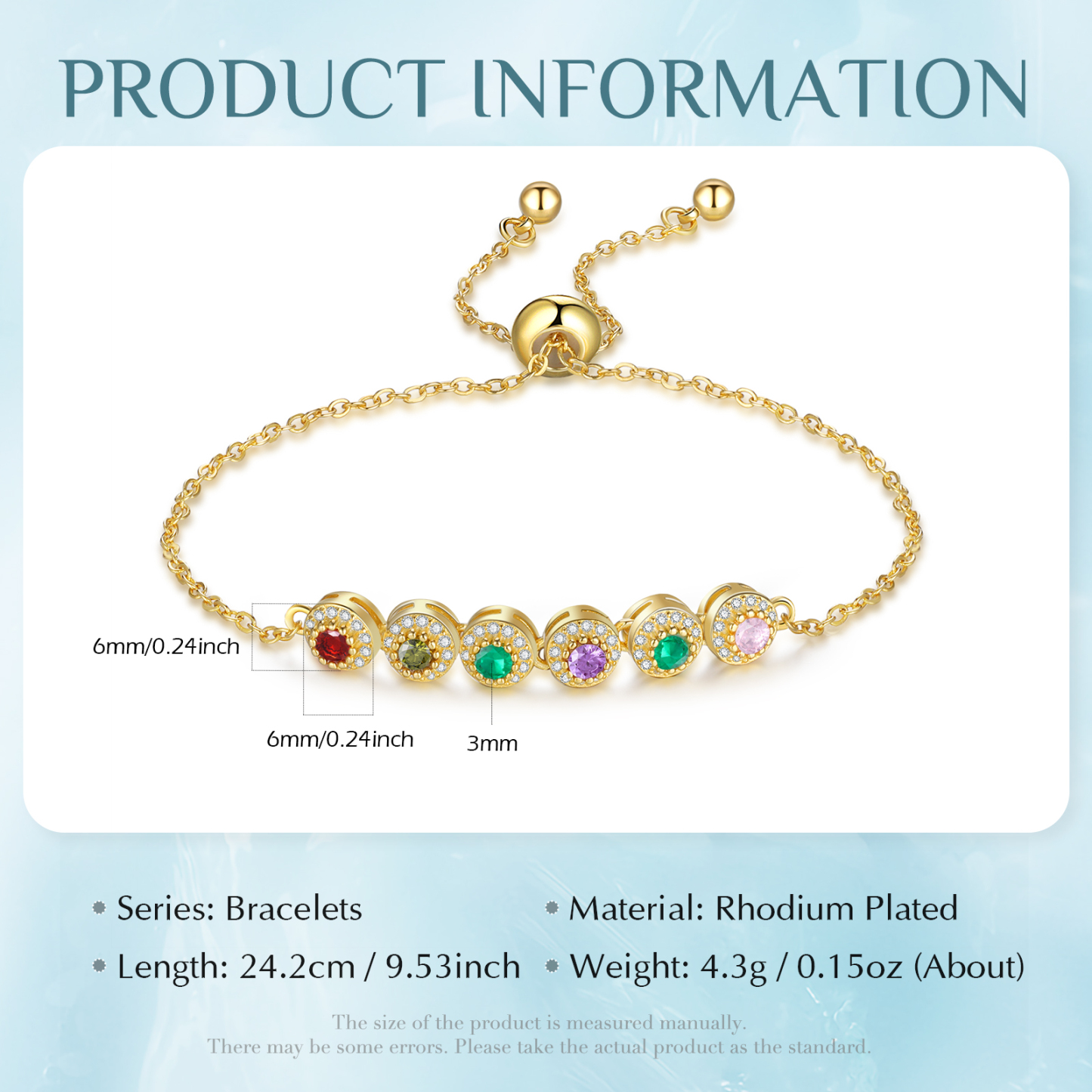 This beautiful bracelet allows you to customize it with up to 6 birthstones, making it a unique and meaningful piece just for you or a loved one. Exquisitely crafted with great attention to detail, this bracelet showcases the beauty of craftsmanship and personalization.