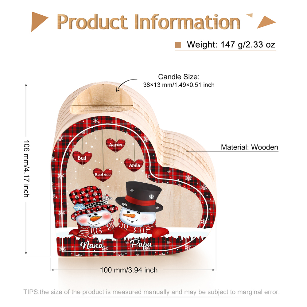 6 Names-Custom Christmas Wooden Candlestick-Personalized Names Snowman Heart Candle Holder Christmas Gift for Family