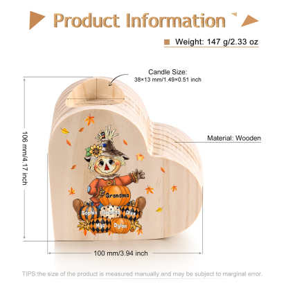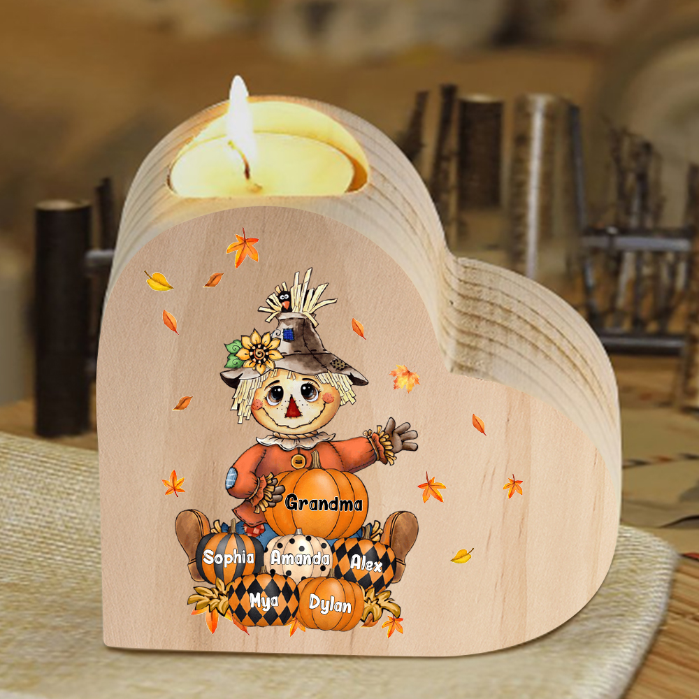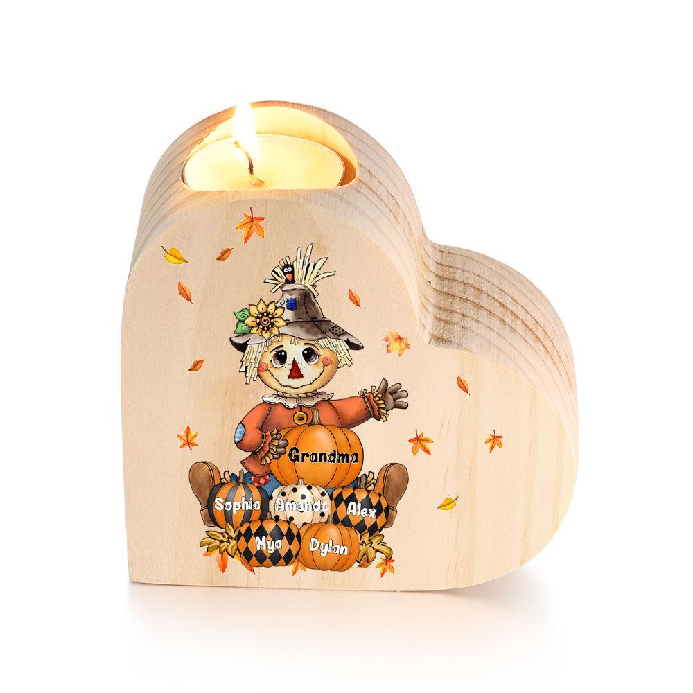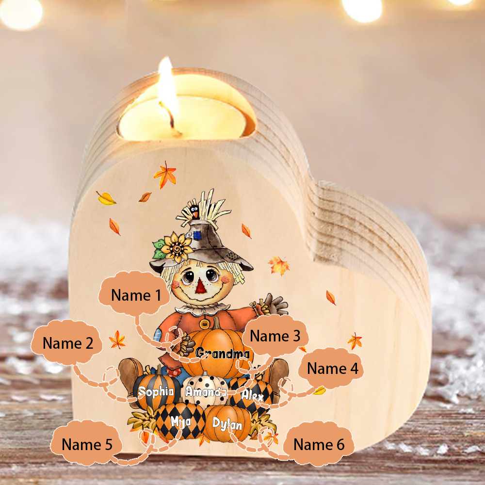 6 Names-Custom Halloween Wooden Candlestick-Personalized Names Pumpkin Heart Candle Holder Halloween Gift for Family