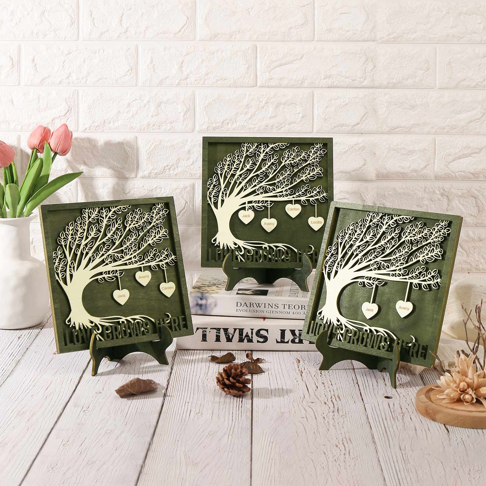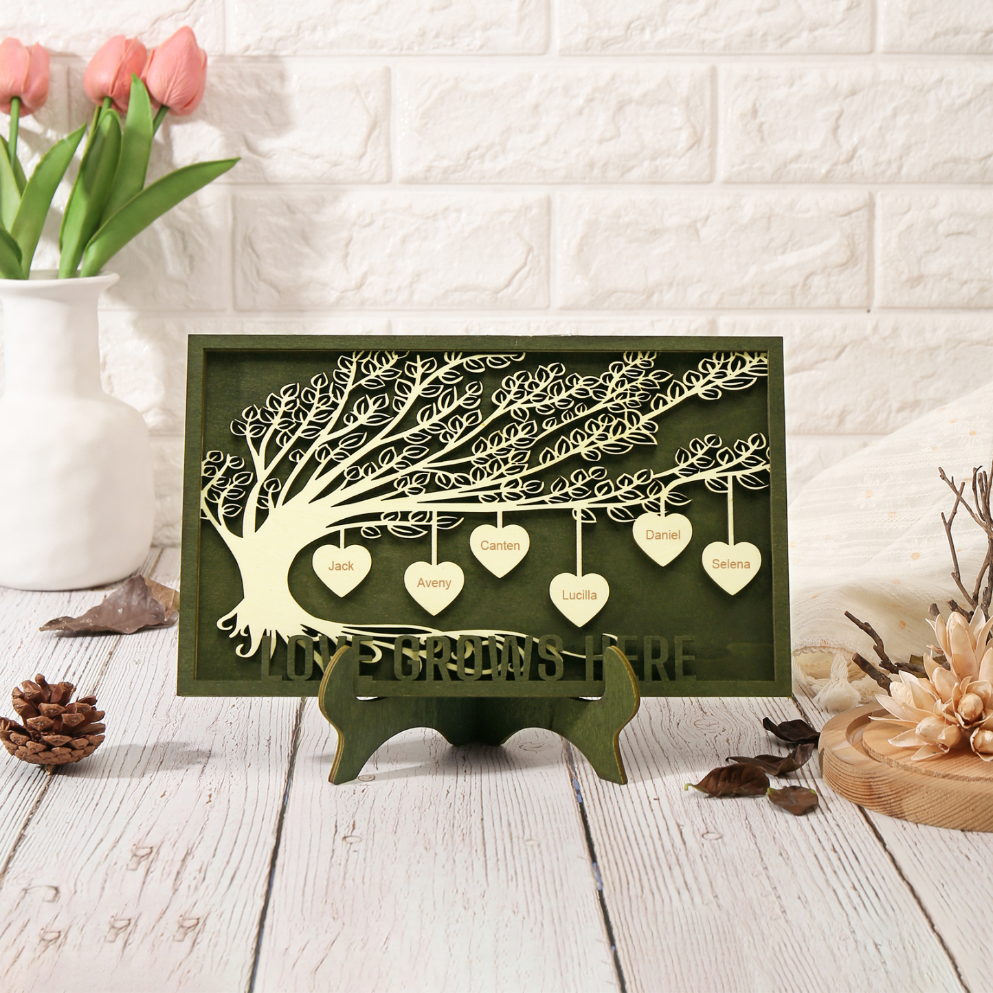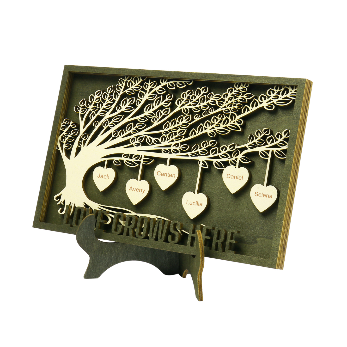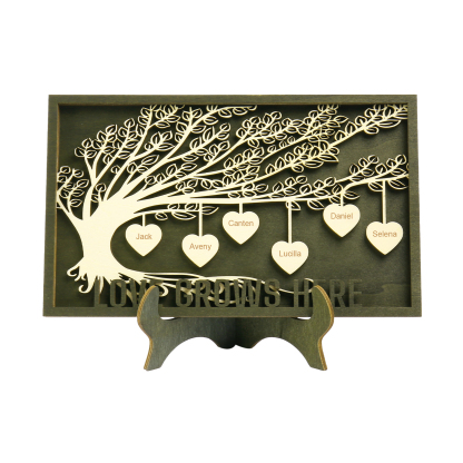 6 Names - Customized Framily Tree Type Wooden Ornaments Decorations Text Love Grows Here