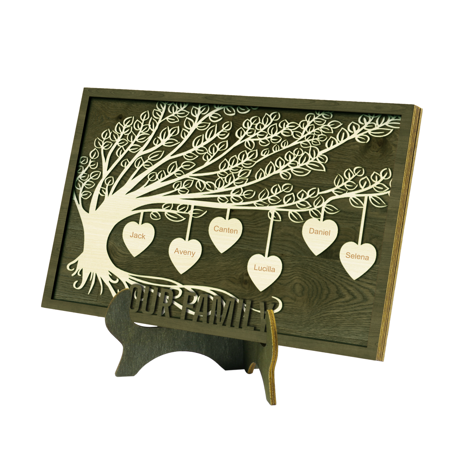 6 Names -Customized Framily Tree Type Wooden Ornaments Decorations Text Our Family