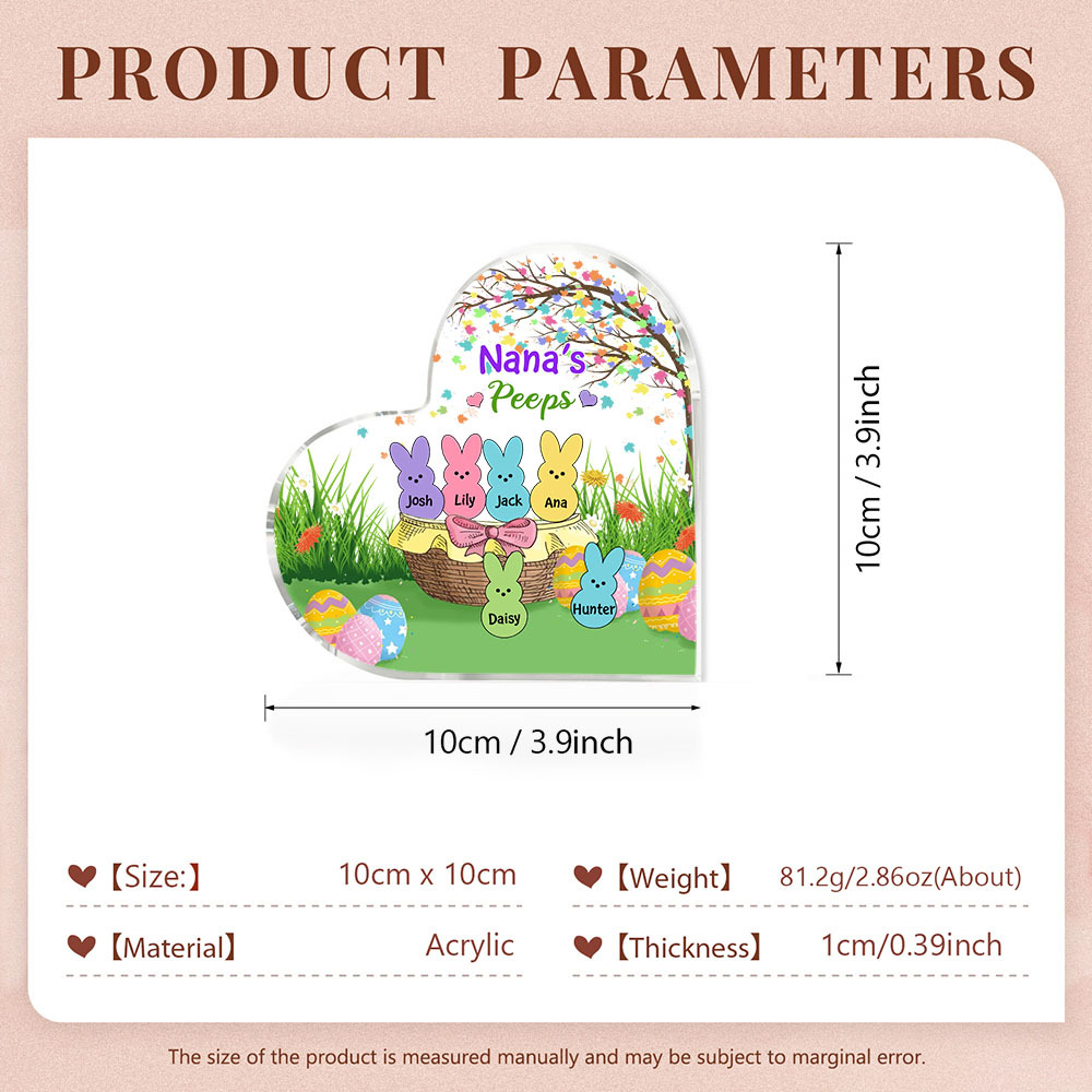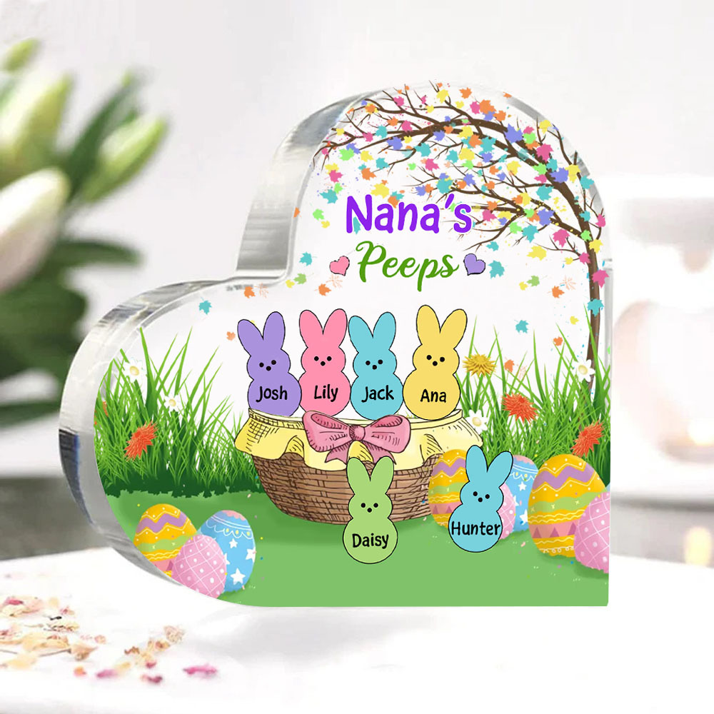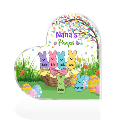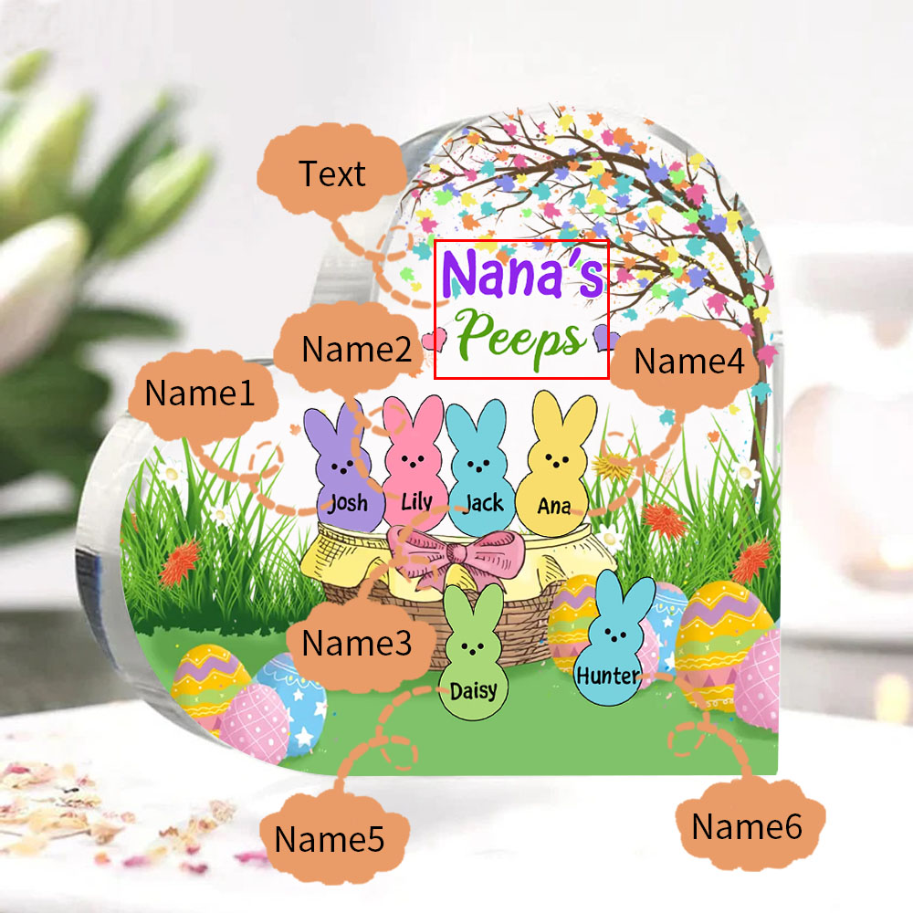 6 Names-Personalized Acrylic Heart Keepsake Custom Acrylic plaque Names Bunny Ornaments Gifts for Mum/Nan/Nana