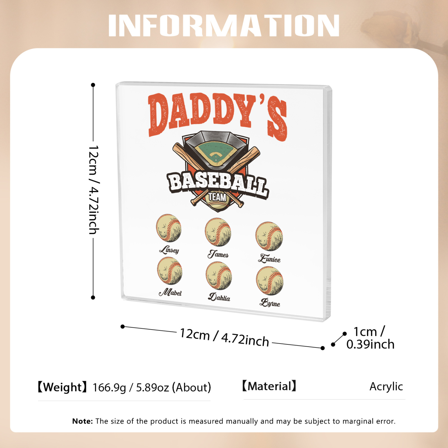 6 Names - Personalized Baseball Acrylic Keepsake Customized Name Acrylic Plaque Decoration Father's Day Gift for Dad