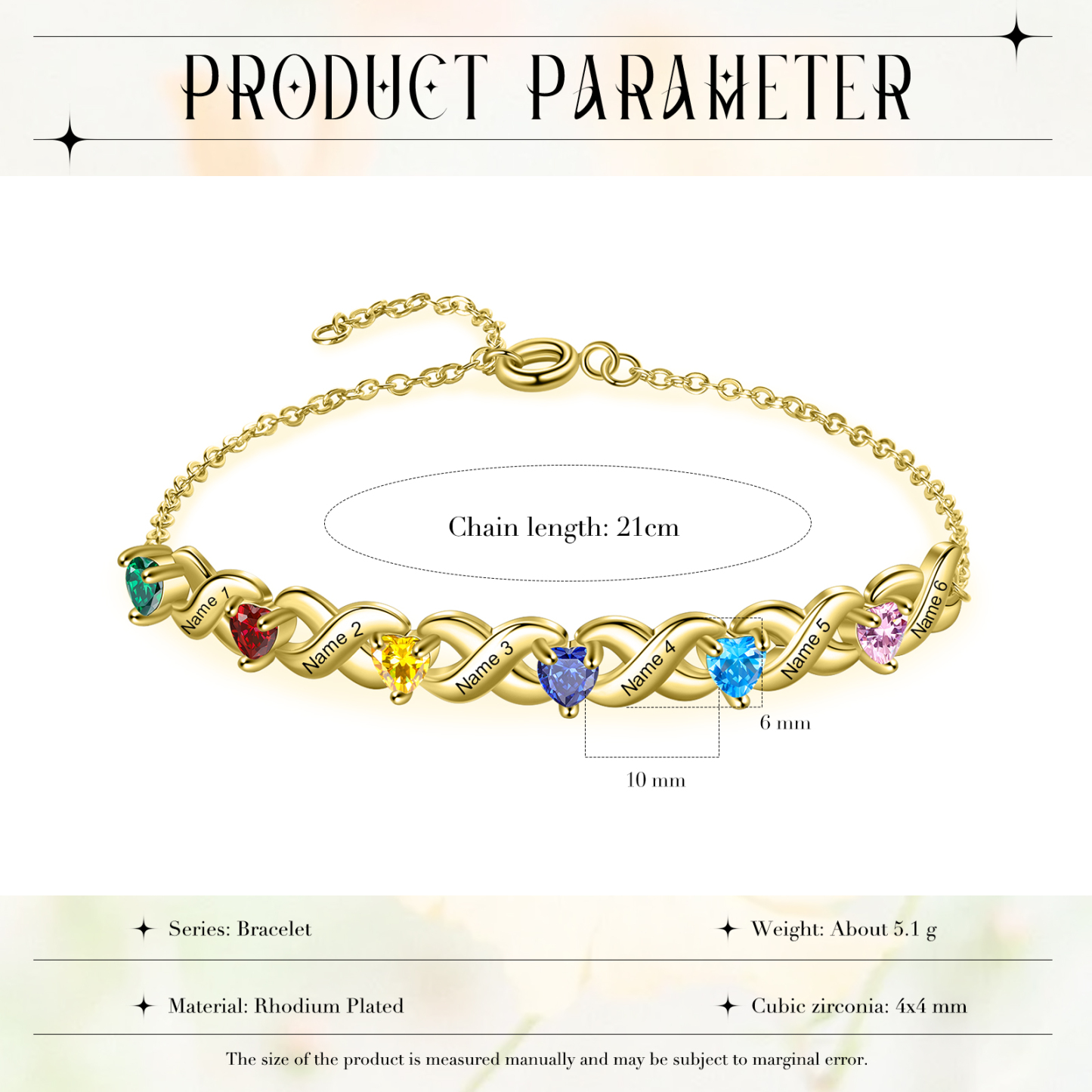 Shiny Birthstone bracelets make you stand out from the crowd. You can choose birthstones that represent different months and meanings to express your expectations and personality while giving this bracelet a unique meaning by customizing your own name. It's always a good idea to give a bespoke bracelet to yourself or someone else💕