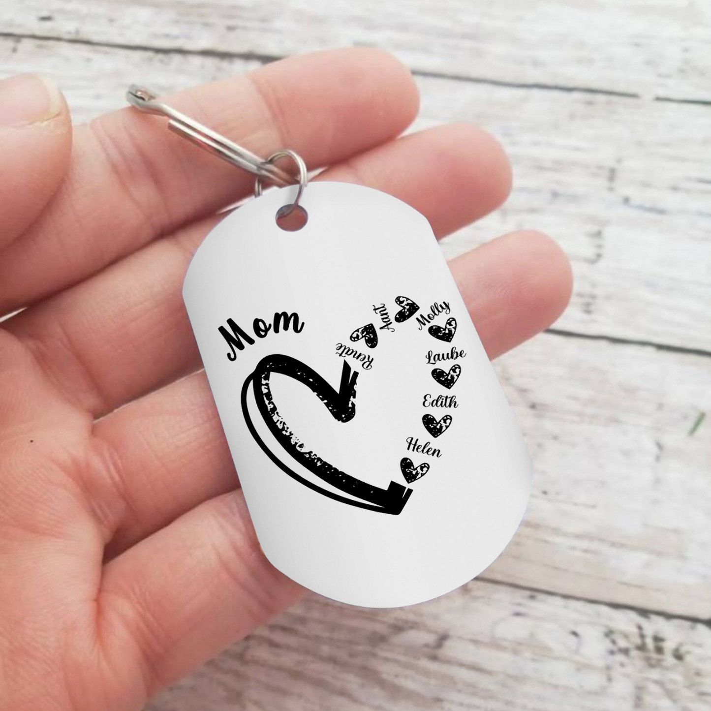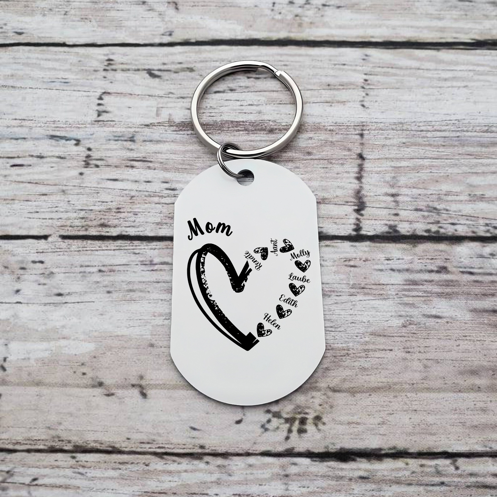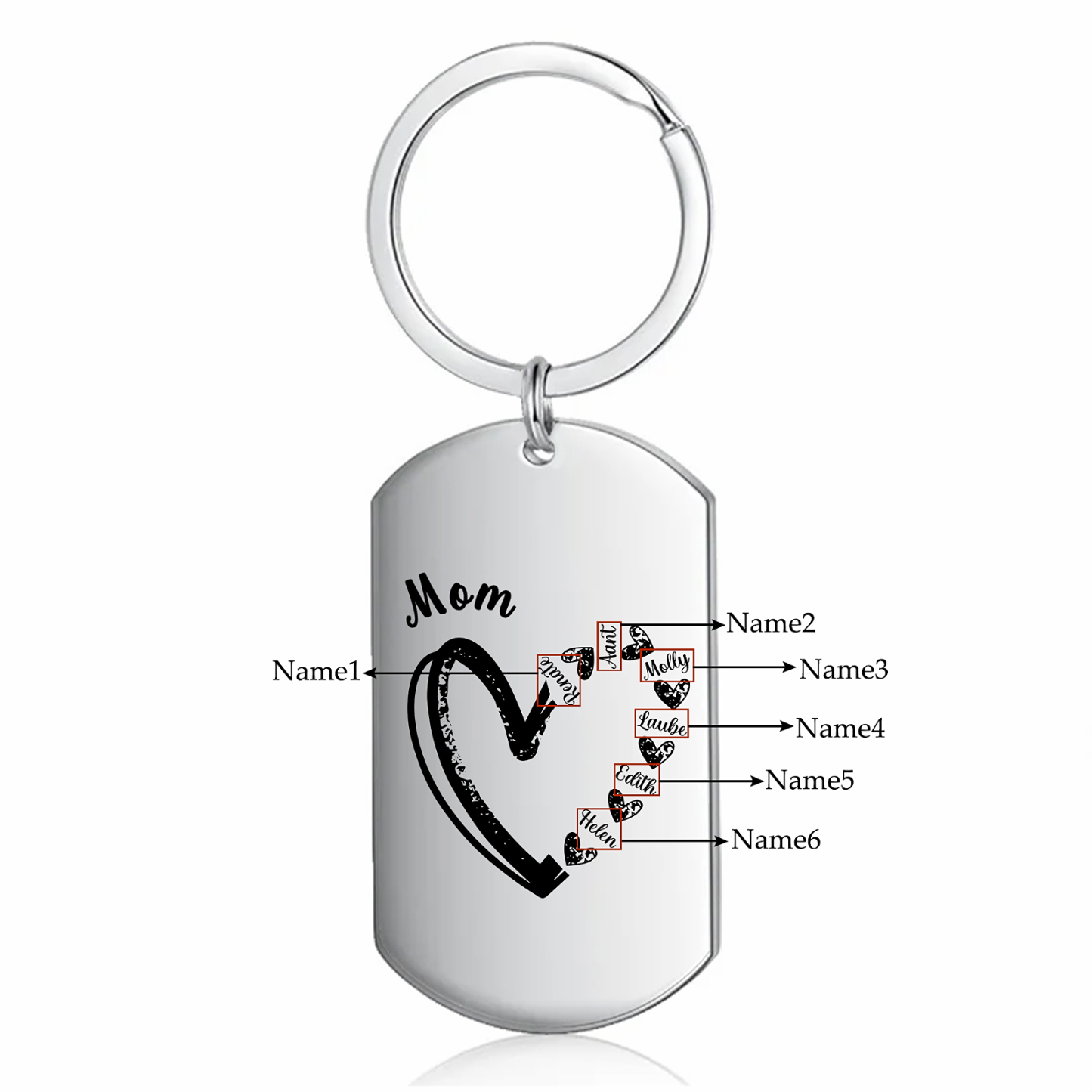 6 Names Personalized Charm Love Design Keychain Mom Hook Engraved Text Special Gift for Mom