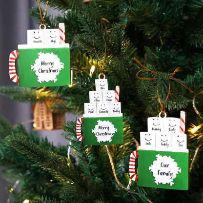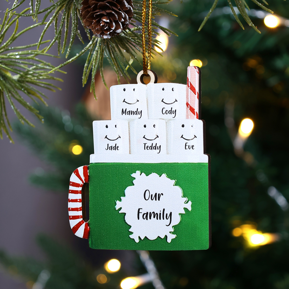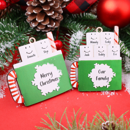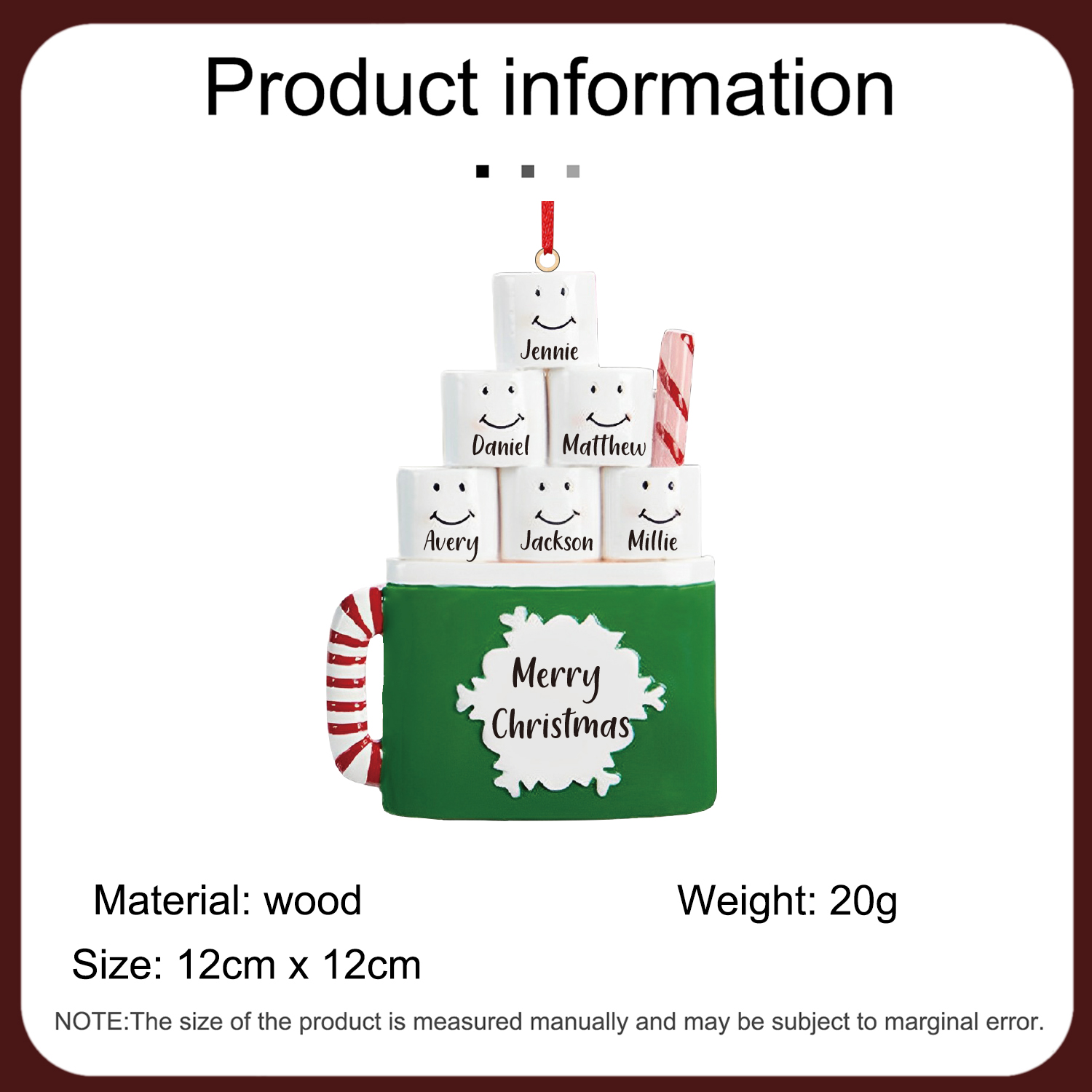6 Names-Personalized Christmas Family Cup Wooden Hanging Name Ornament-Custom 6 Names Hanging Ornament Xmas Tree Decoration Gifts For Family
