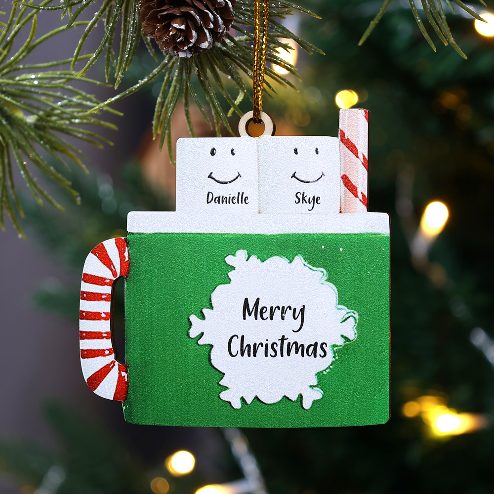 🎁Our customizable Christmas tree ornament, the "Name Cup!" This exquisite ornament allows you to personalize your cup with 2-6 names and a text of your choice. The names elegantly stack upon one another, forming the beautiful shape of a Christmas cup.