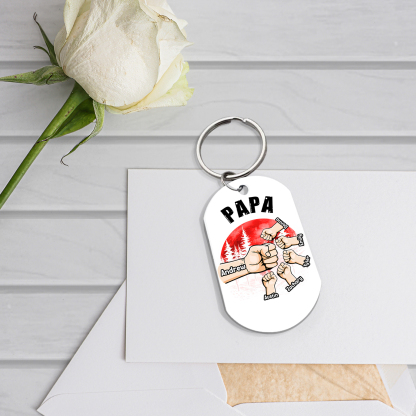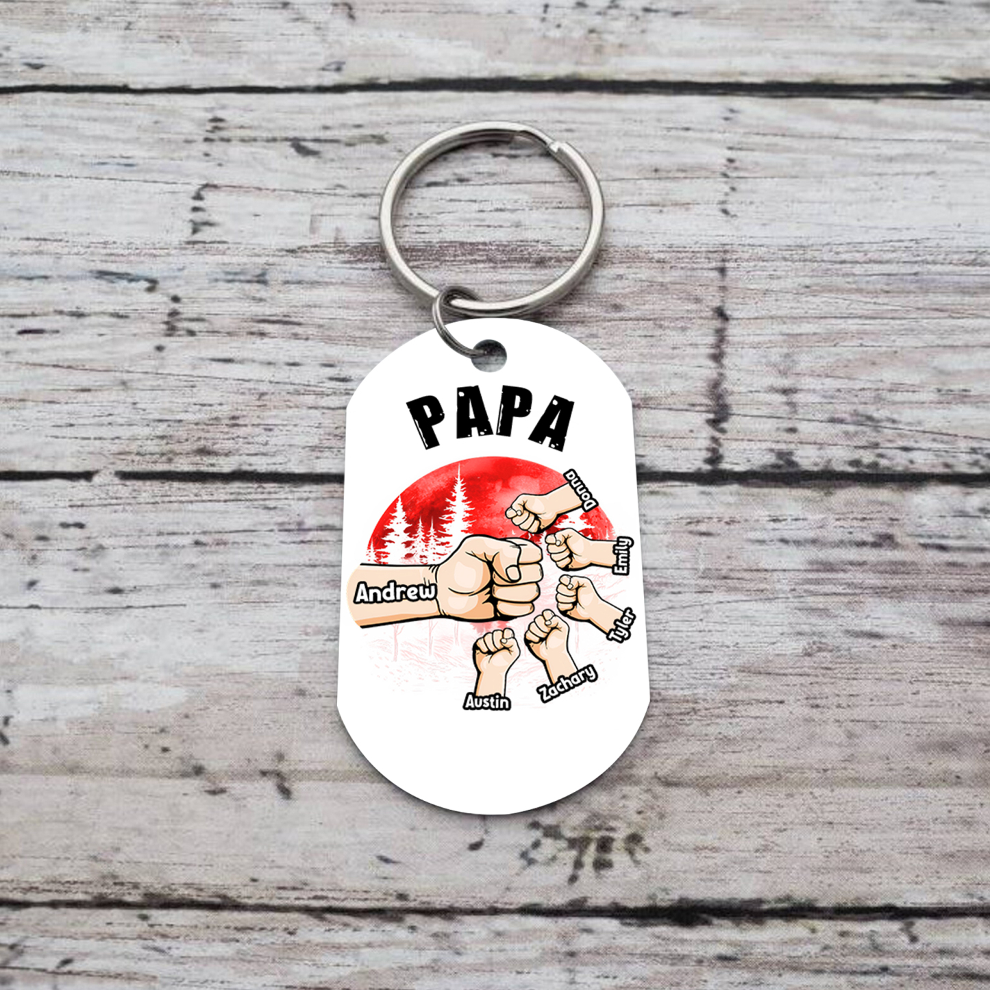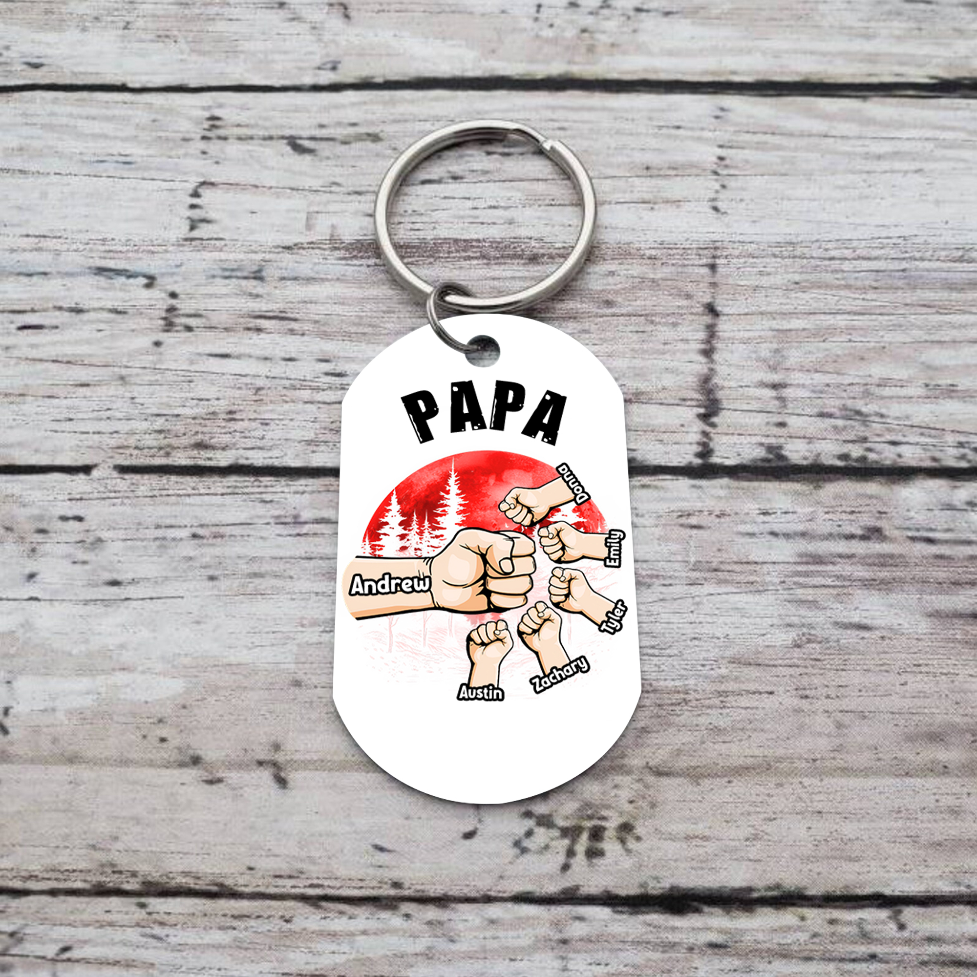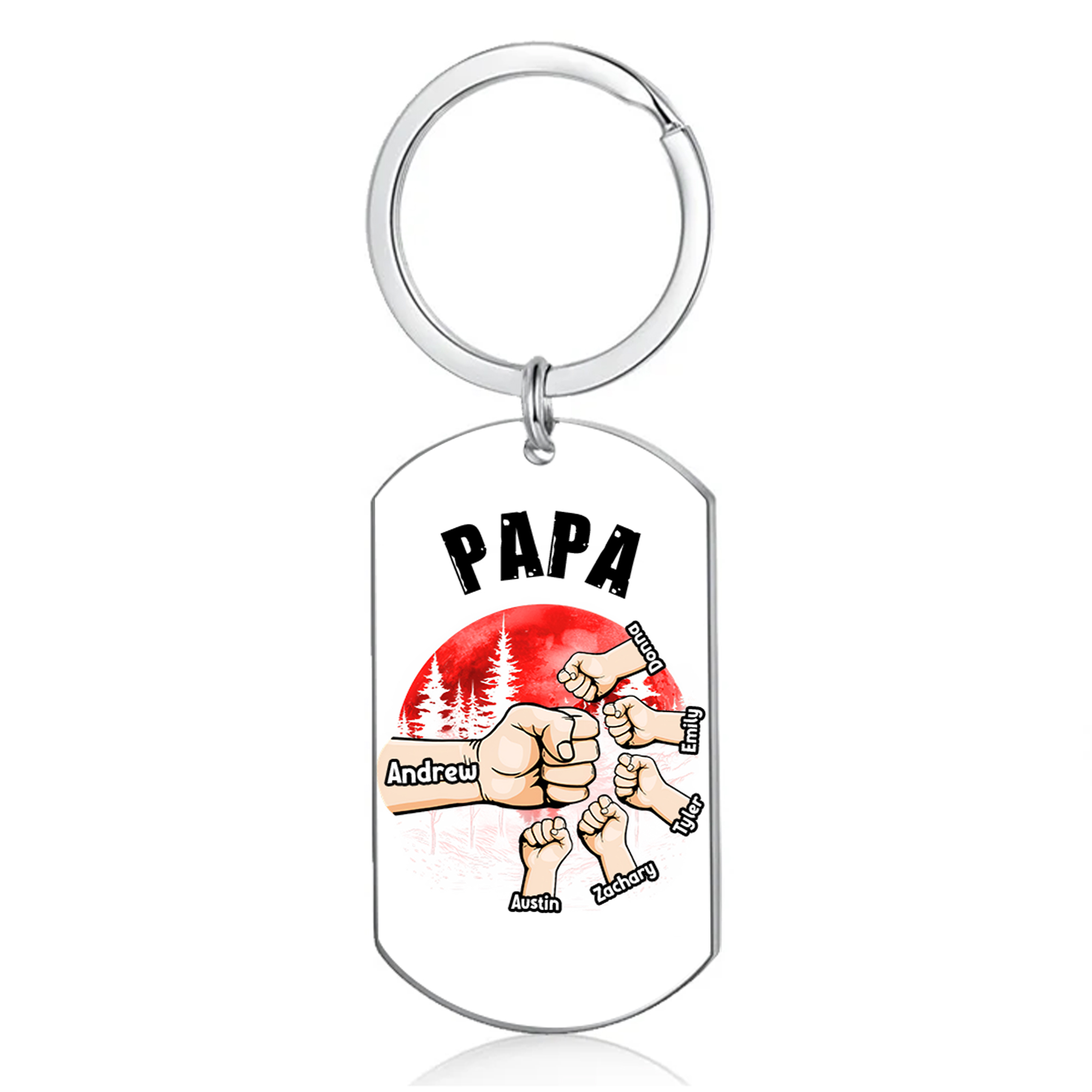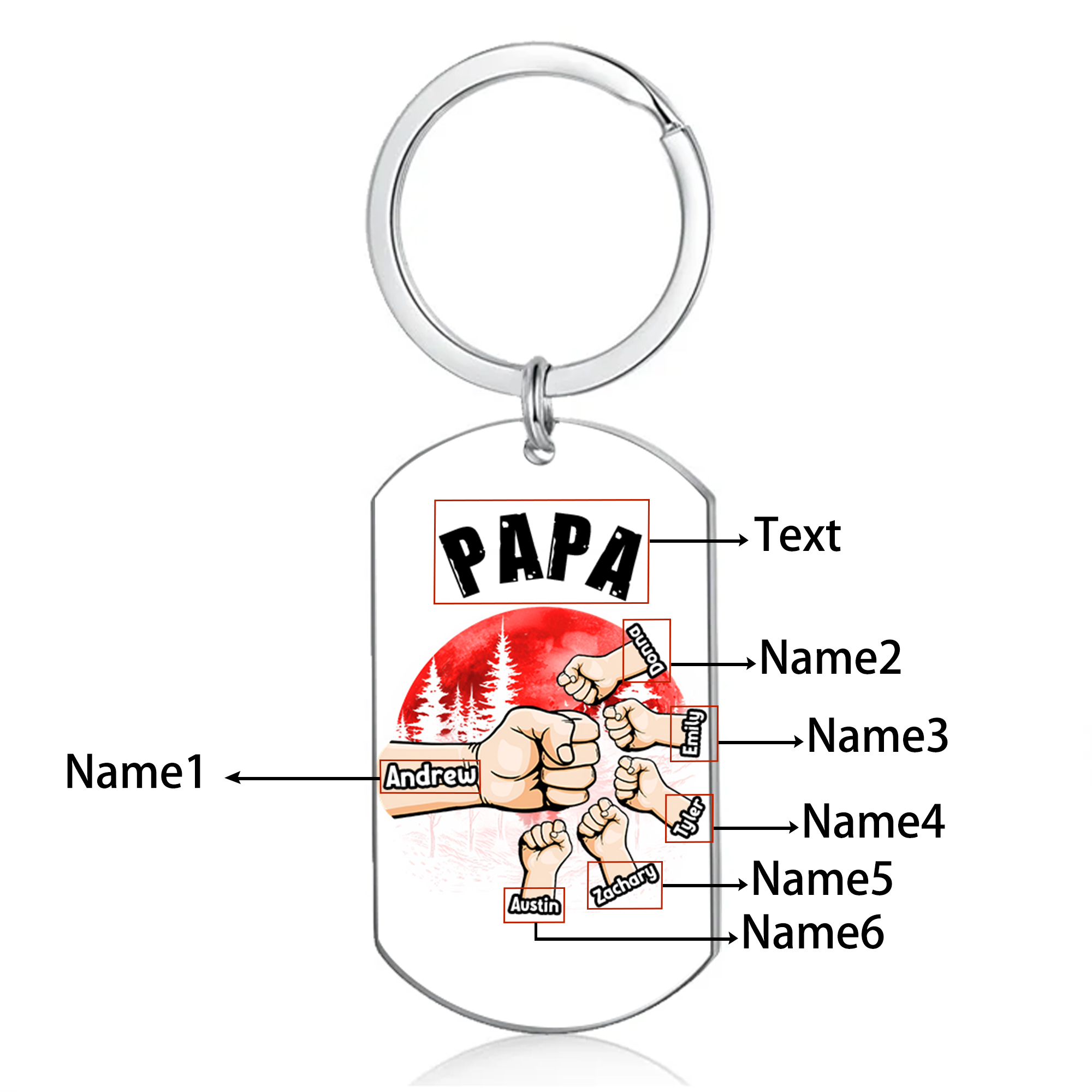 6 Names - Personalized Custom Fist Bump Keychain Mangrove Style Keychain Gift for Dad