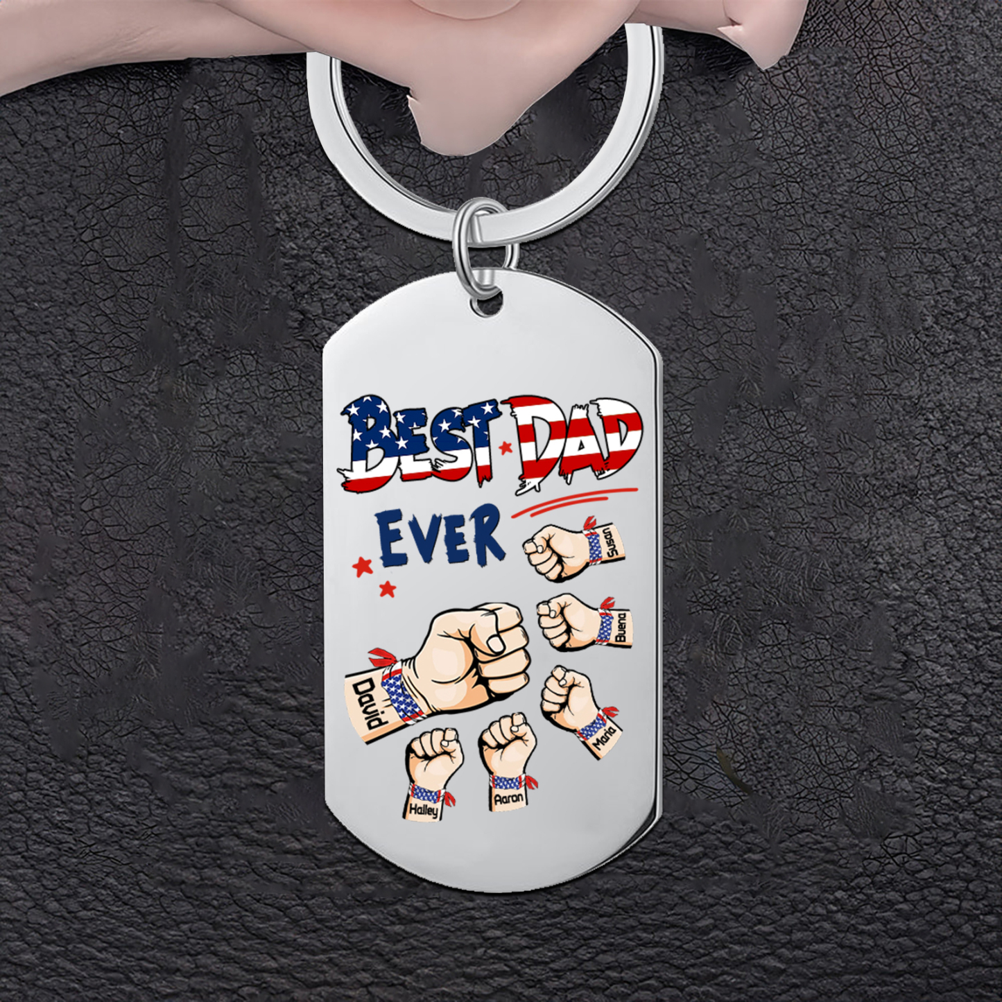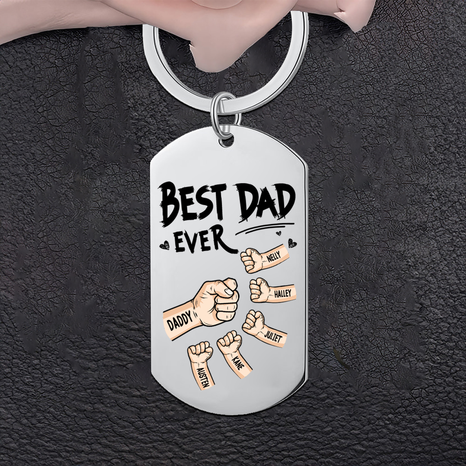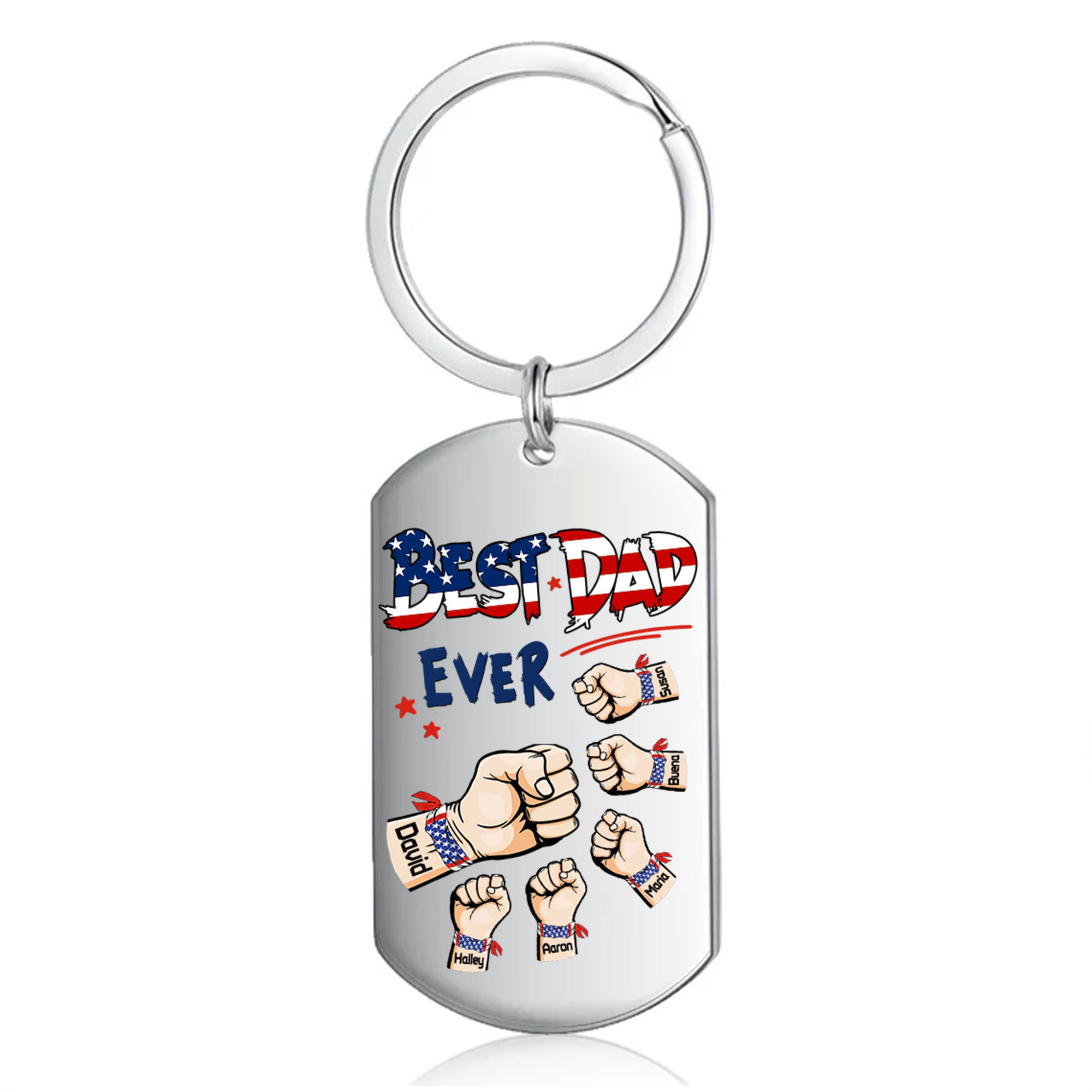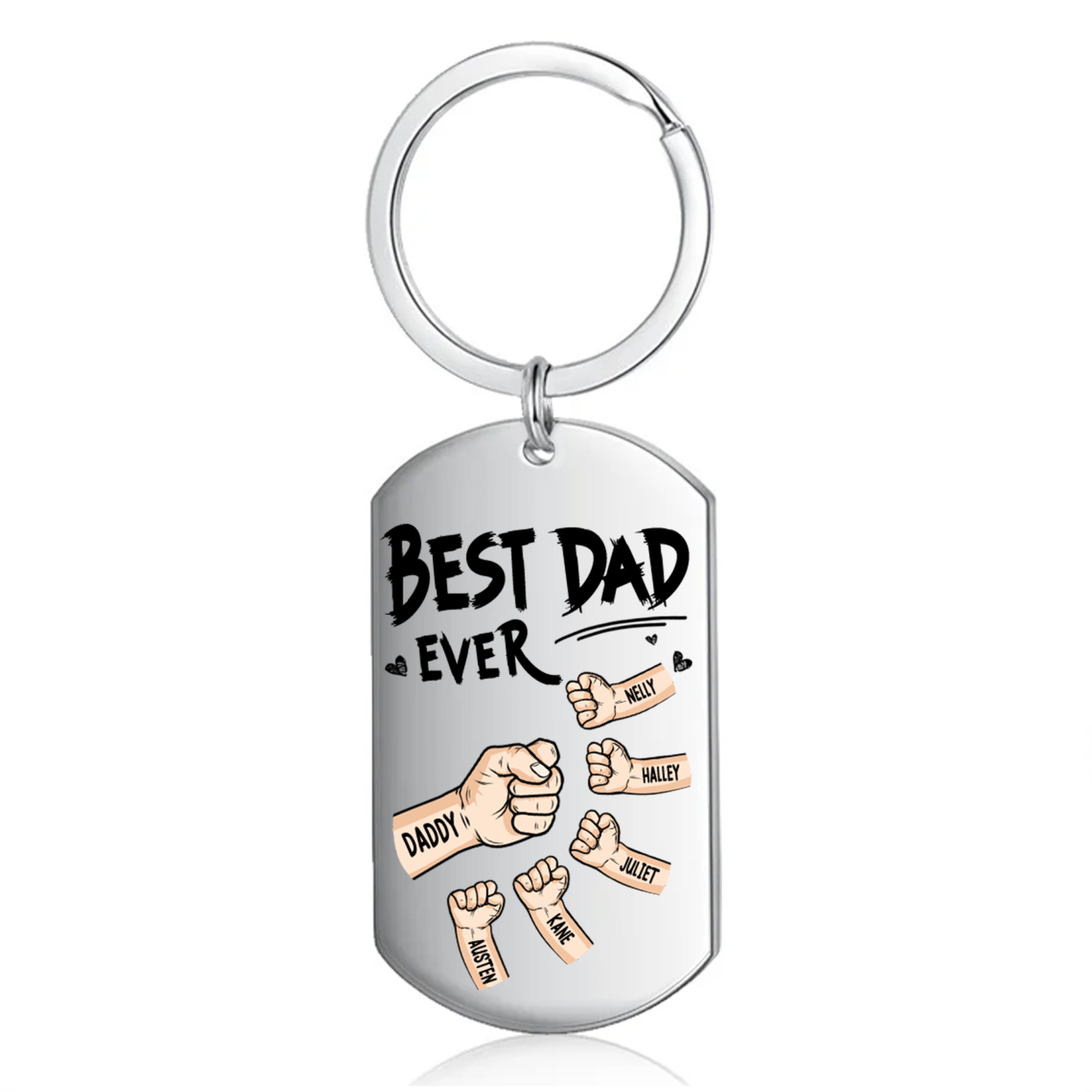 6 Names - Personalized Custom Fist Keychain Gift "Best Dad Ever" Special Keychain Gift for Dad