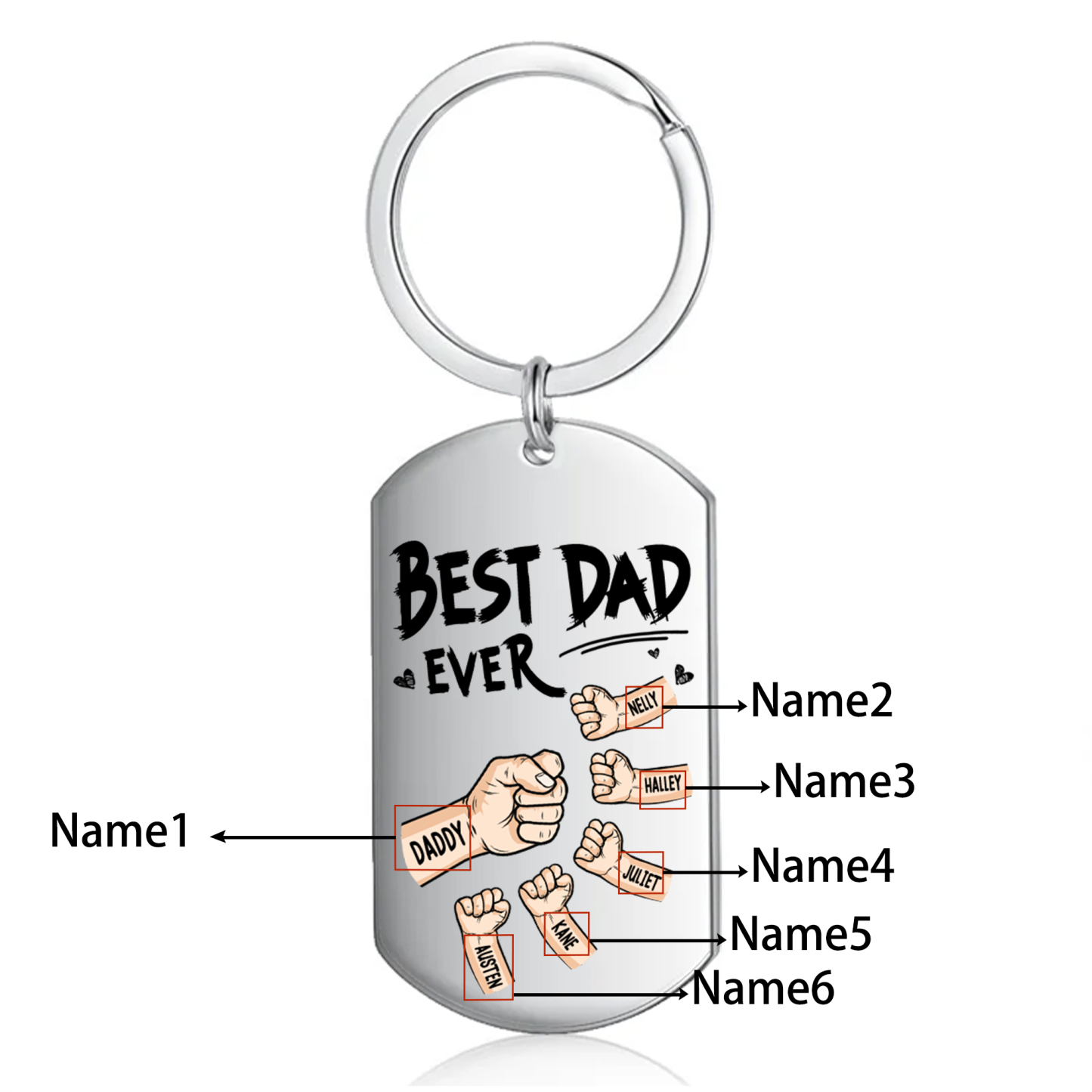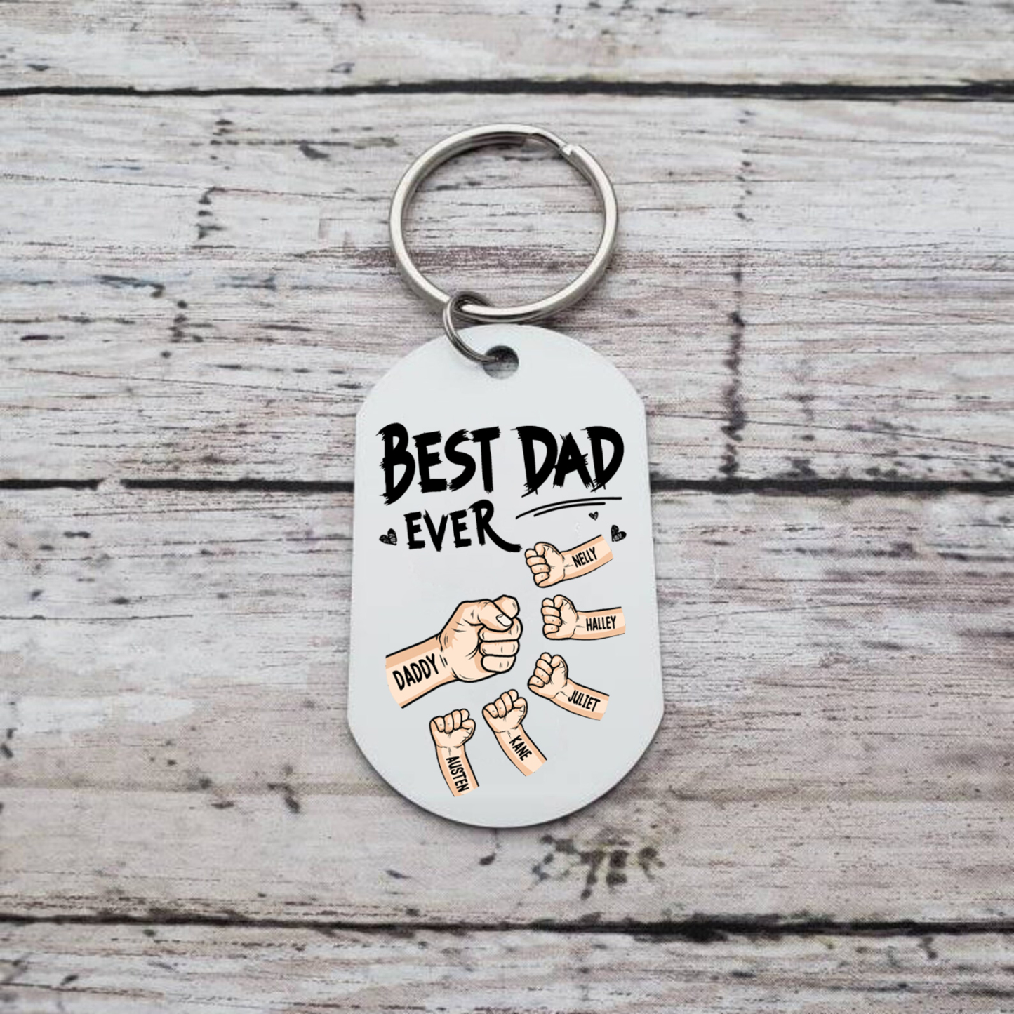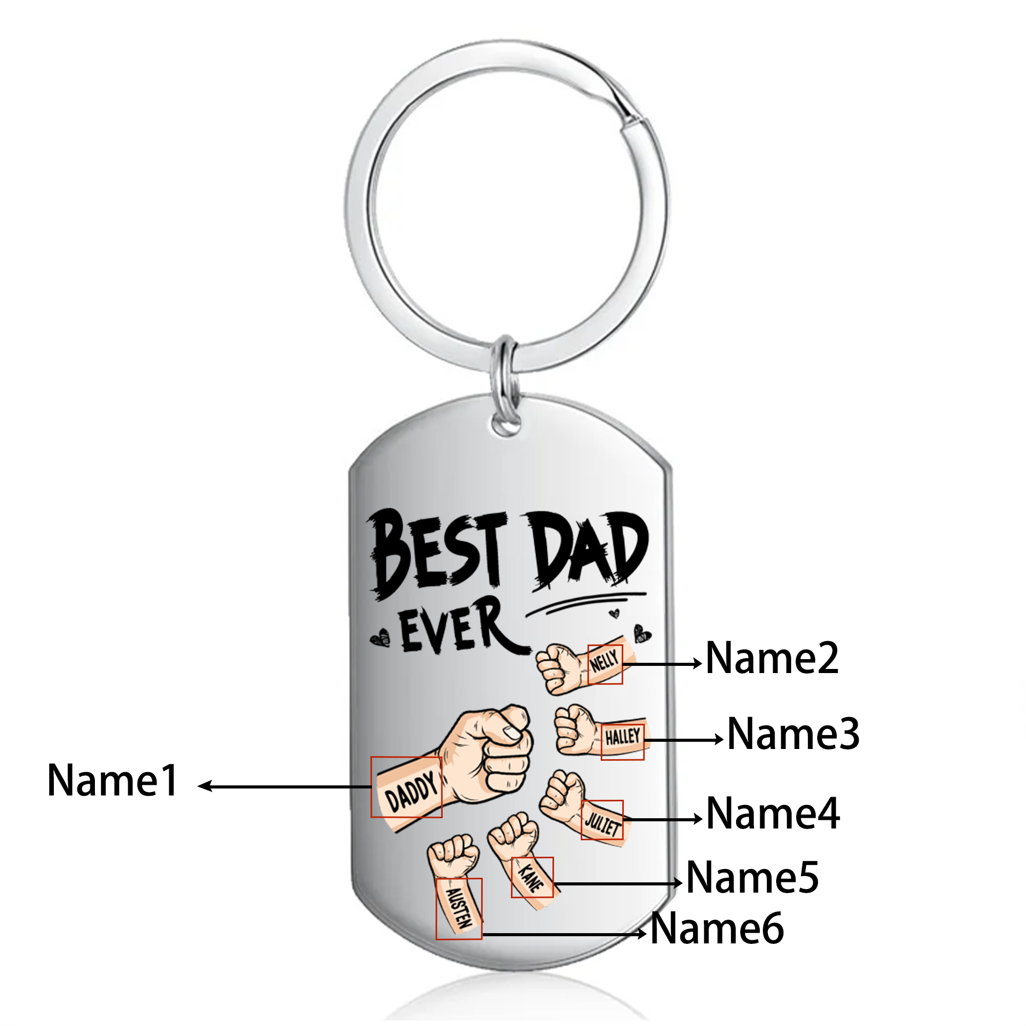 6 Names - Personalized Custom Fist Keychain Gift "Best Dad Ever" Special Keychain Gift for Dad