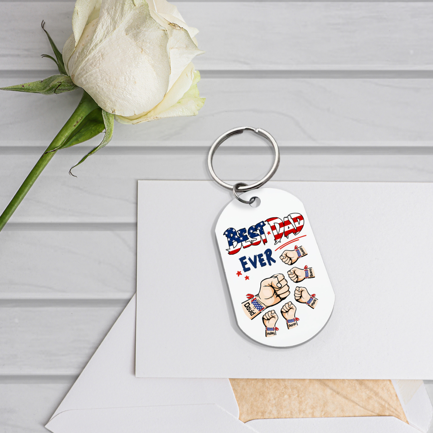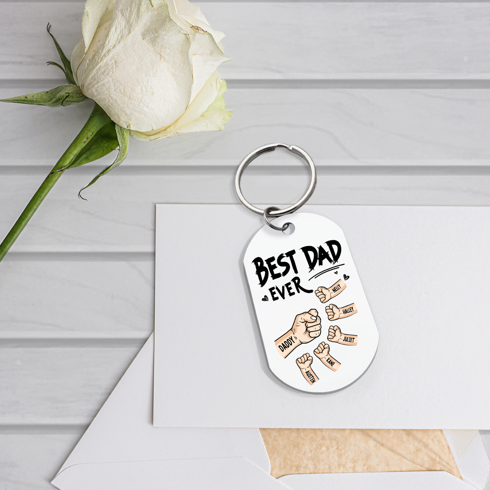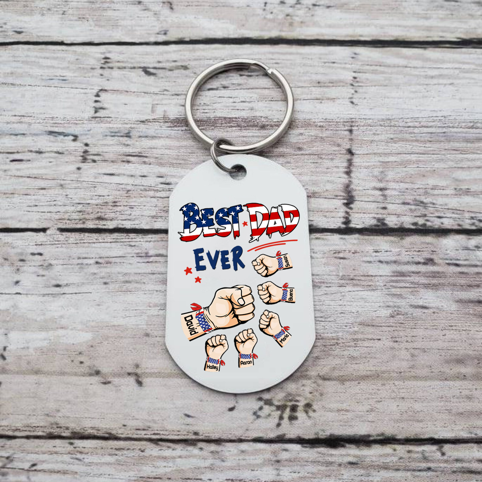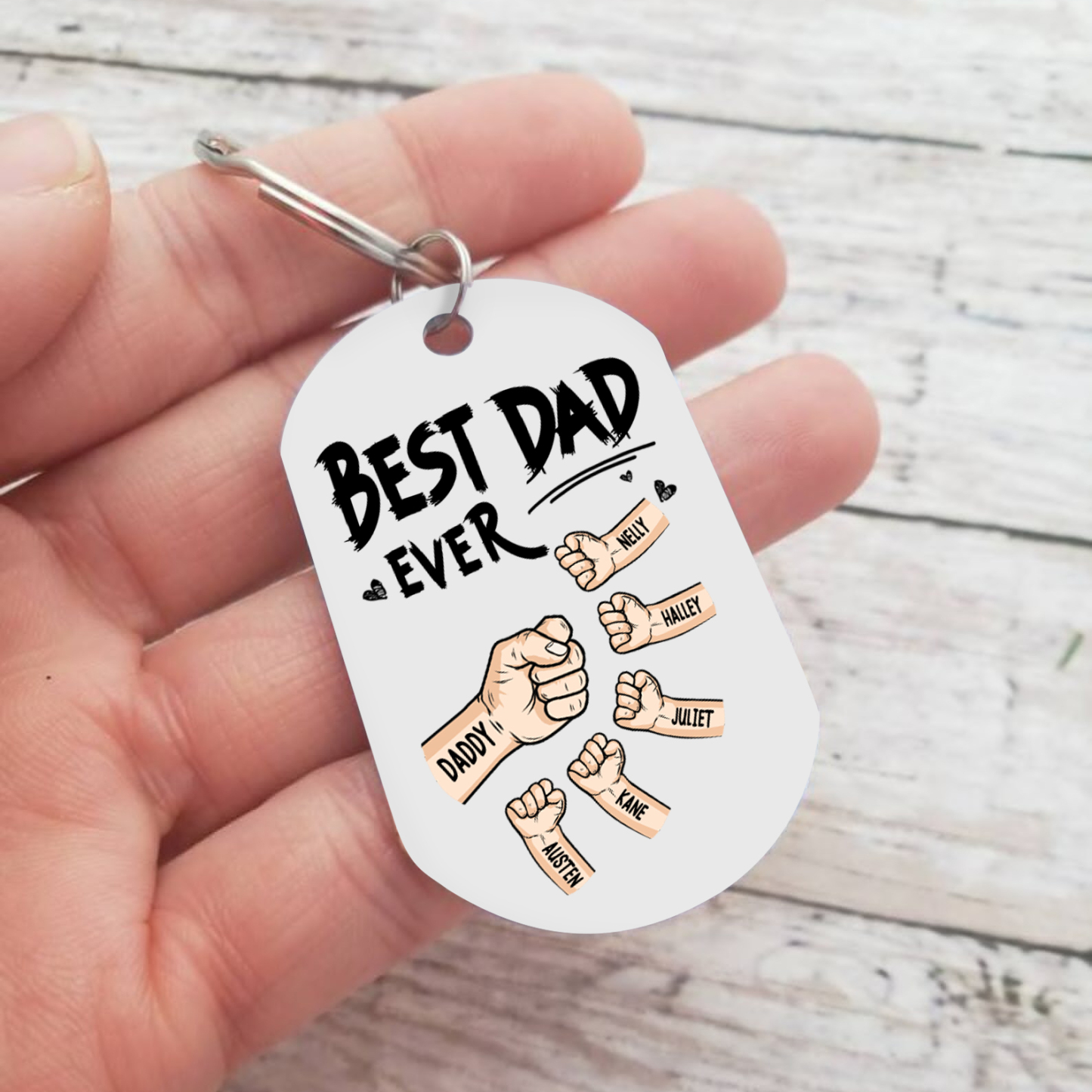 6 Names - Personalized Custom Fist Keychain Gift "Best Dad Ever" Special Keychain Gift for Dad