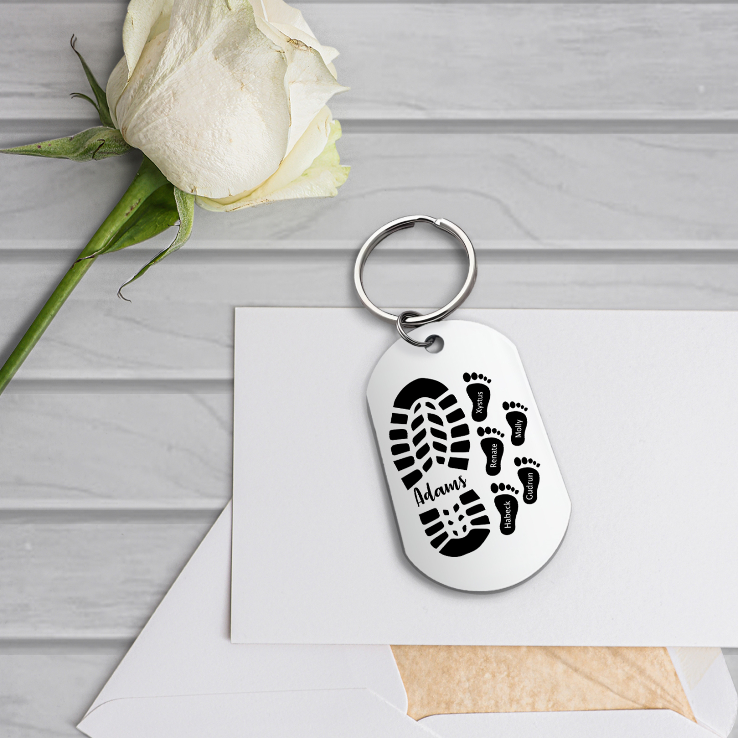 6 Names - Personalized Custom Footprint Keychain Gift Special Keychain Gift for Dad