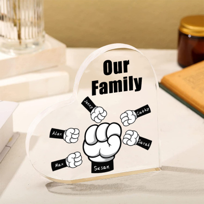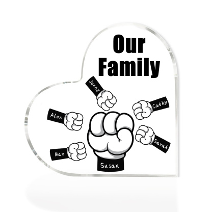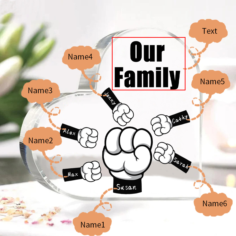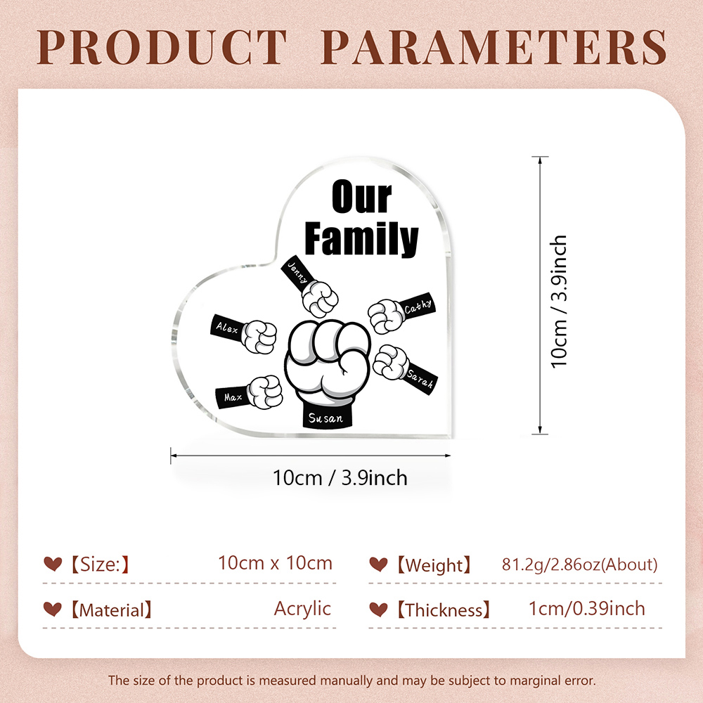 6 Names - Personalized Dad Fist Heart Acrylic Heart Keepsake Custom Text Acrylic Plaque Ornament Gift Set with Gift Box for Grandpa/Dad