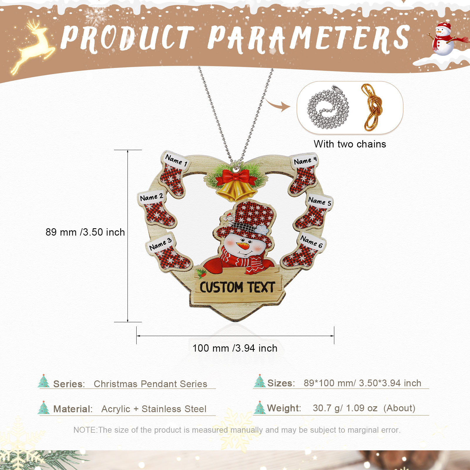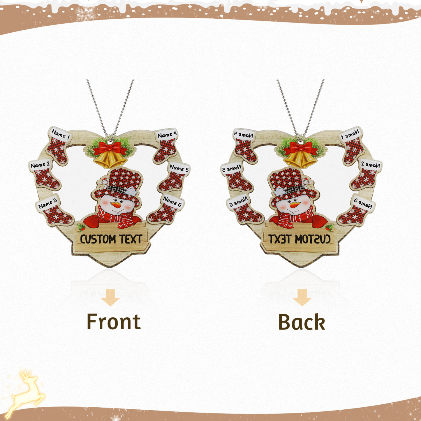 🎁Made of acrylic material, 2-8 names can be customized, The names of each family member are written on the Christmas Shocks, and the personalized text can be written under the snow man. This is a great Christmas gift for the family.