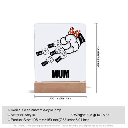 6 Names-Personalized Family Fist Bump Acrylic Night Light, Custom Text Lamp Gift For Family