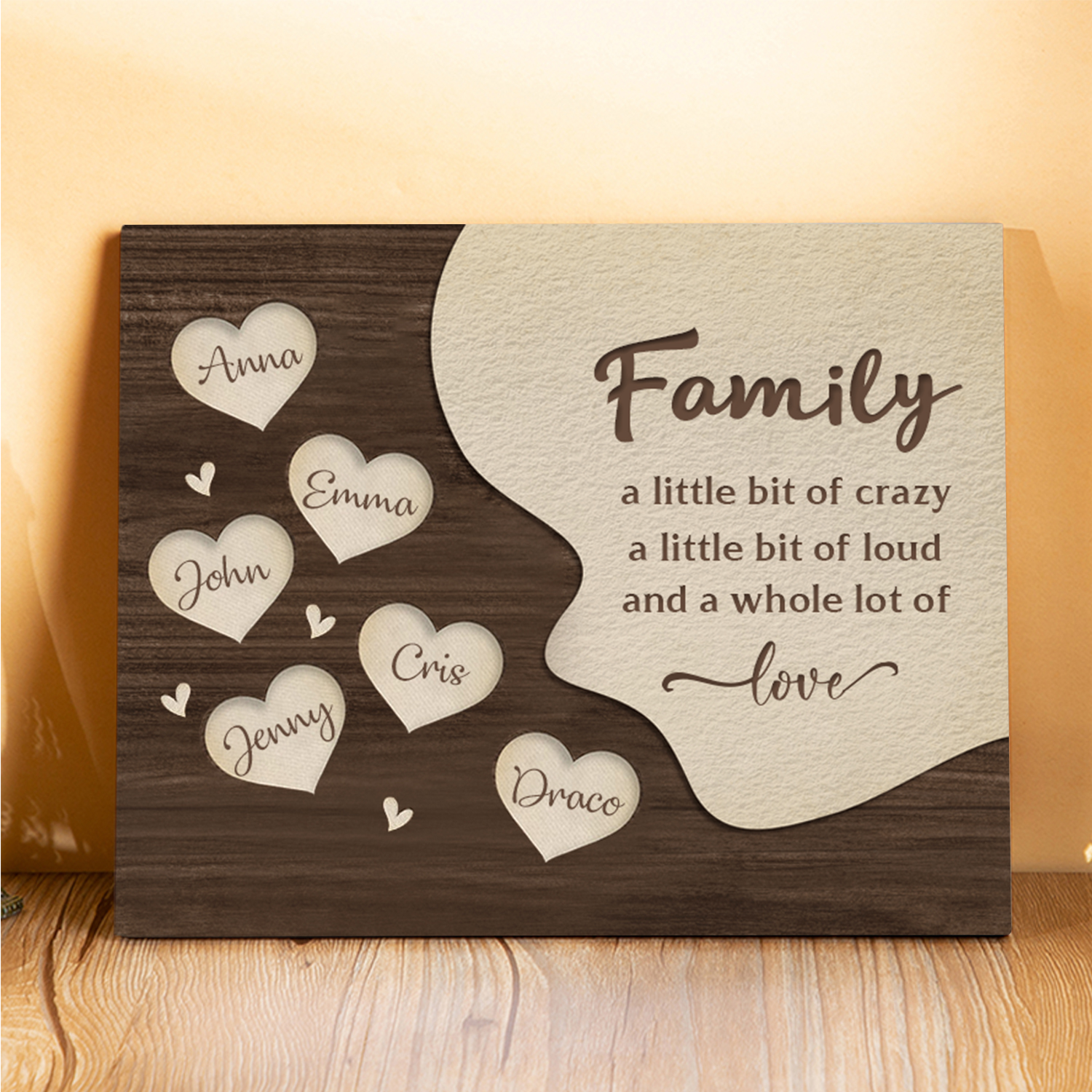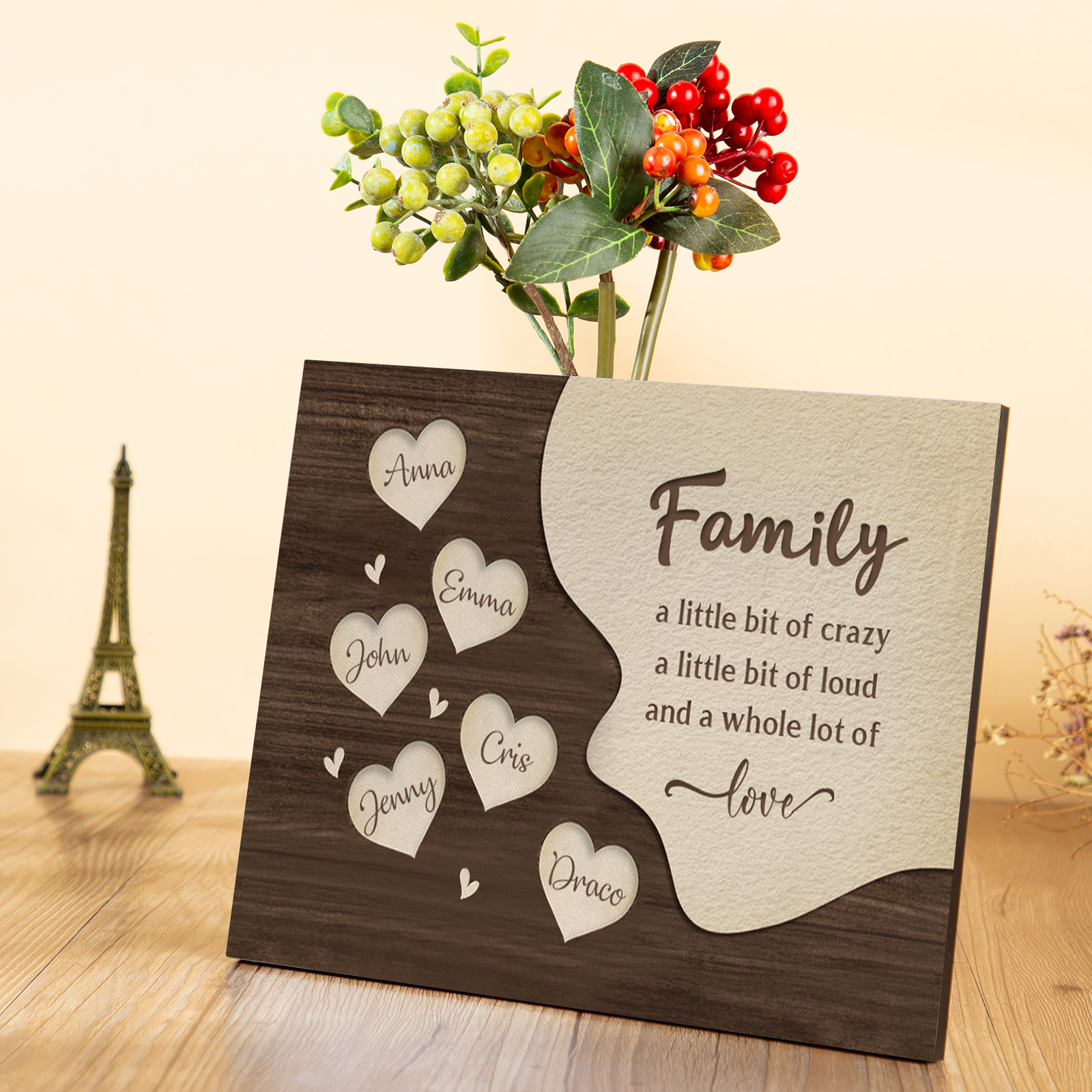 6 Names-Personalized Family Frame Wooden Ornament Home Decoration for Family