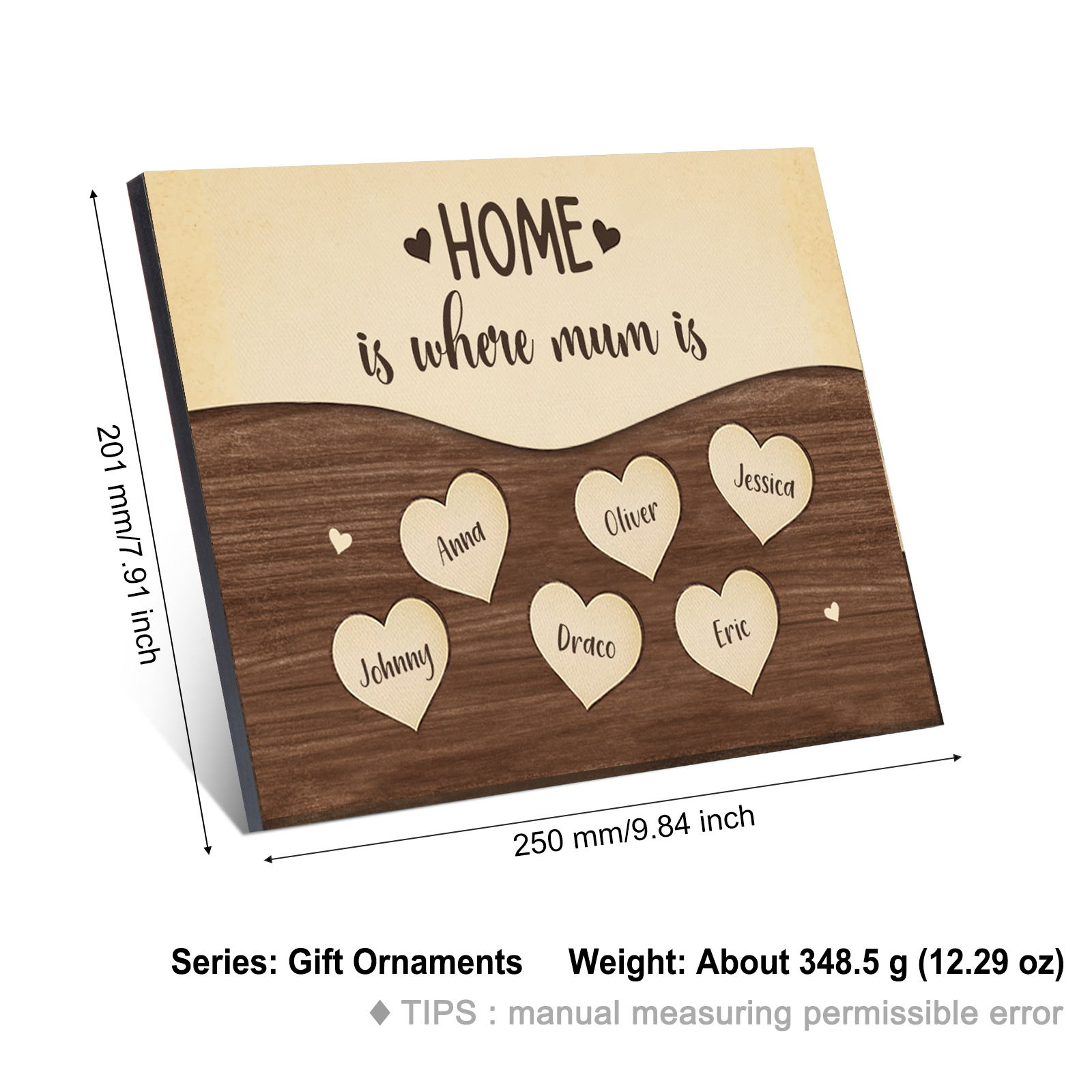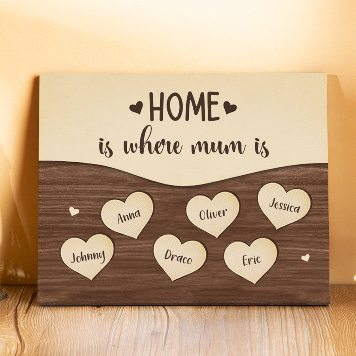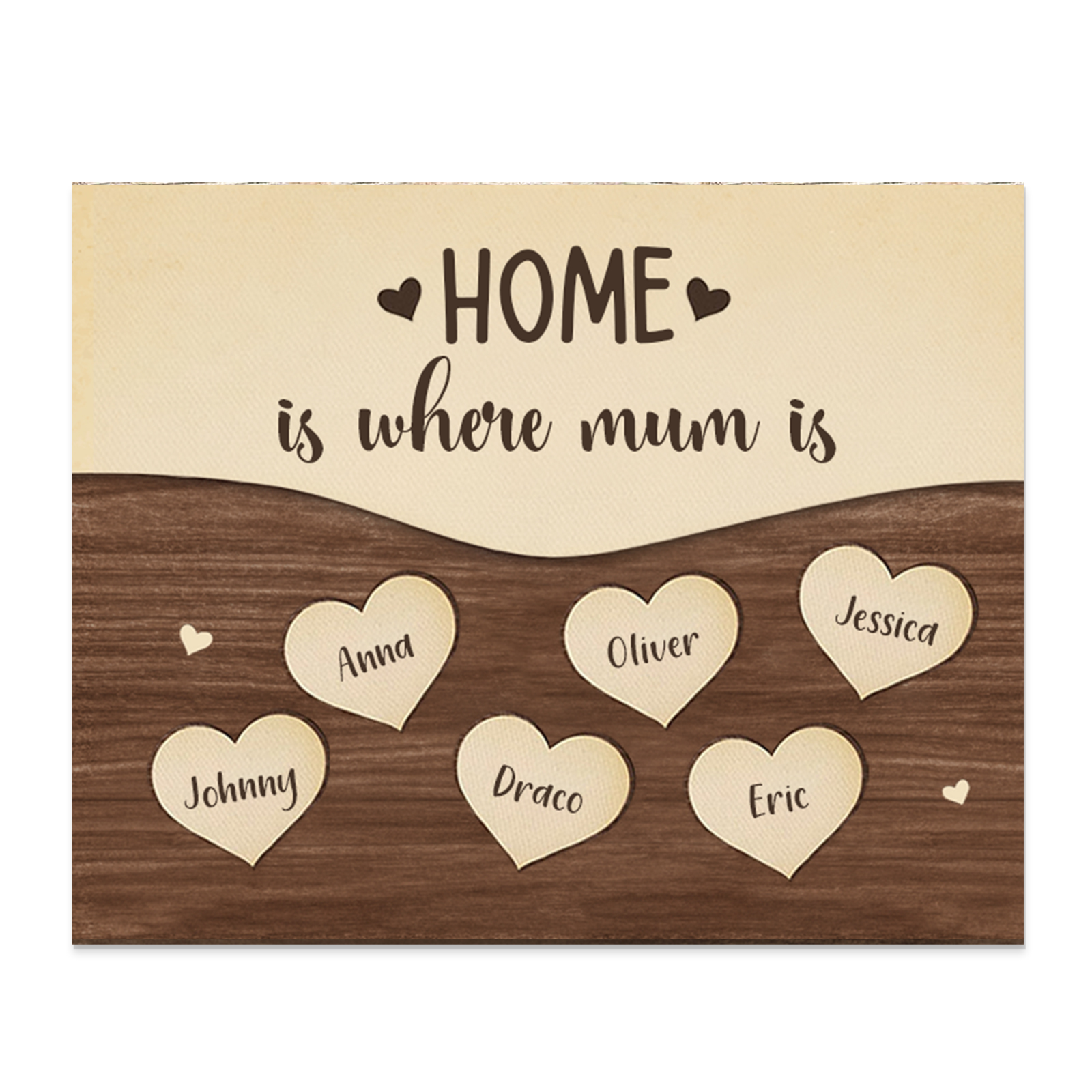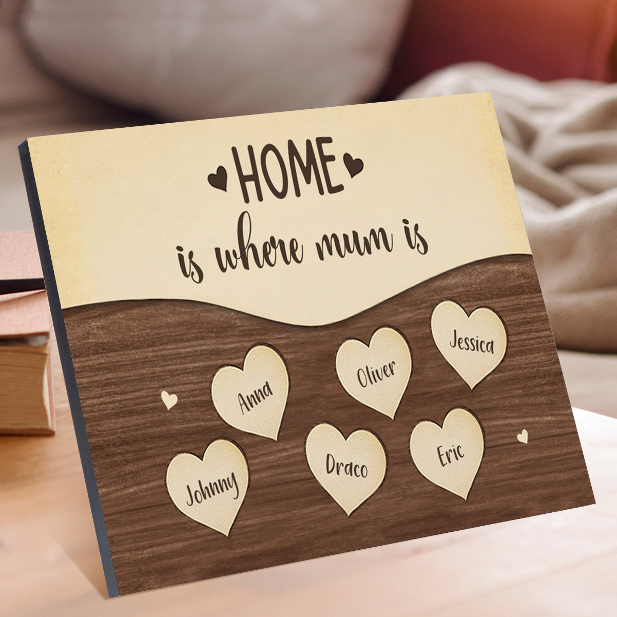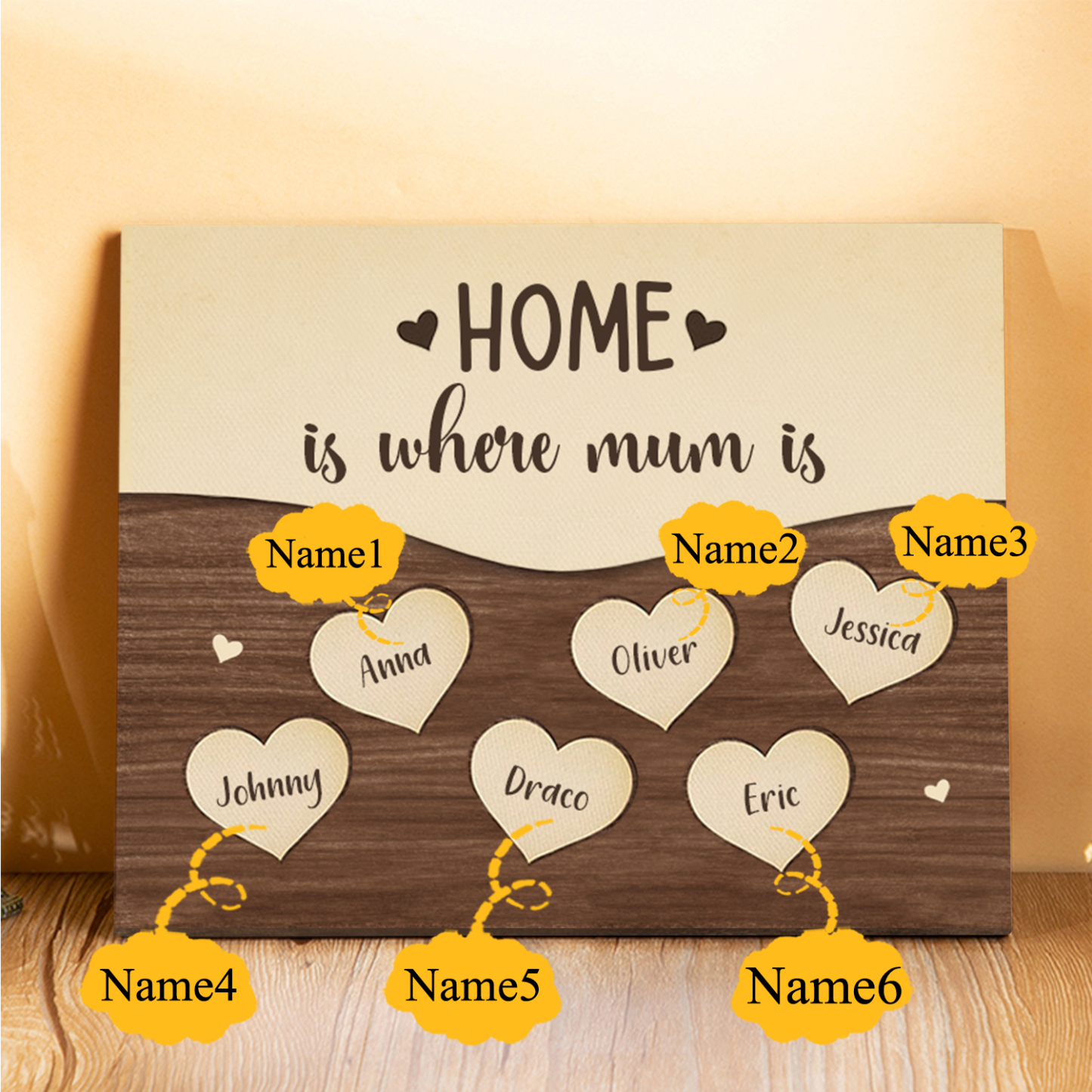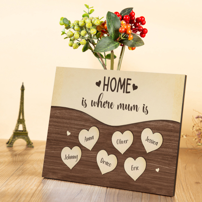 6 Names-Personalized Family Frame Wooden Ornament Home is where mum is Home Decoration for Family