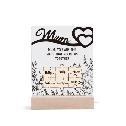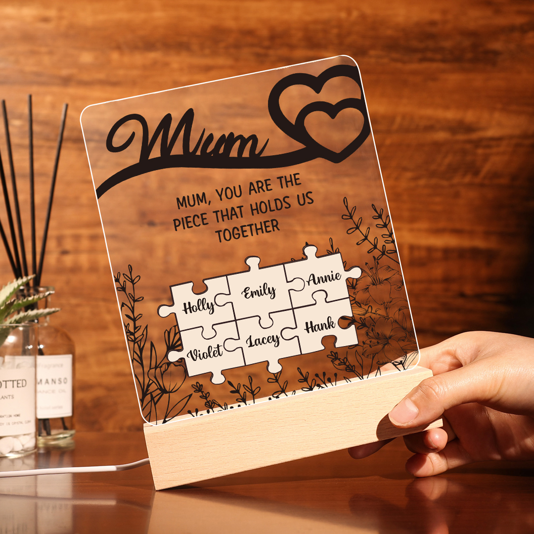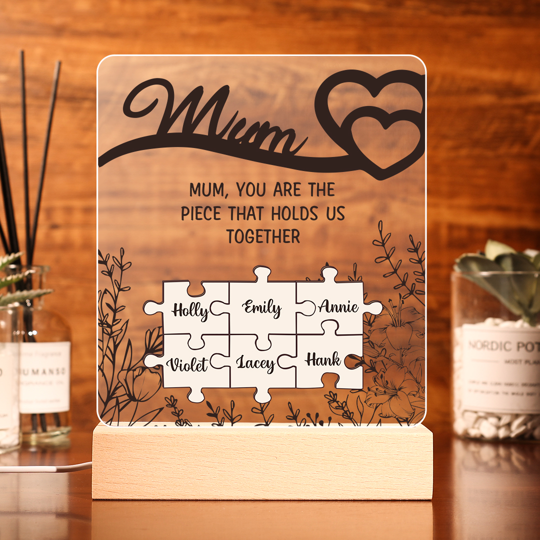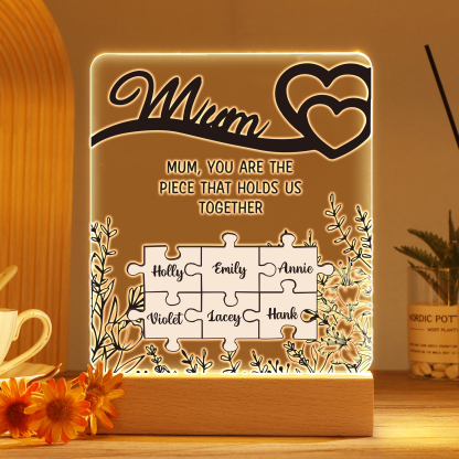 6 Names-Personalized Family Puzzle Acrylic Night Light, Mum You Are The Piece That Holds Us Together Gift For Mum