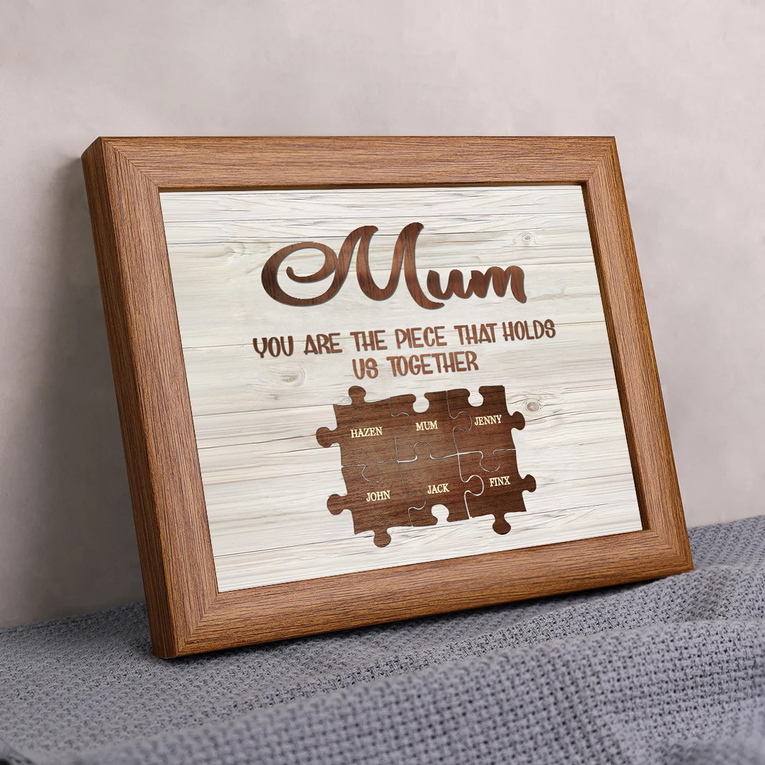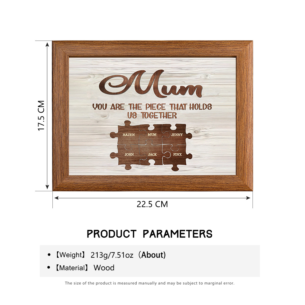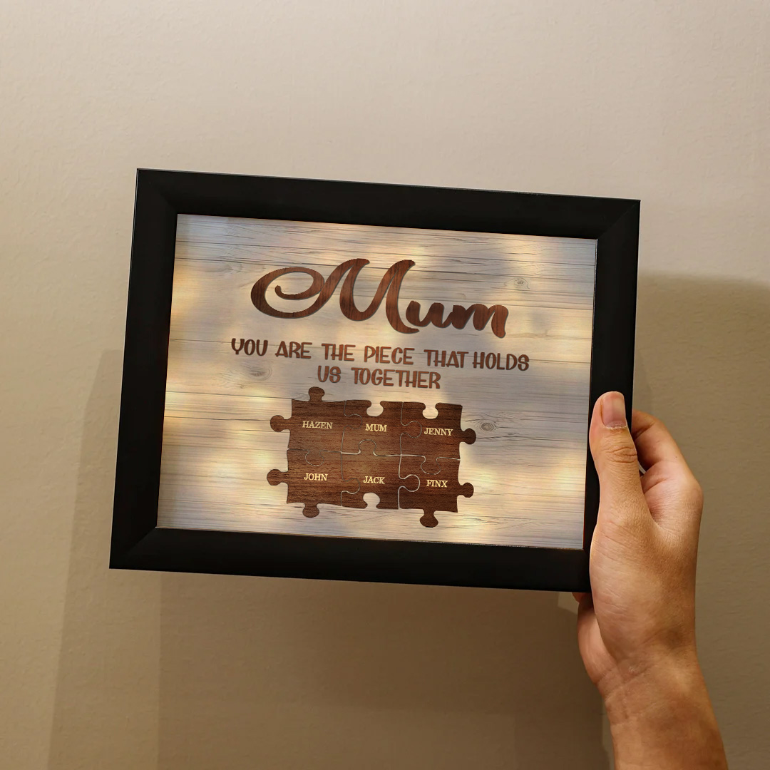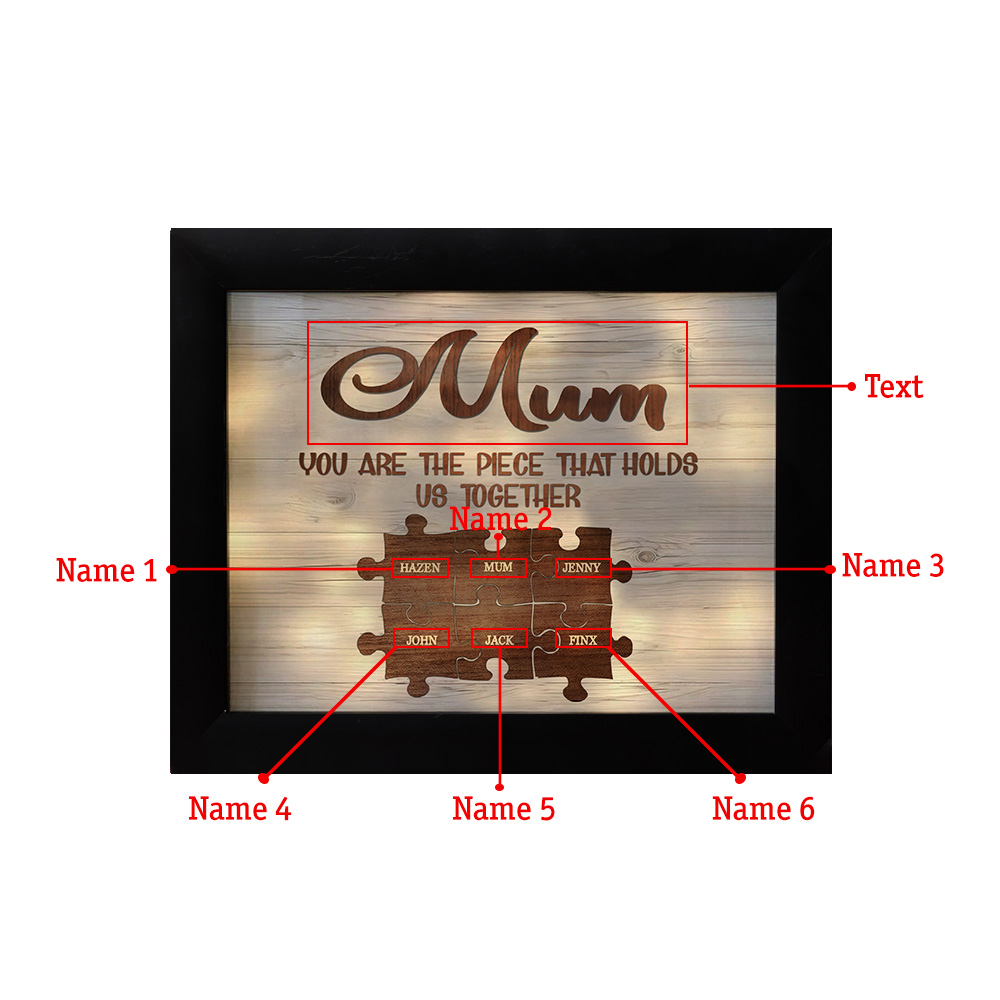 6 Names-Personalized Family Puzzle Frame You Are The Piece That Holds Us Together Custom 6 Names And Text LED Night Light
