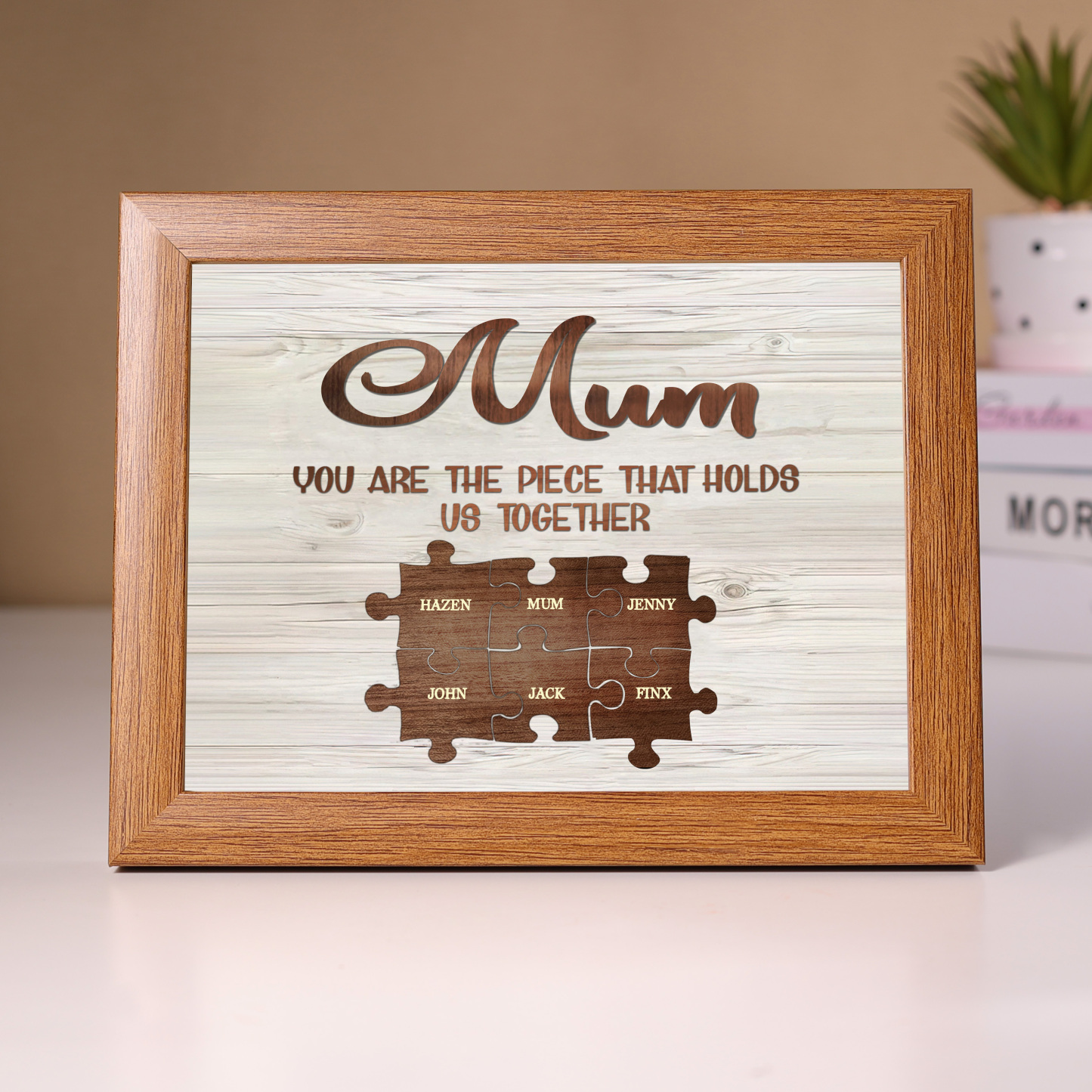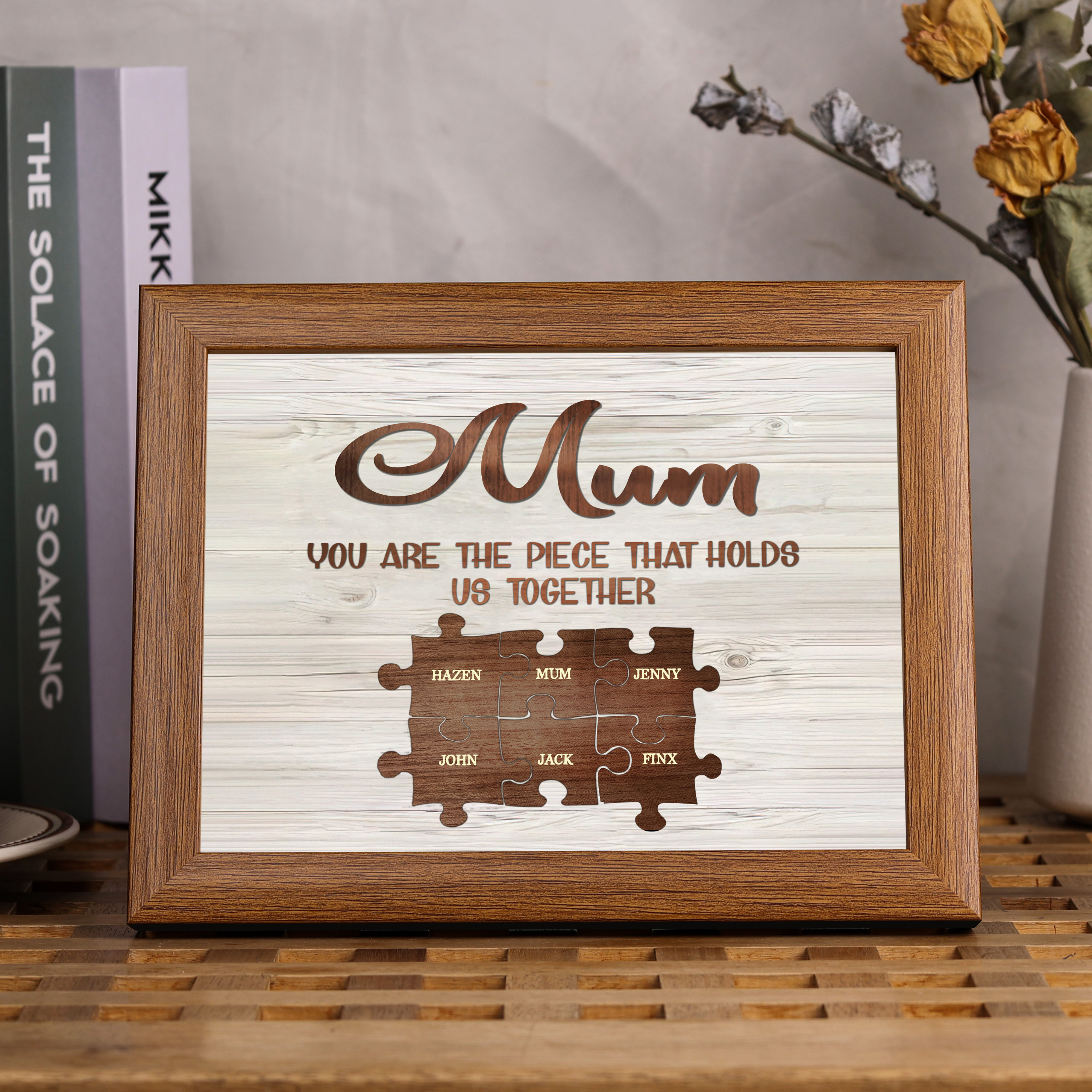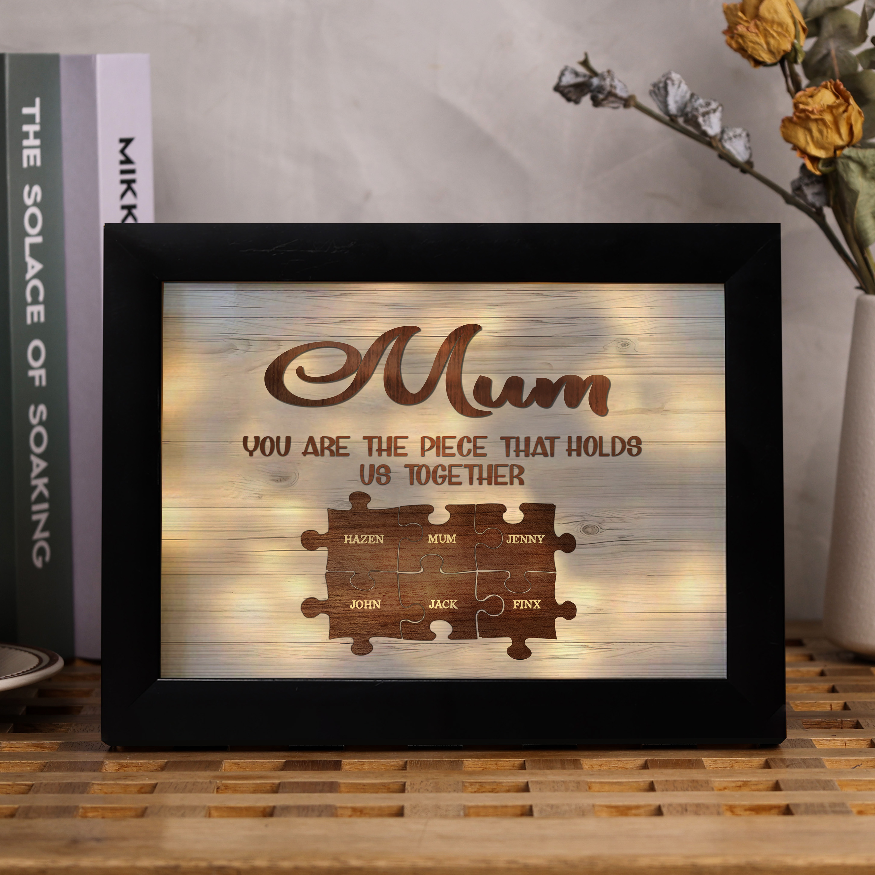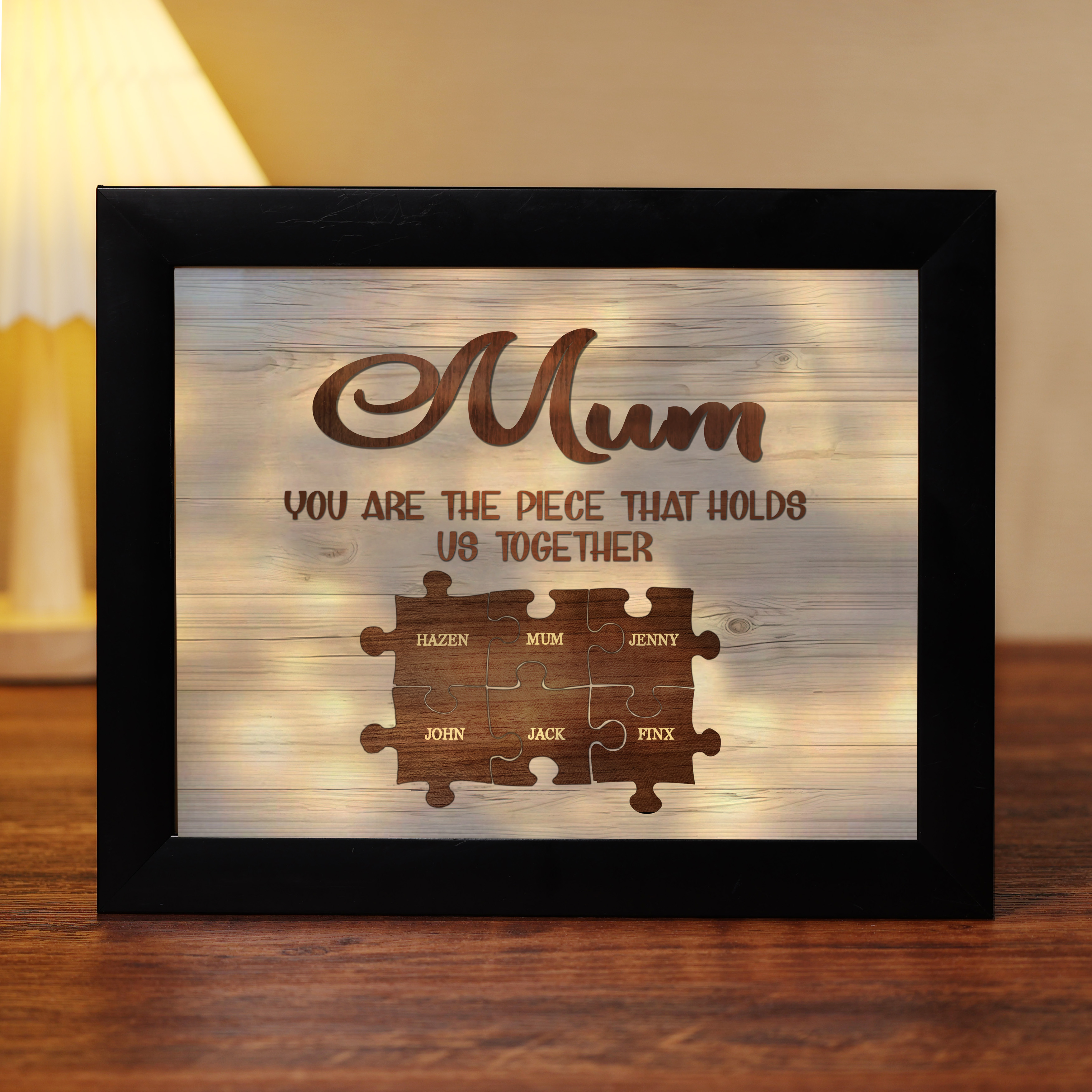 6 Names-Personalized Family Puzzle Frame You Are The Piece That Holds Us Together Custom 6 Names And Text LED Night Light