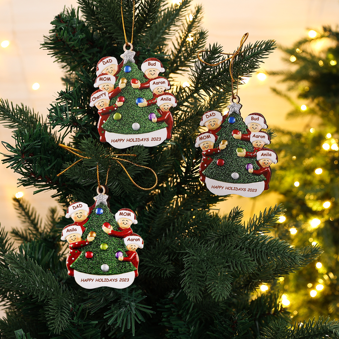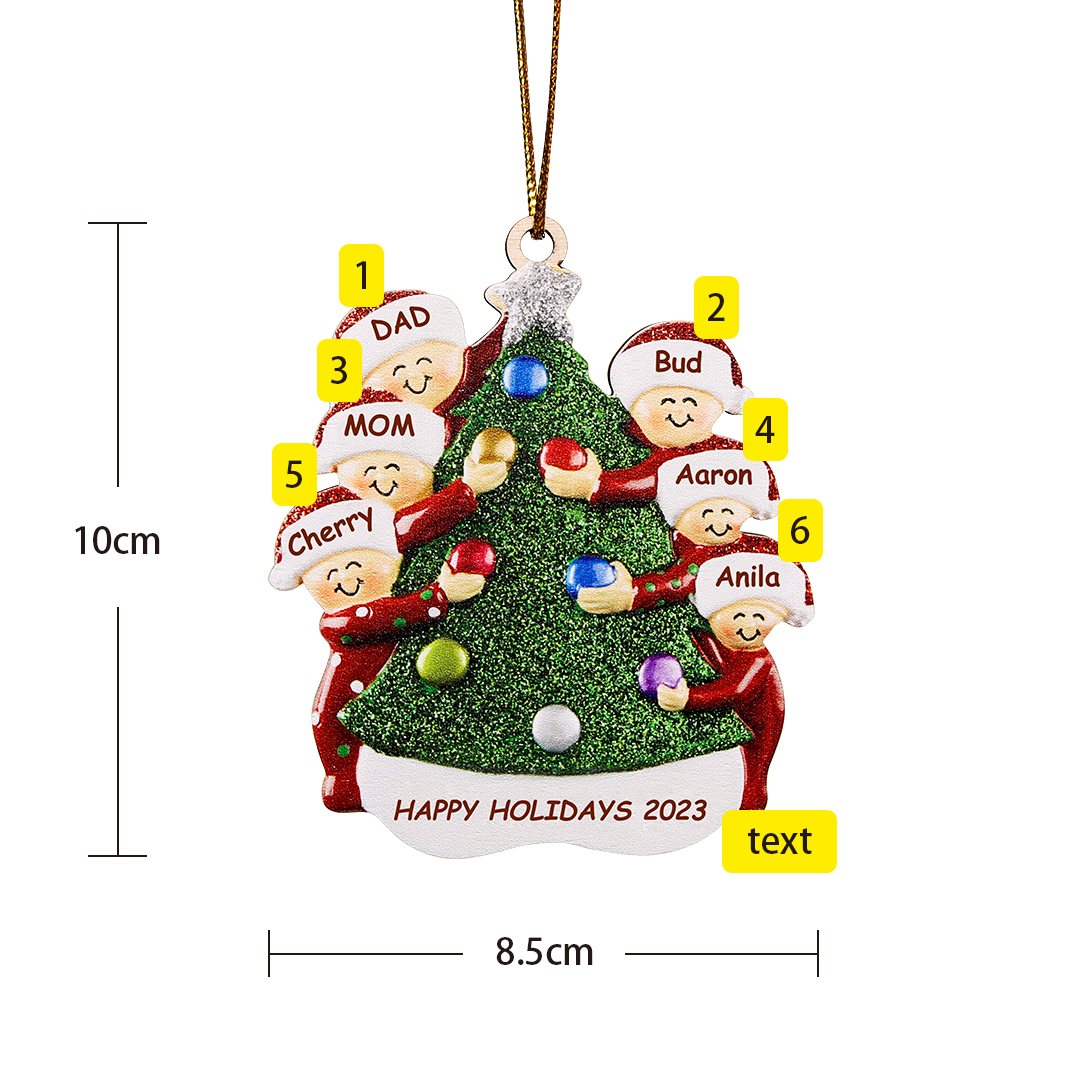 6 Names-Personalized Family Wooden Christmas Xmas Tree Decoration Ornament-Custom 6 Names And Text Hanging Ornament Gifts For Family