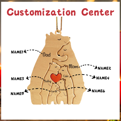 6 Names-Personalized family Wooden Puzzle Ornament-Custom 6 Names Bear Hug Ornament Gifts For Family-Special Home Decoration