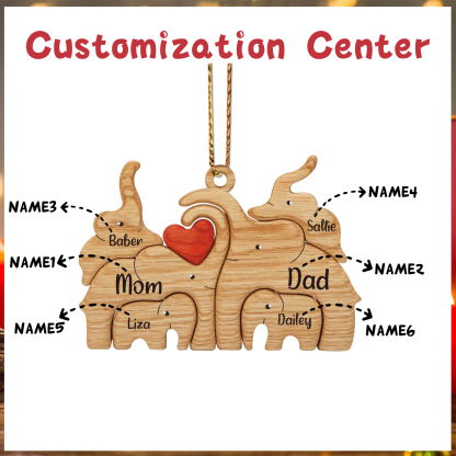 6 Names-Personalized family Wooden Puzzle Ornament-Custom 6 Names Elephant Hug Ornament Gifts For Family-Special Home Decoration