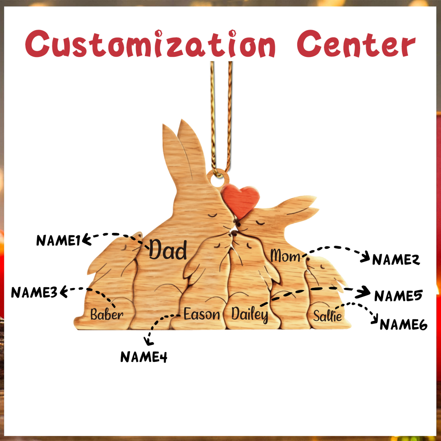6 Names-Personalized Family Wooden Puzzle Ornament-Custom 6 Names Rabbit Hug Ornament Gifts For Family-Special Home Decoration