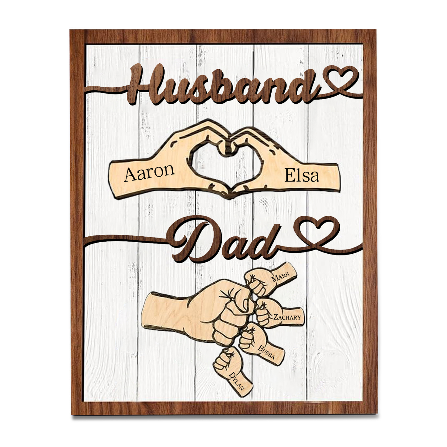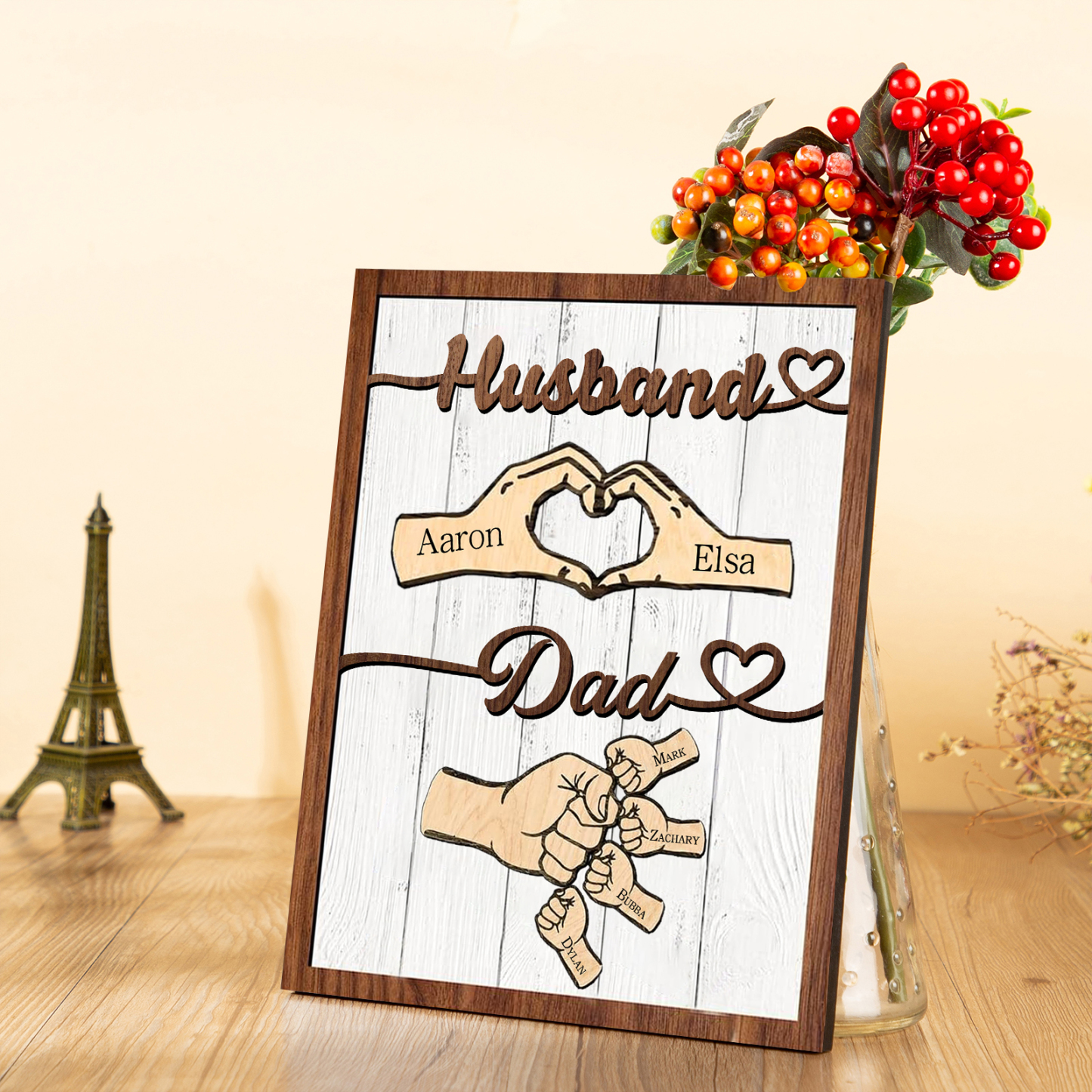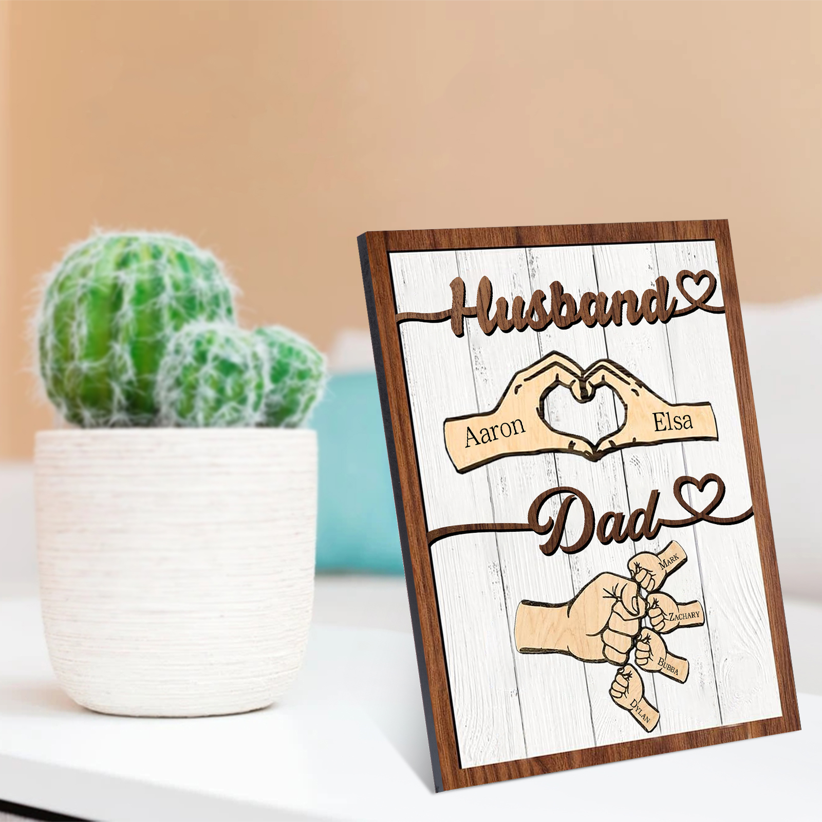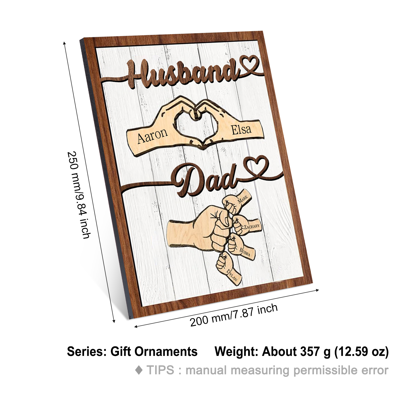 6 Names - Personalized Fist Bump Home Wooden Decor Father's Day Gift for Dad