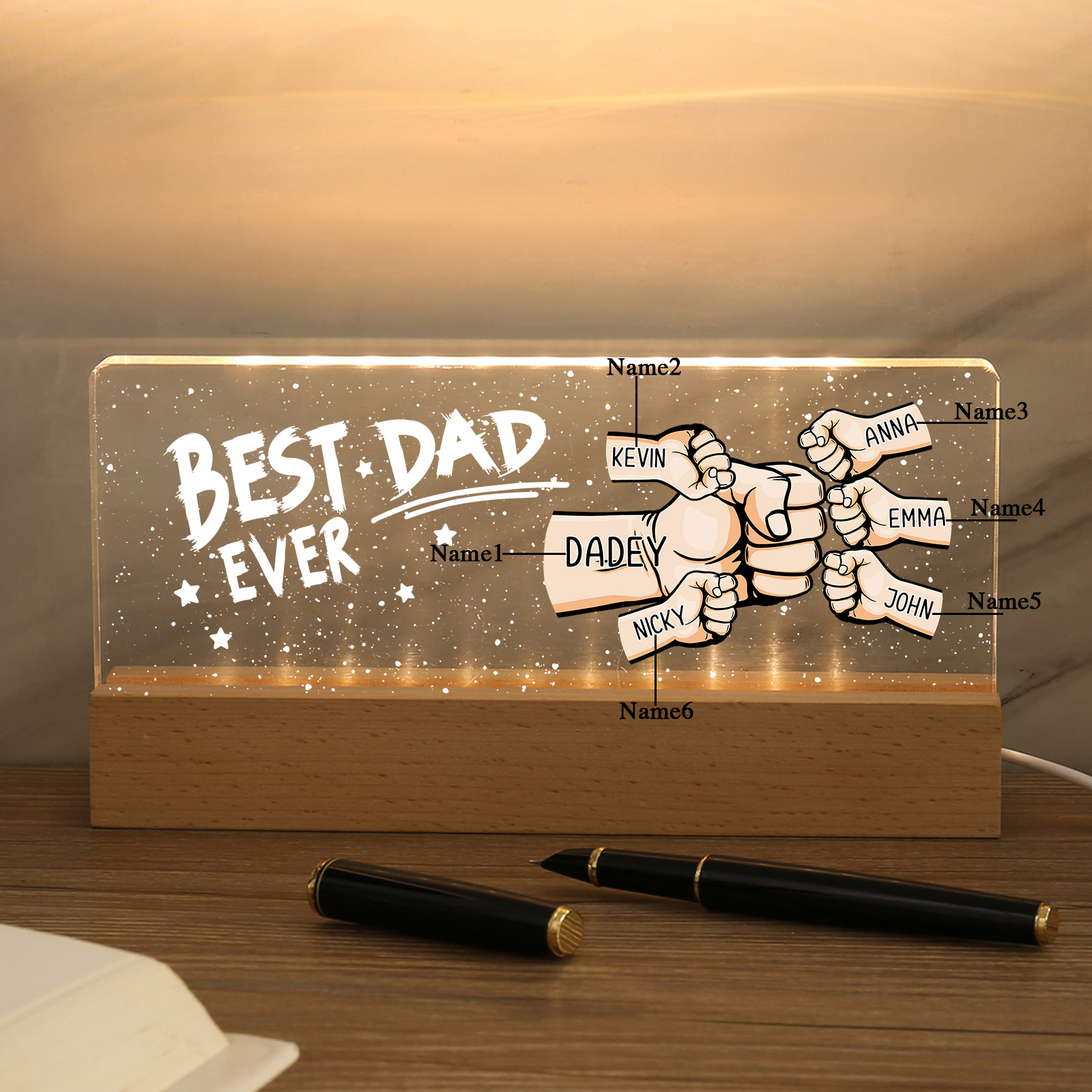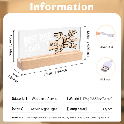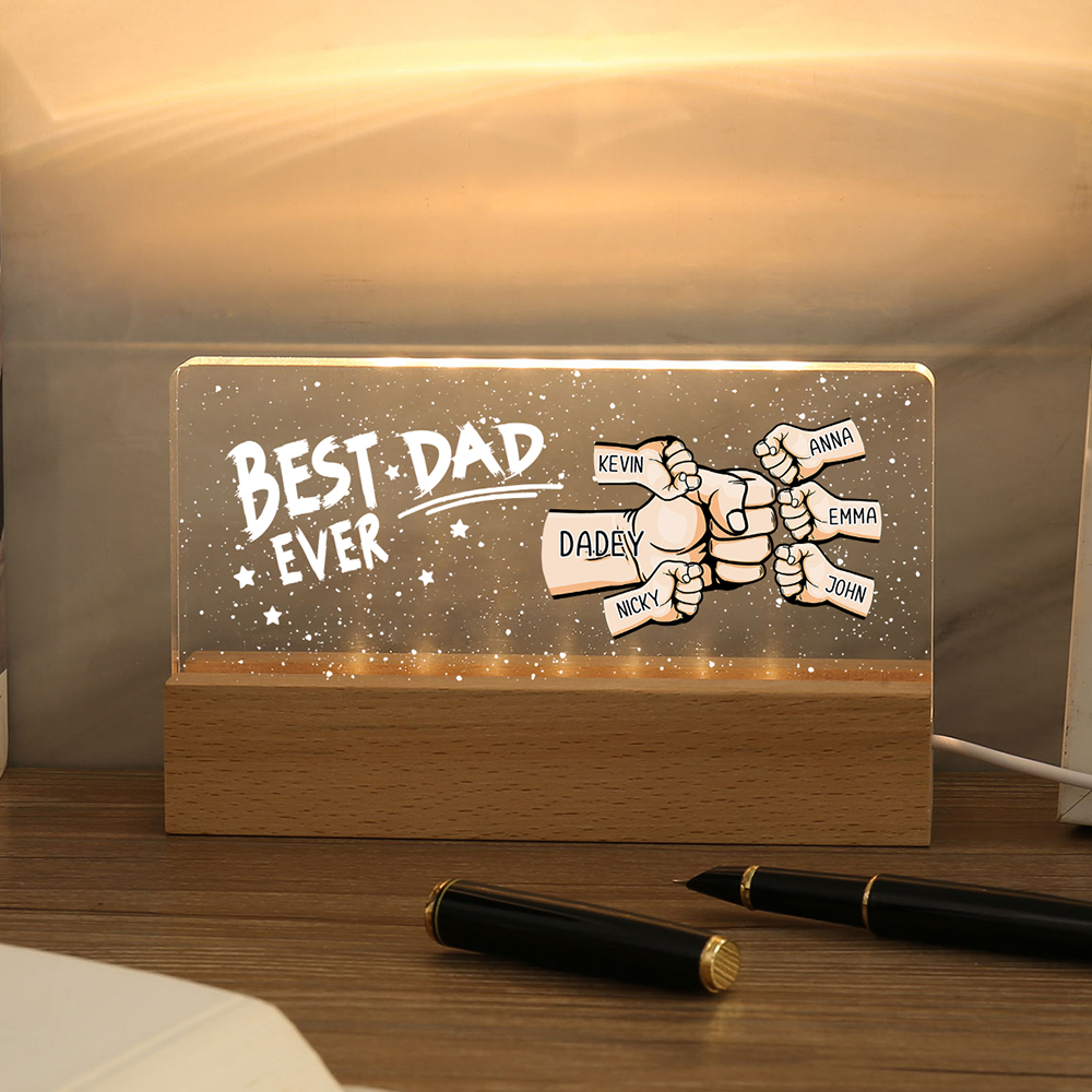 6 Names - Personalized Fist Bump Lamp - Best Dad Ever - Father's Day Gift for Dad