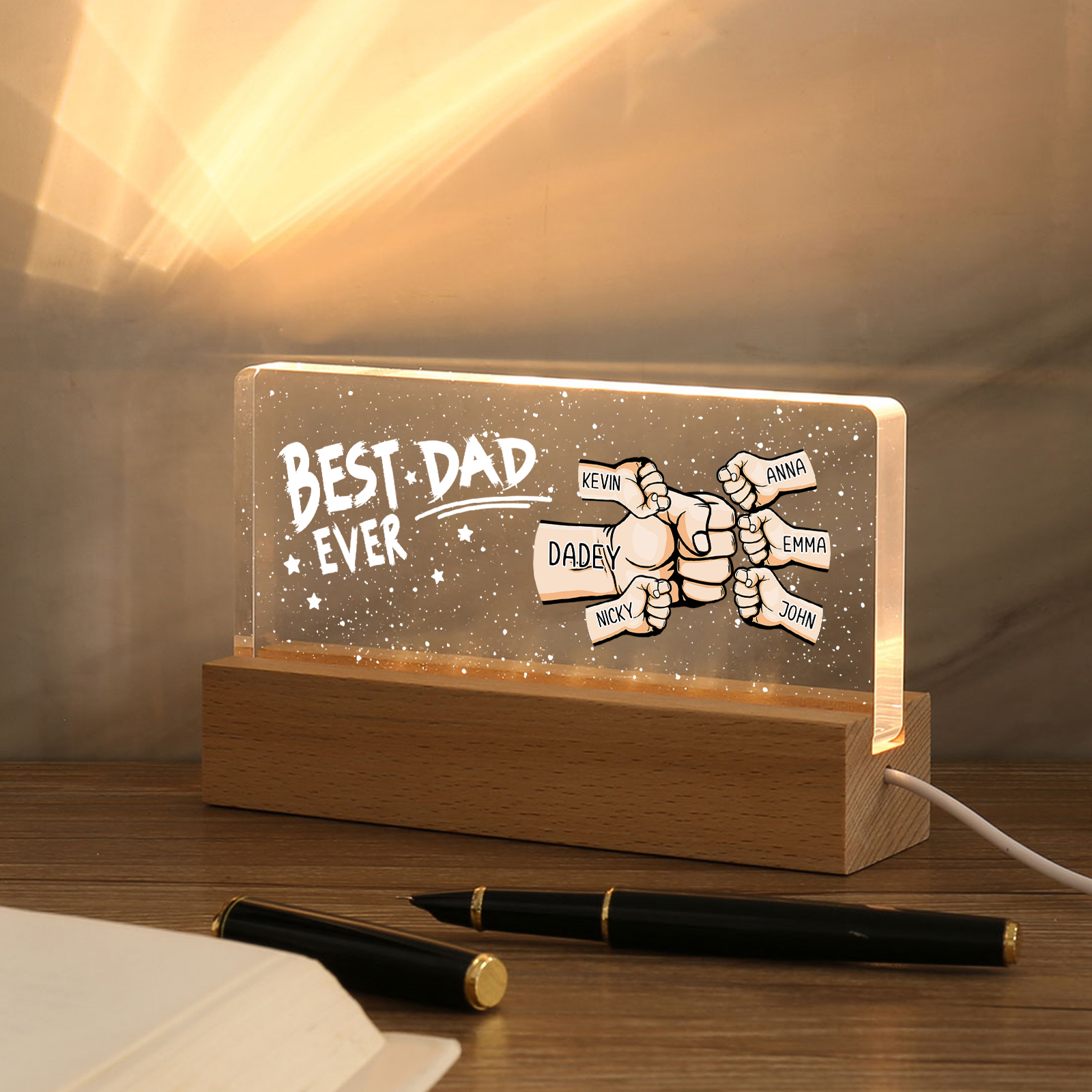 💡Customize a fist bump desk lamp with Dad's name! 🌟 Light up Dad's world with a unique gift. ❤️This stylish desk lamp featuring Dad's name and an impressive fist bump design will add a modern touch to his space. Brighten his day with personalized warmth and style. Order now to brighten his day! 🥰