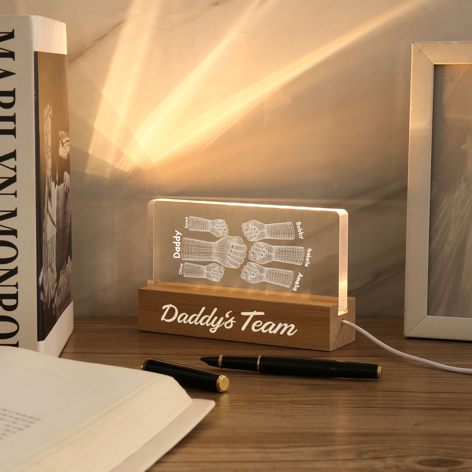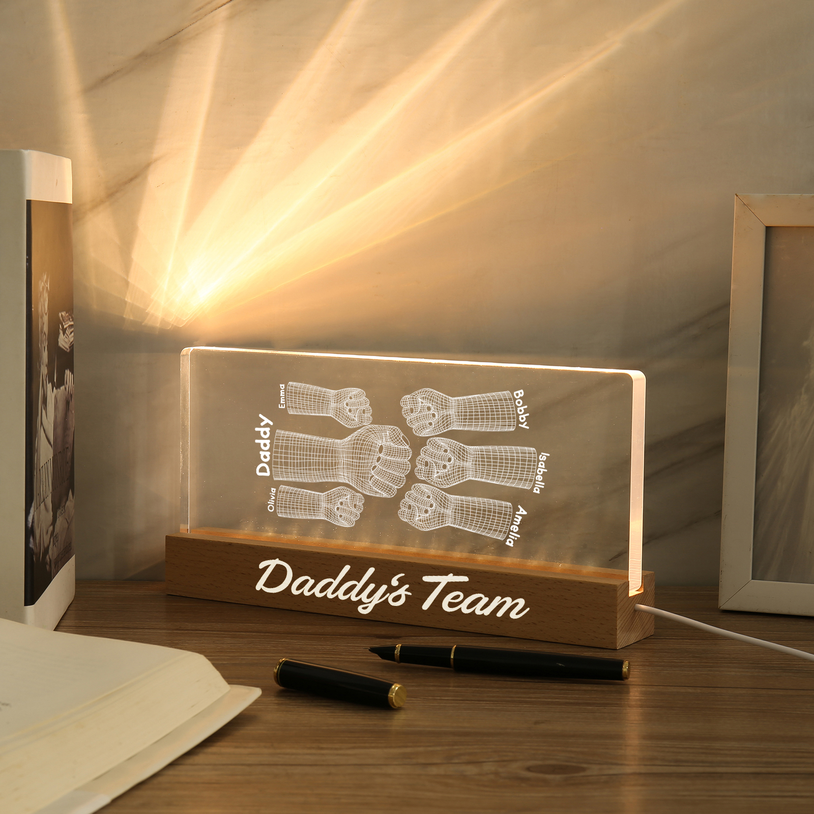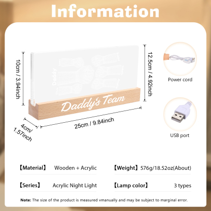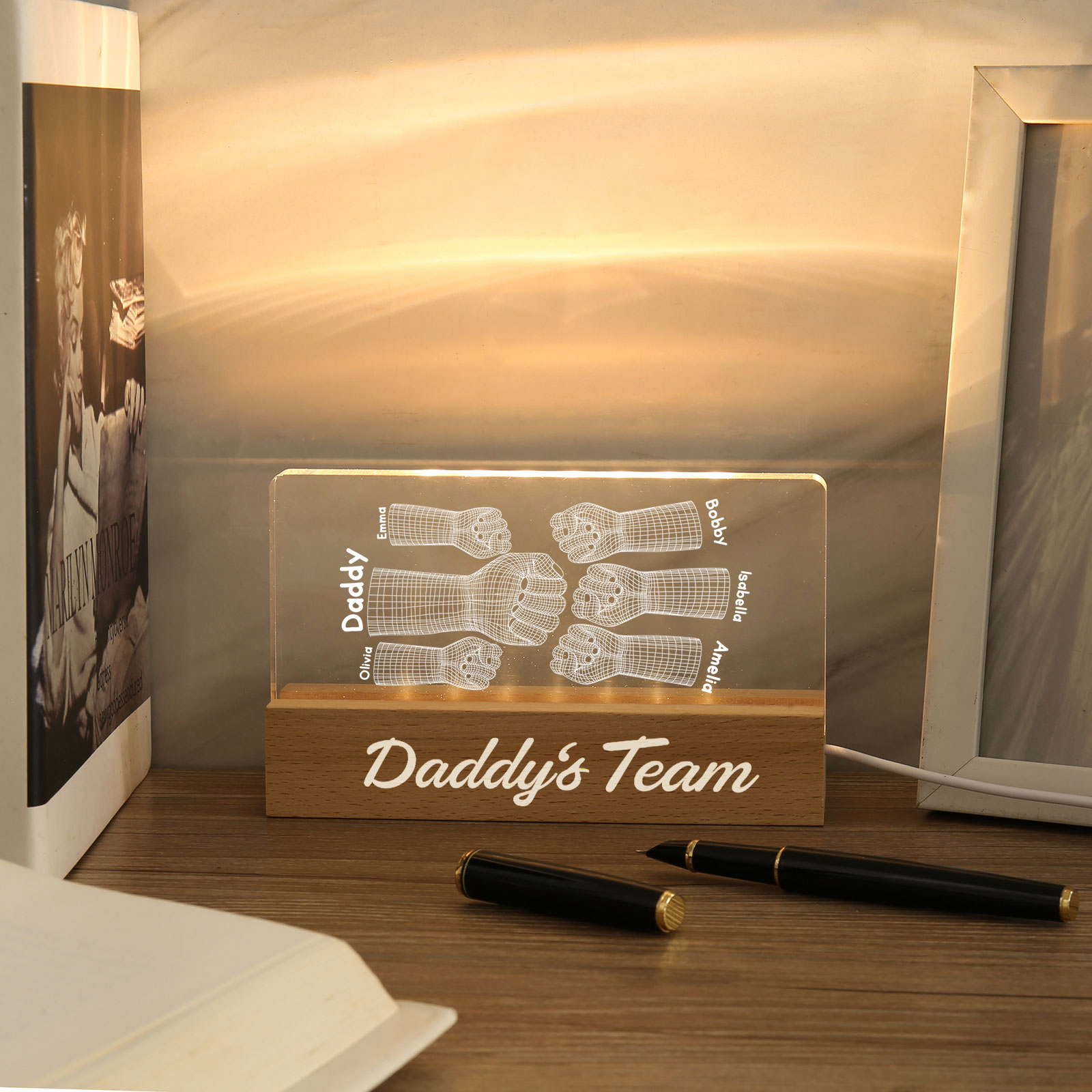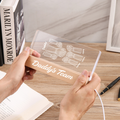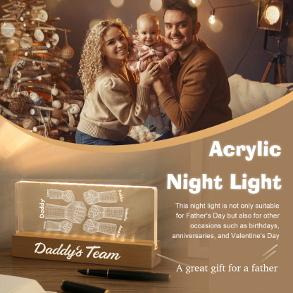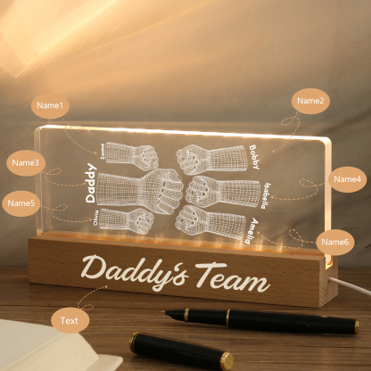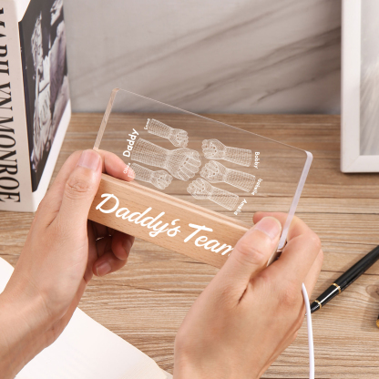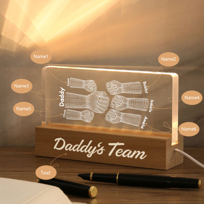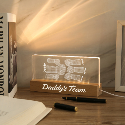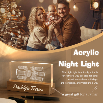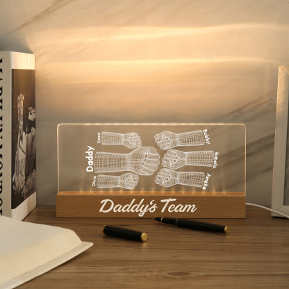 6 Names Personalized Fist Bump Pattern Night Light Custom Text LED Light Father's Day Gift for Dad