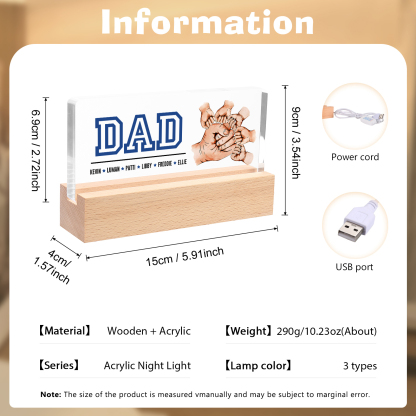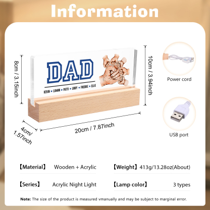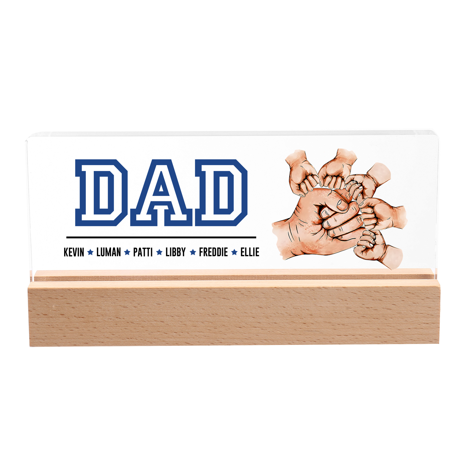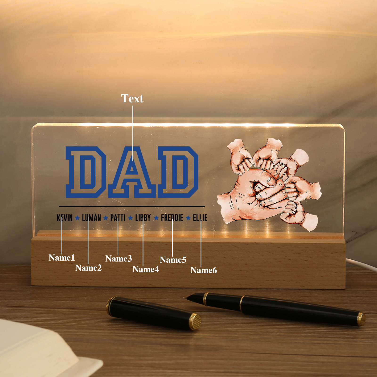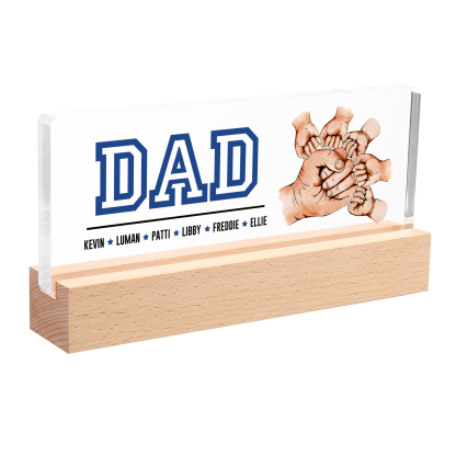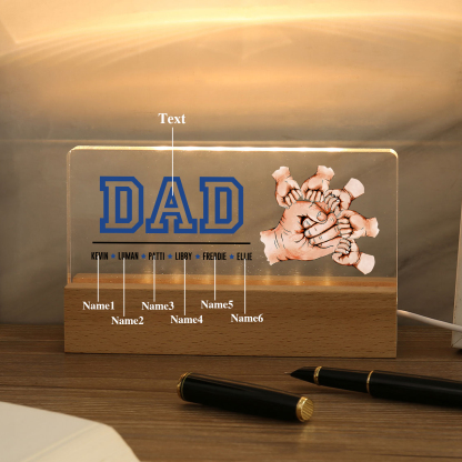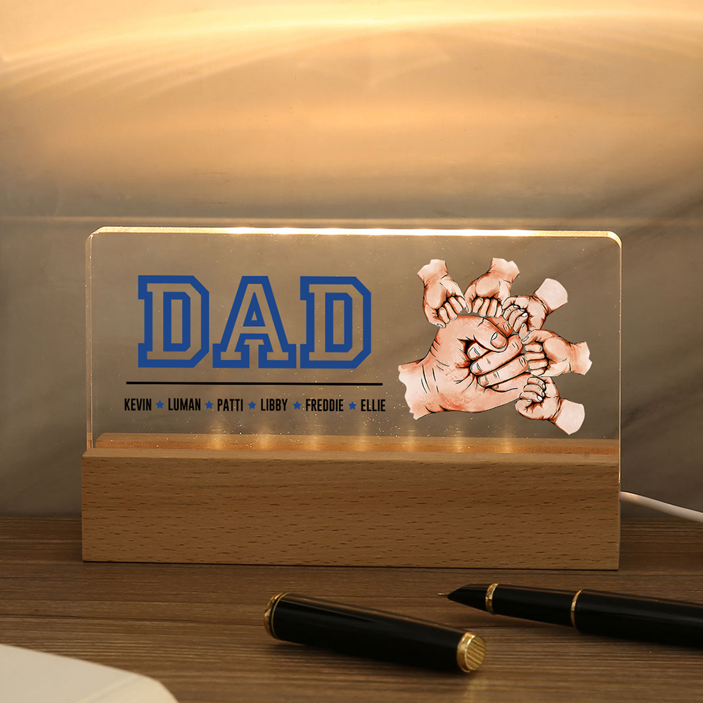6 Names - Personalized Fist Bump Table Lamp - Dad's Dream Team - Father's Day Gift for Dad
