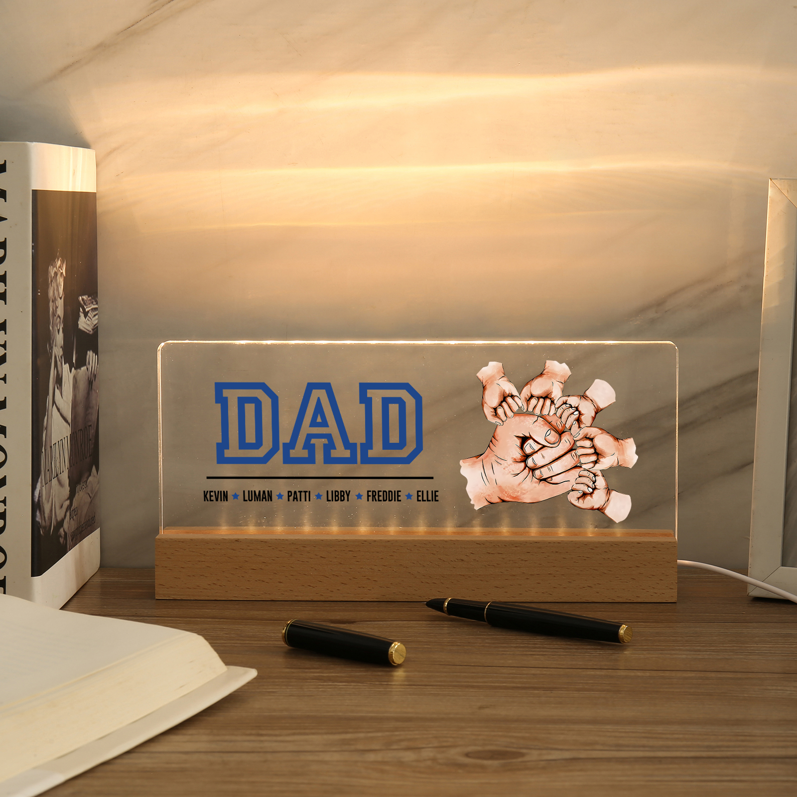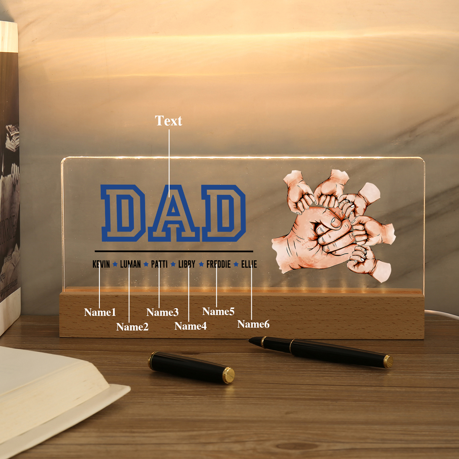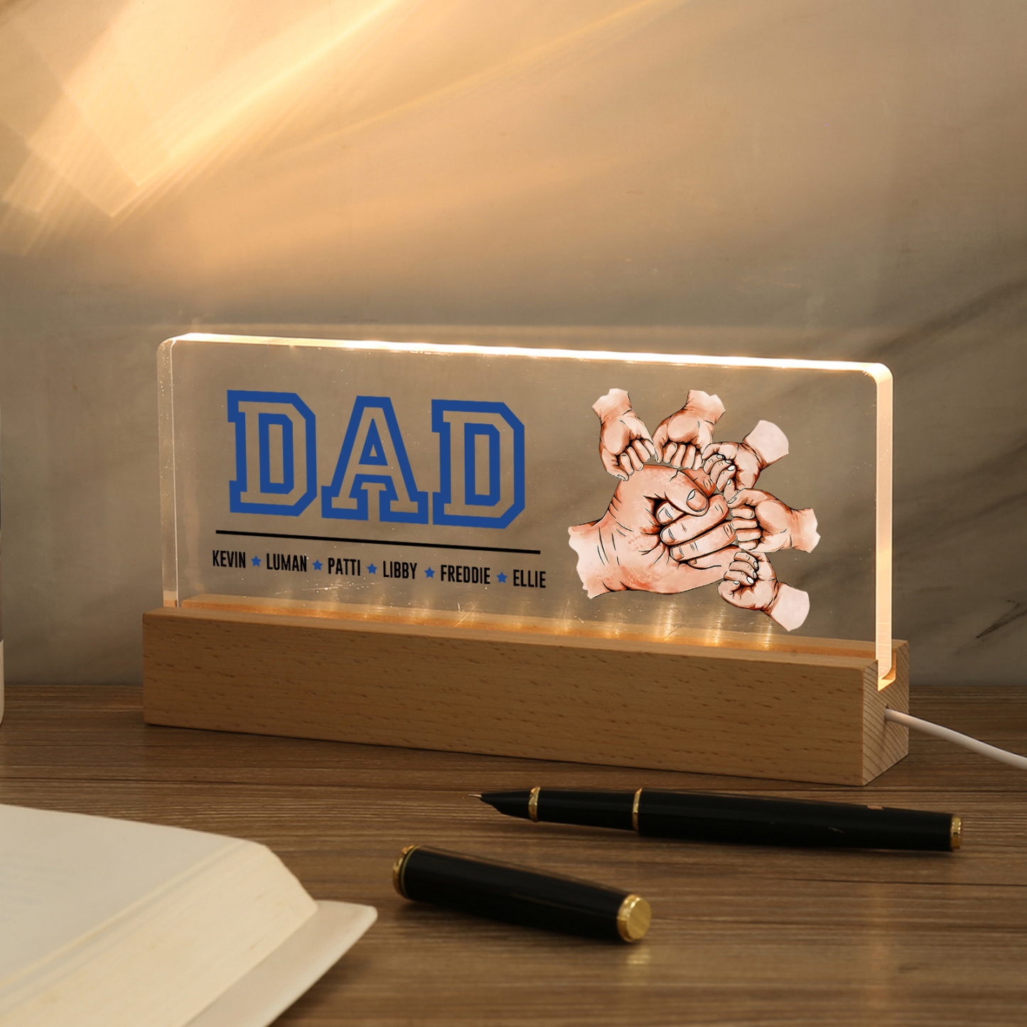 💡Customize the Fist Bump Table Lamp with Dad's Name! 🌟 Light up Dad's world with a unique gift. ❤️This stylish table lamp features Dad's name and an impressive baseball jersey design that will add a modern touch to his space. Brighten his day with personalized warmth and style. Order now to brighten his day! 🥰