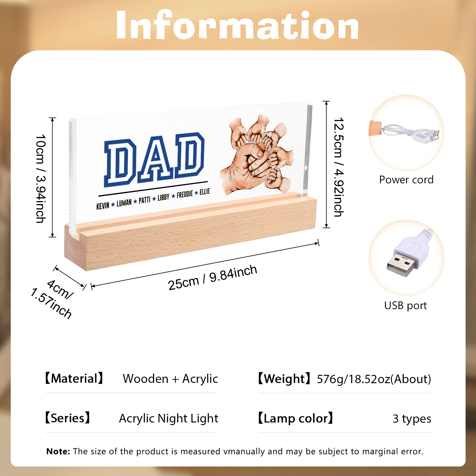 🔥The lamp supports customization of 2-6 names and 1 text.