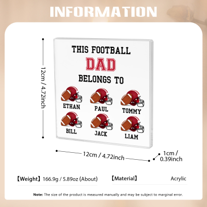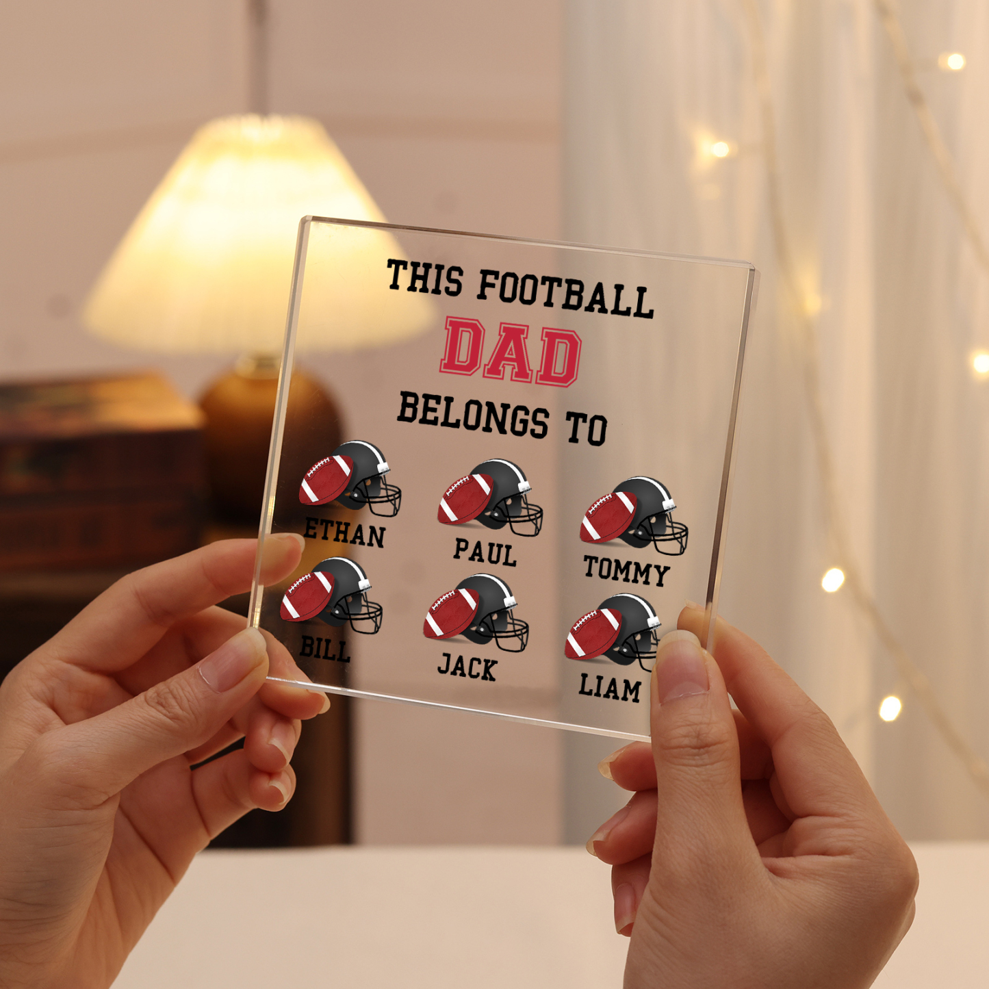 6 Names -Personalized Football Acrylic Keepsake Customized Name Acrylic Plaque Ornament Father's Day Gift for Dad