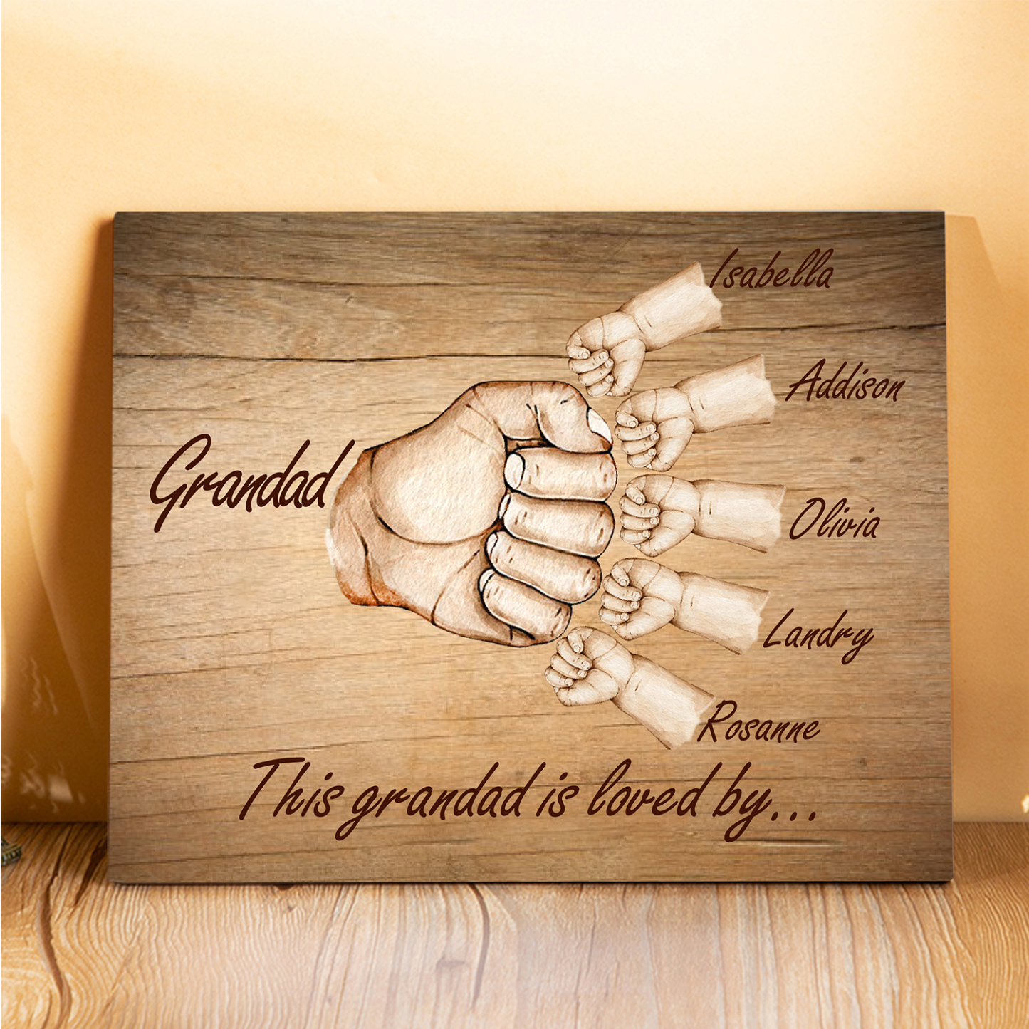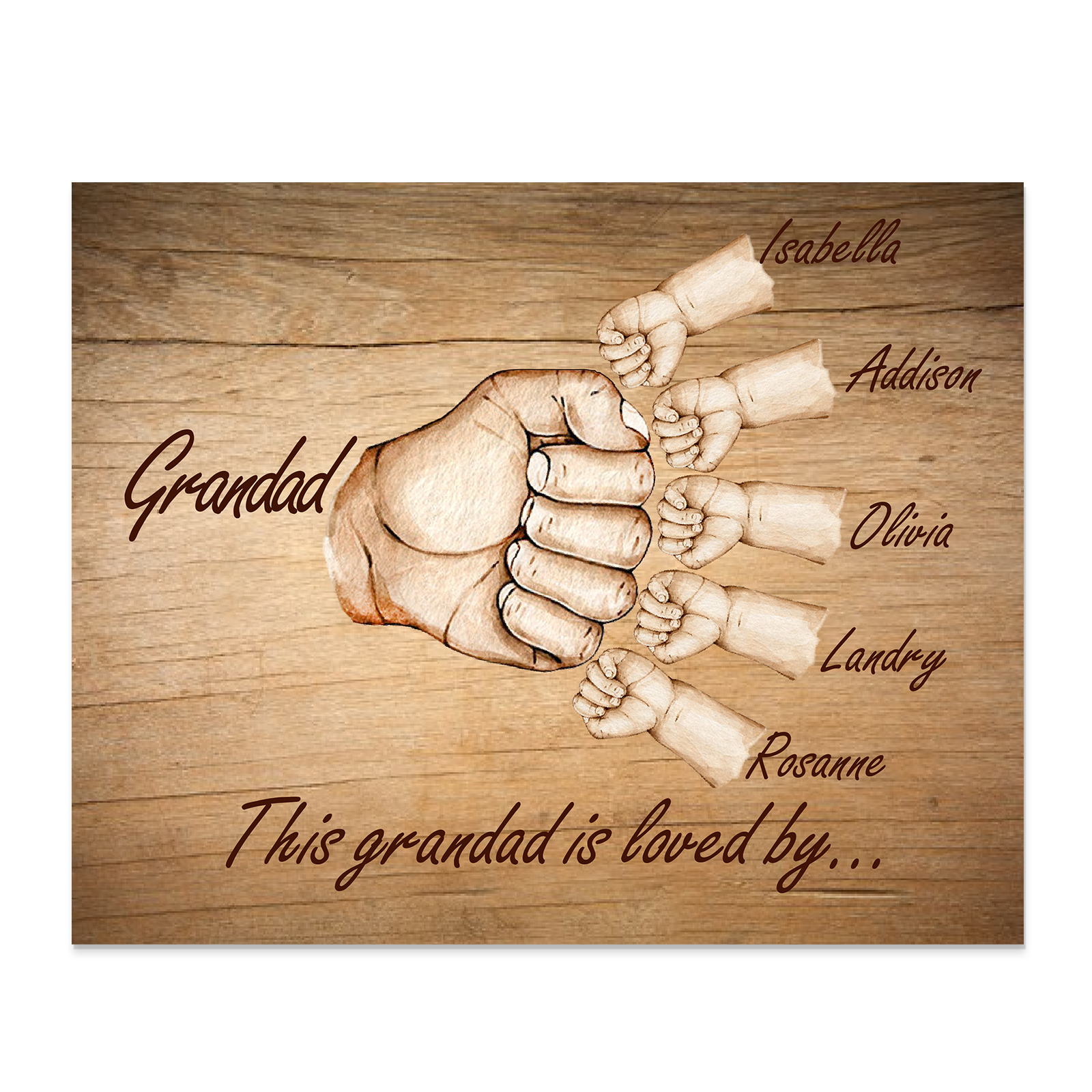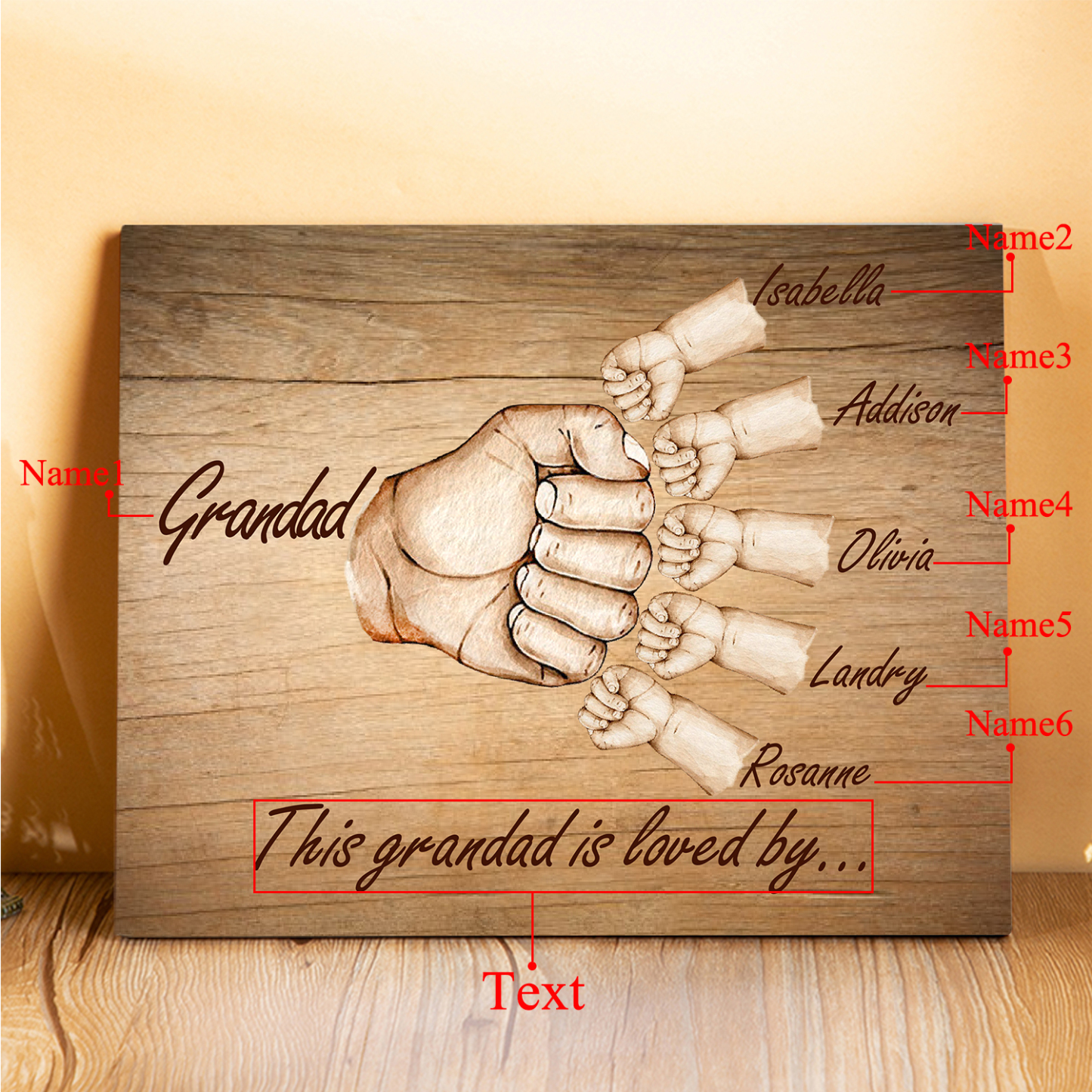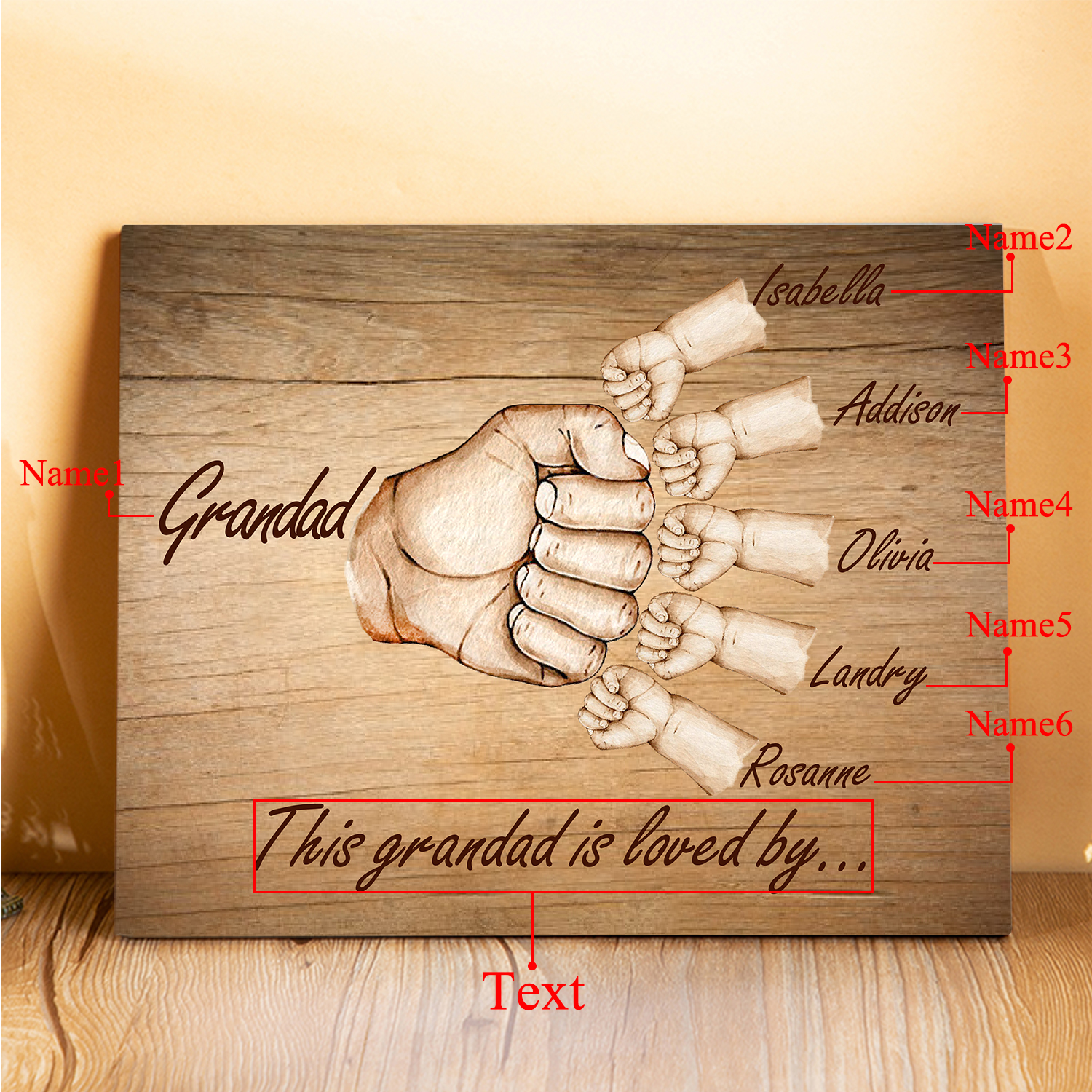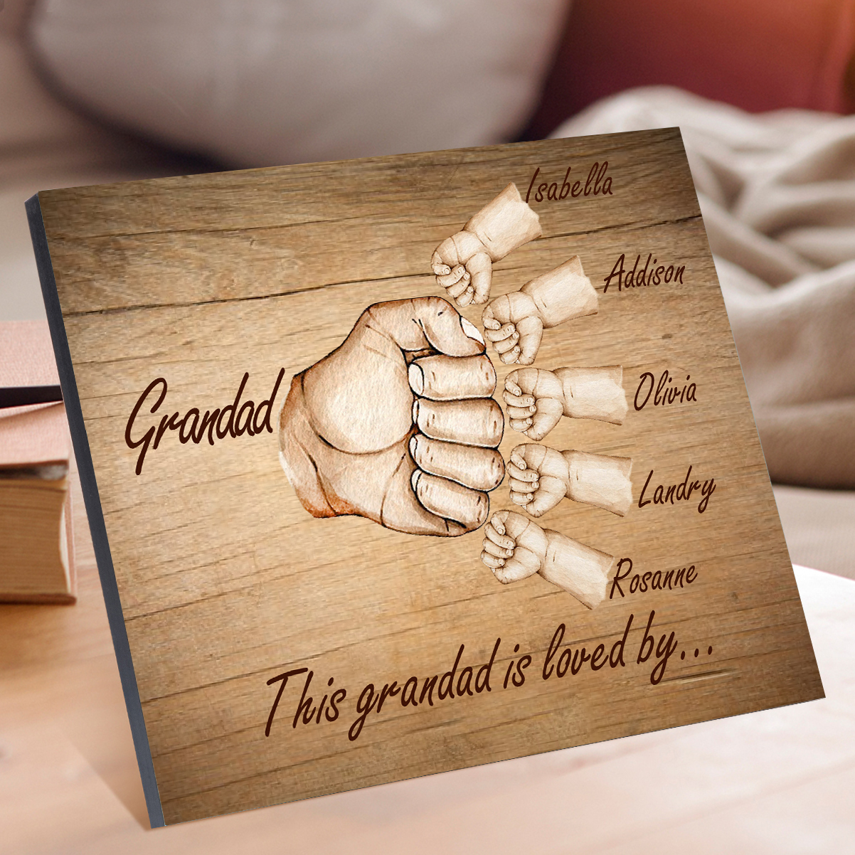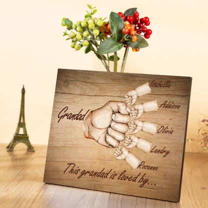 6 Names-Personalized Grandad Family Fist Bump Frame Wooden Ornament Custom Text Plaque Home Decoration for Grandfather
