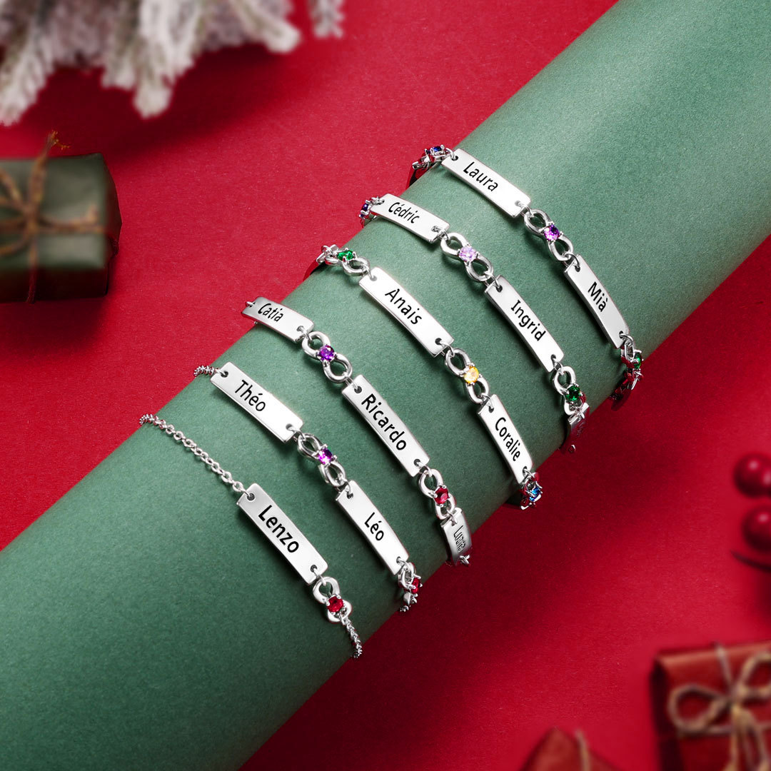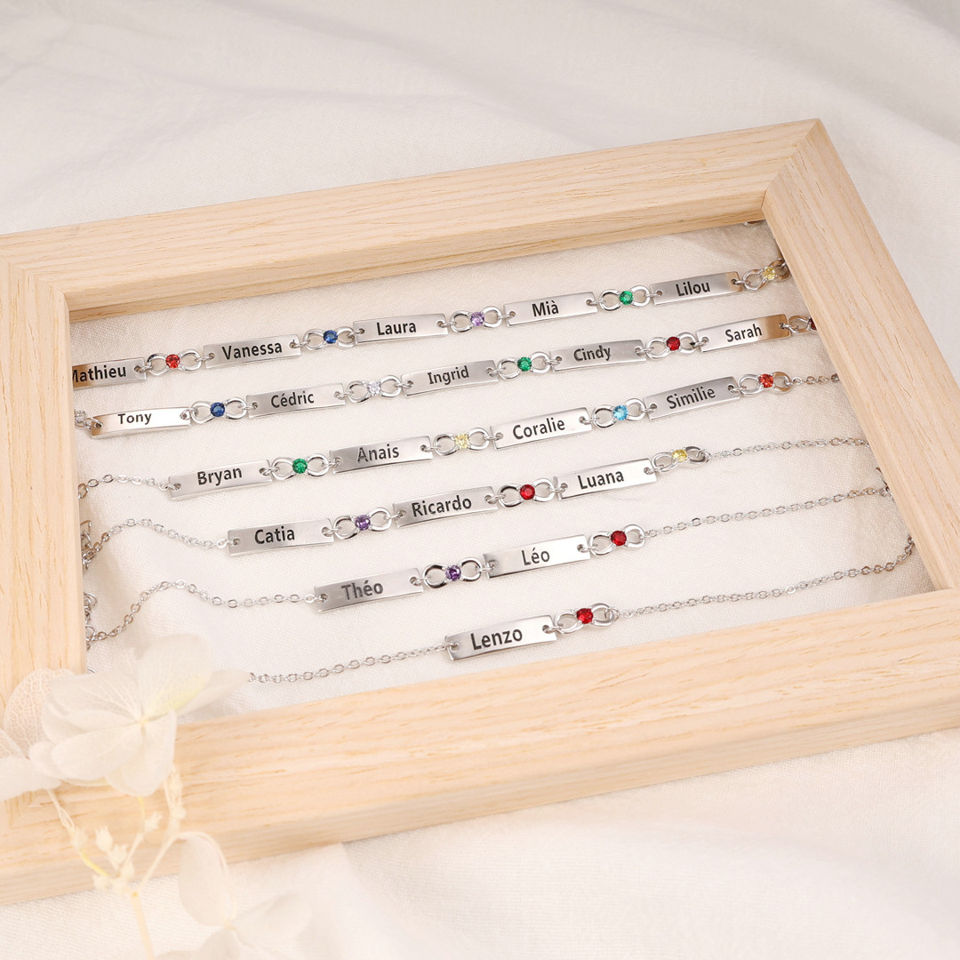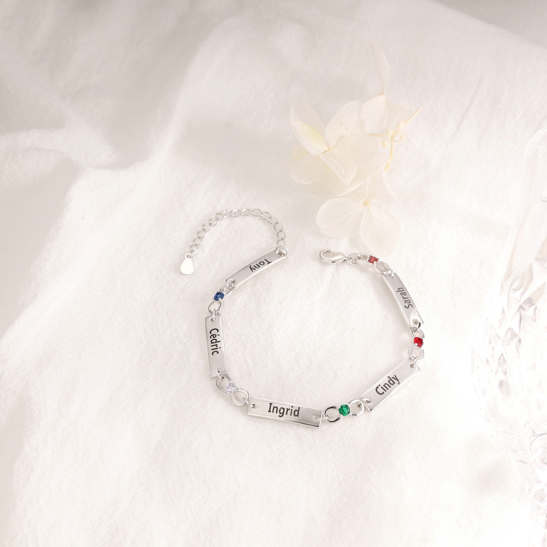 This stunning bracelet allows you to customize it with 1-6 names and birthstones, making it a unique and heartfelt gift. Crafted with attention to detail, the bracelet features an adjustable size, ensuring a comfortable fit for any wrist.