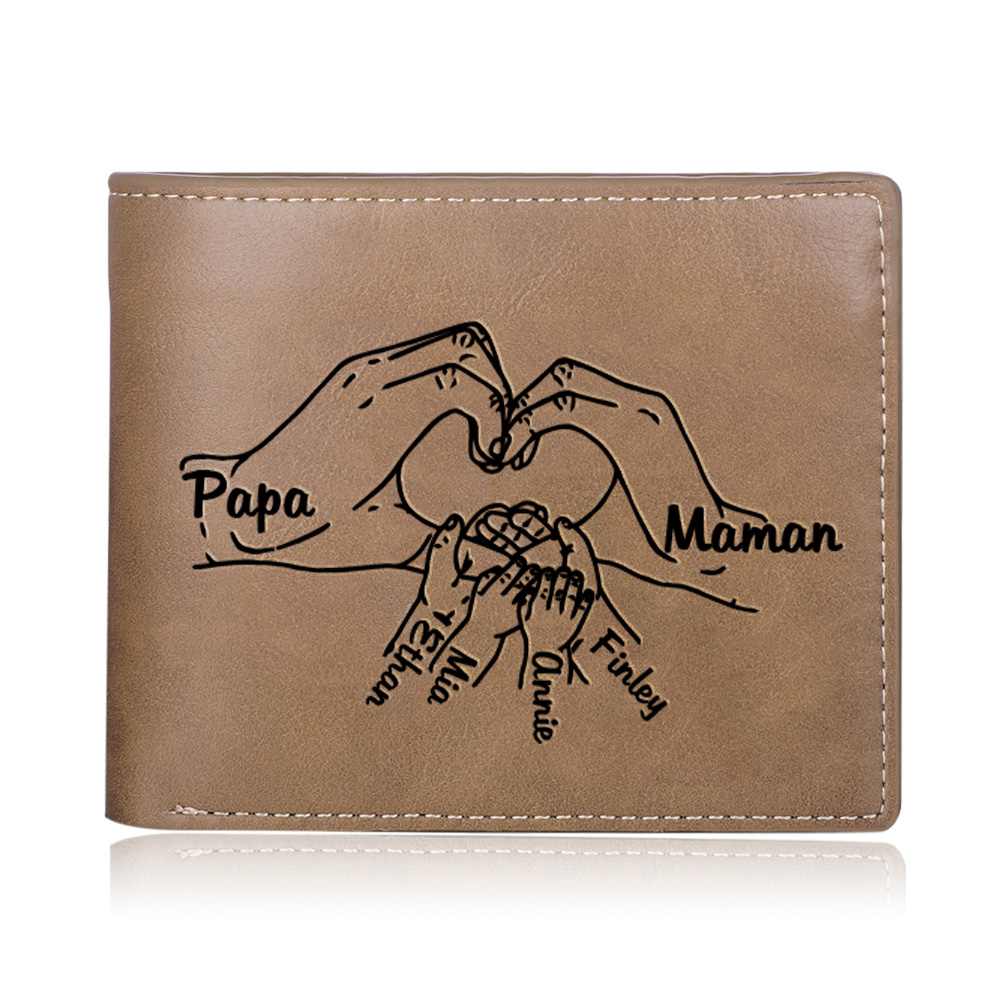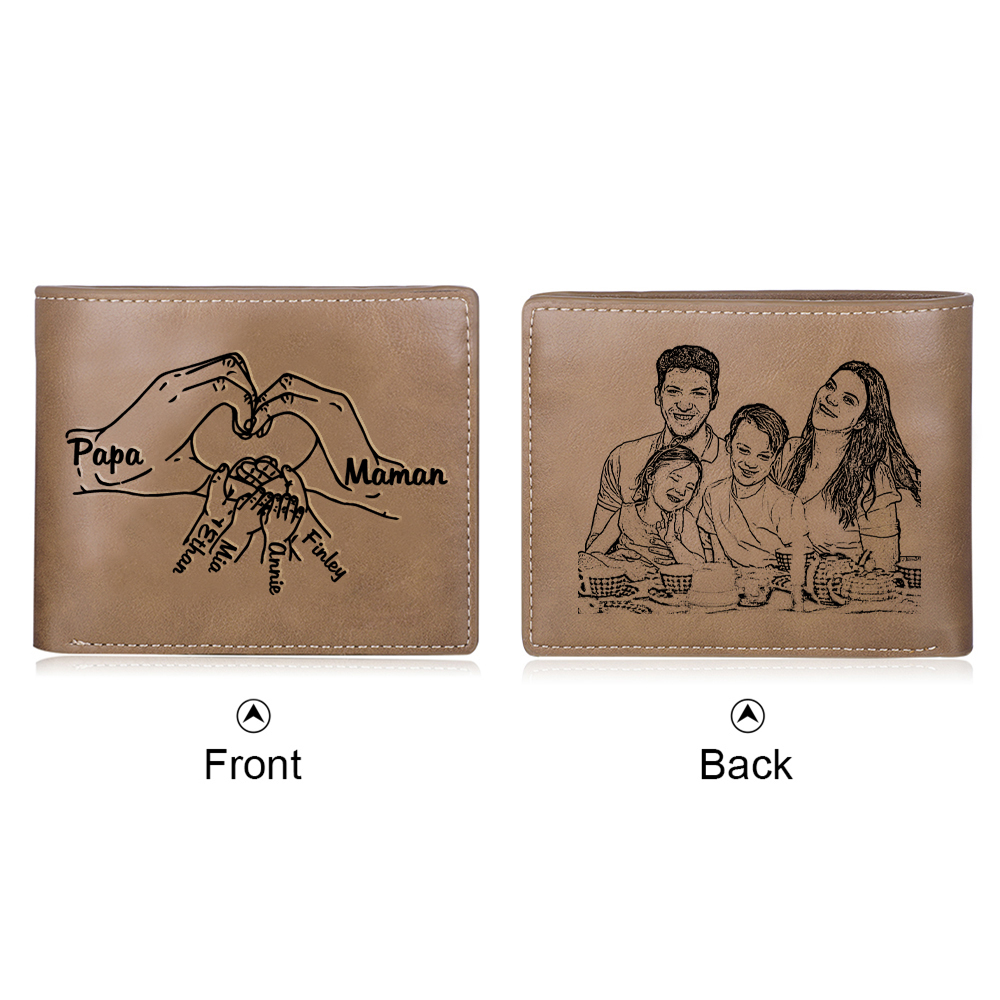 6 Names-Personalized Leather Mens Wallet Engraved 6 Names And Photo Fist Bump Folding Wallet Set With Gift Card Gift Box Father's Day Gifts
