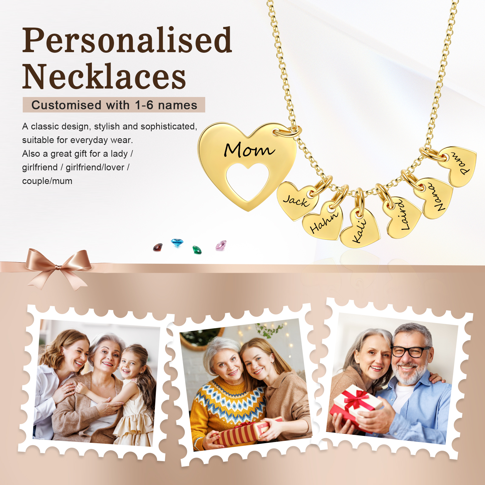 6 Names - Personalized Love Pendant Necklace with Gift Box Customized Name Gift for Her